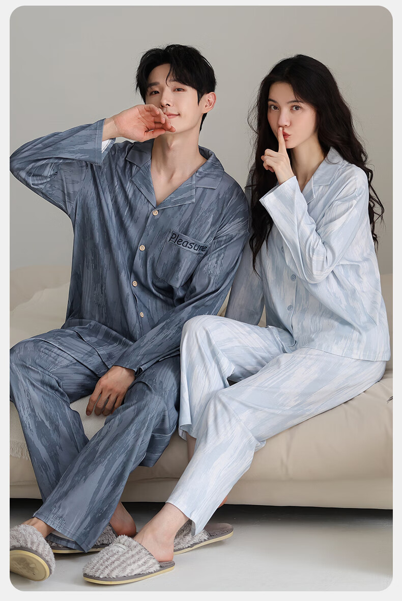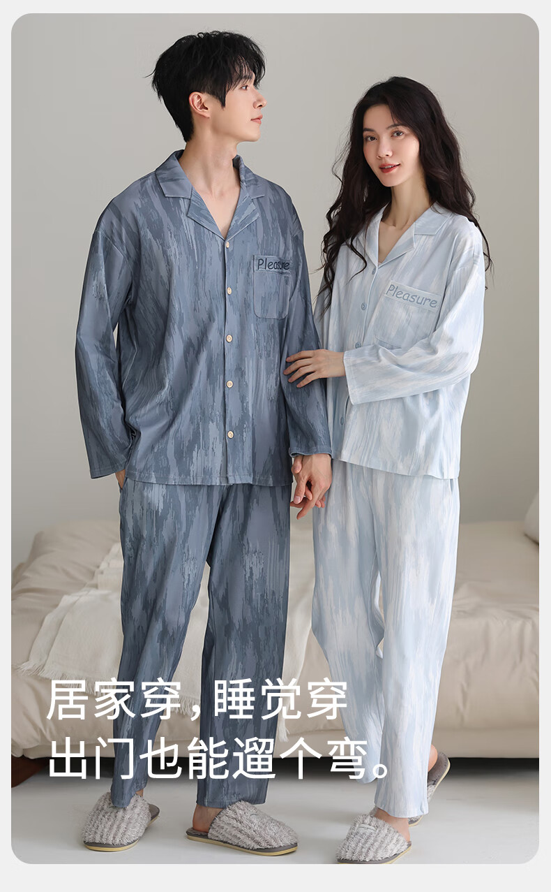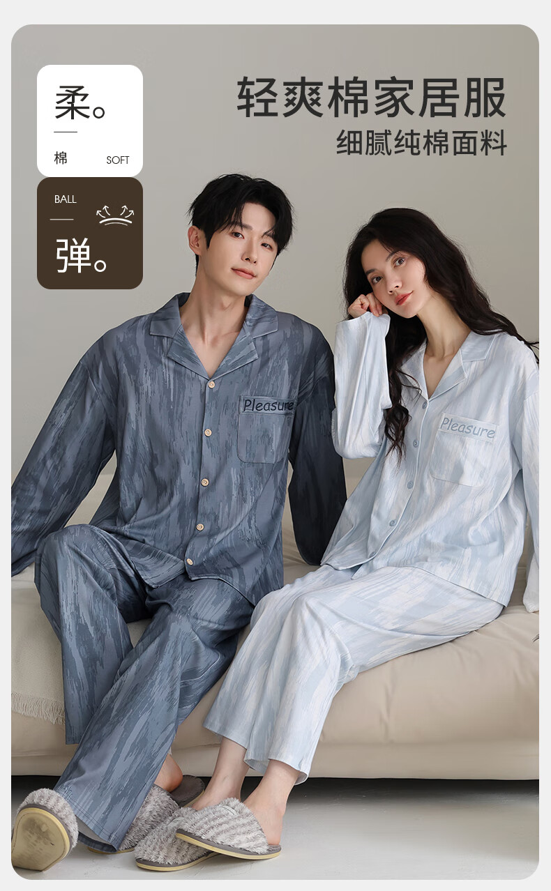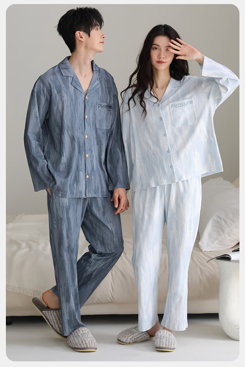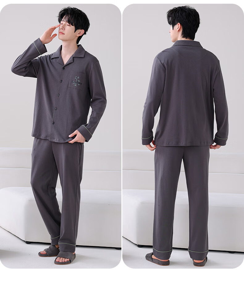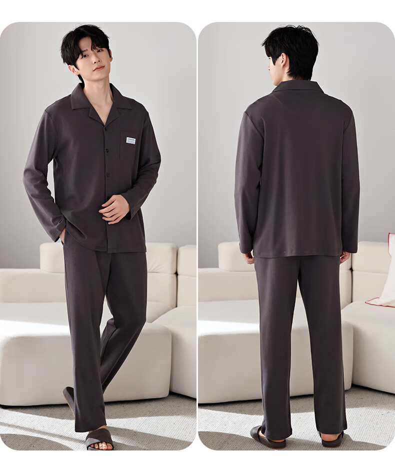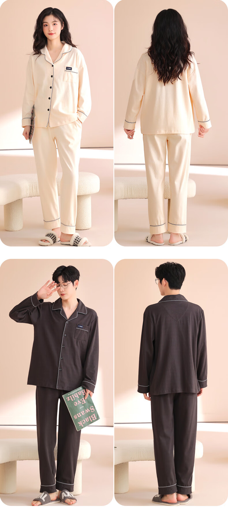 富信康情侣睡衣春秋季纯棉开衫翻领休闲宽松冬天男女士家居服可外穿套装 HC-G9902 3XL -男【高184-188-重175-200】