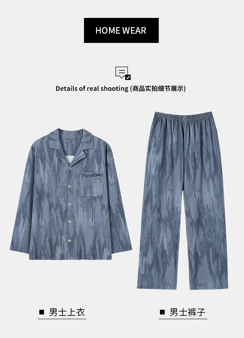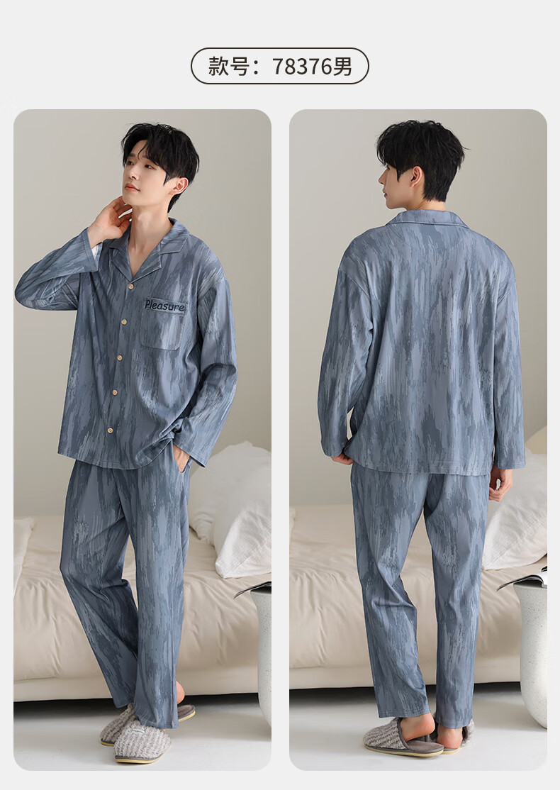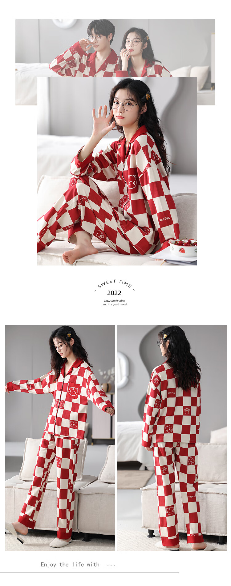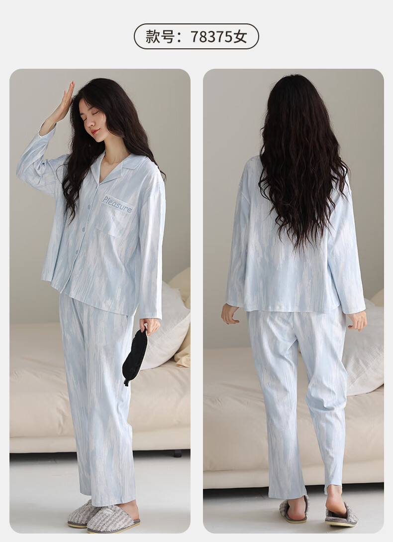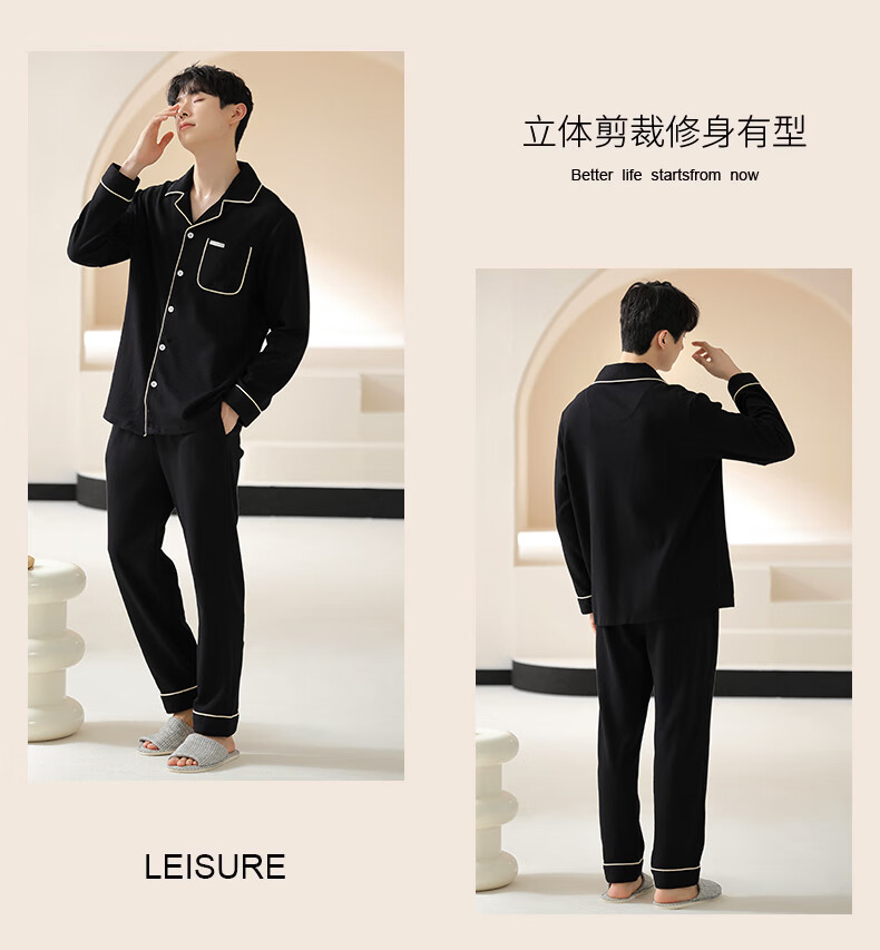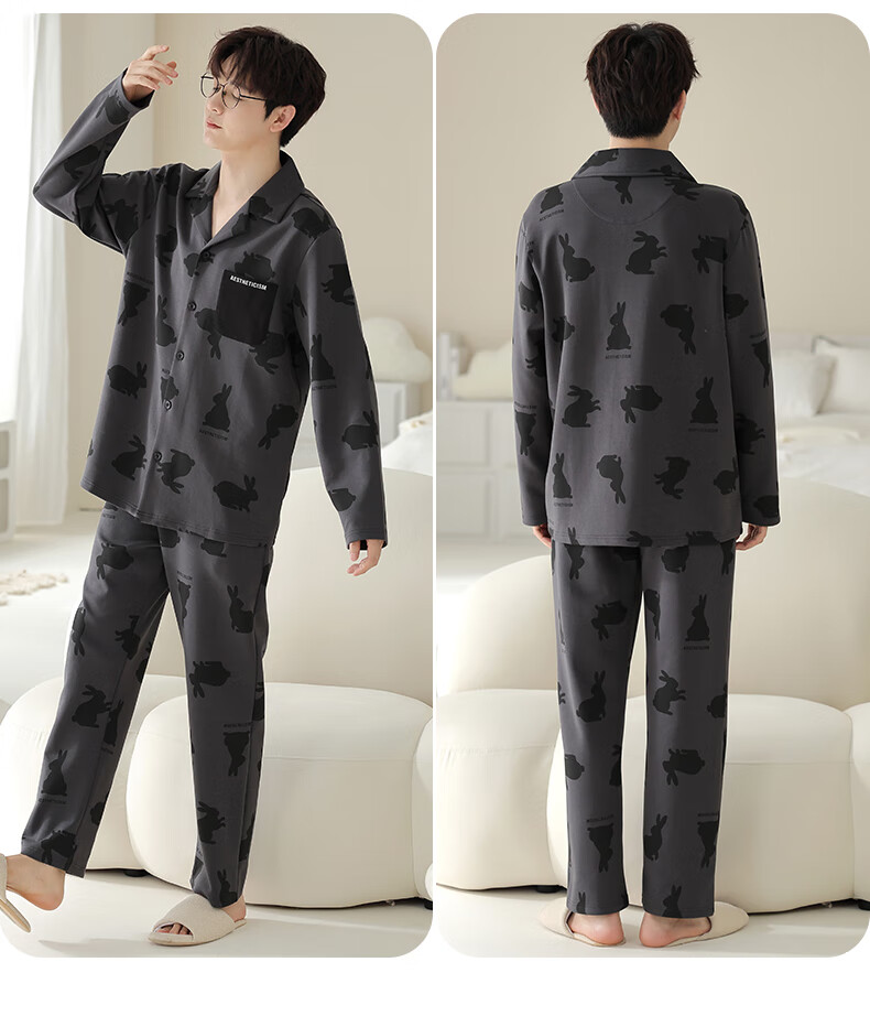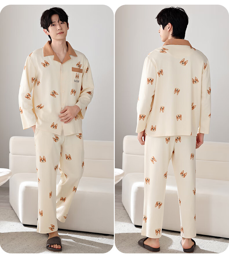 富信康情侣睡衣春秋季纯棉开衫翻领休闲宽松冬天男女士家居服可外穿套装 HC-G9902 3XL -男【高184-188-重175-200】