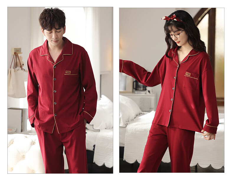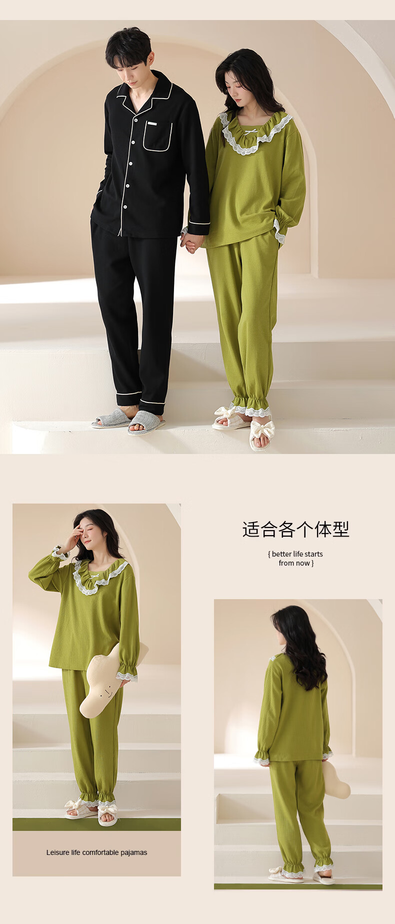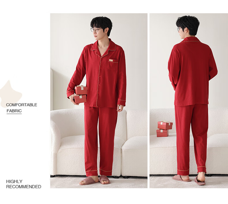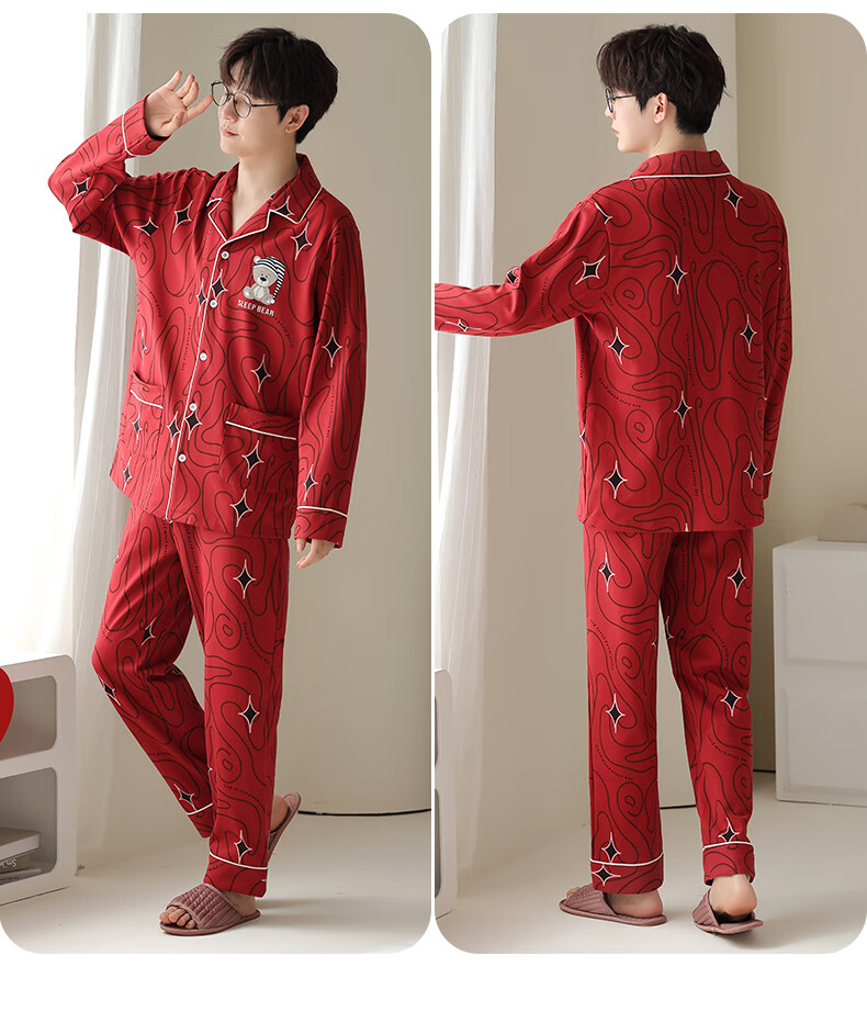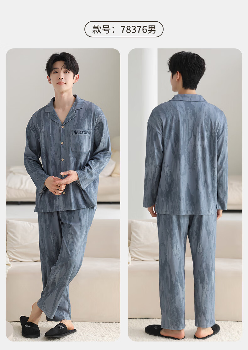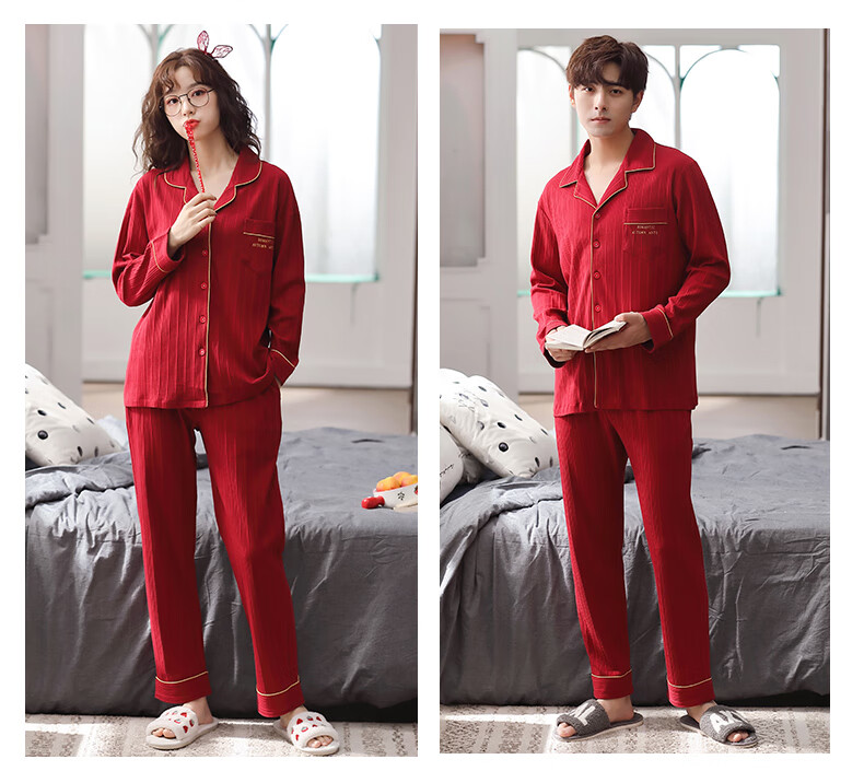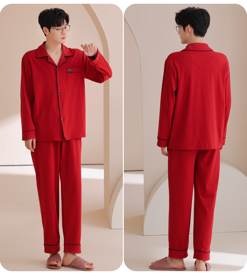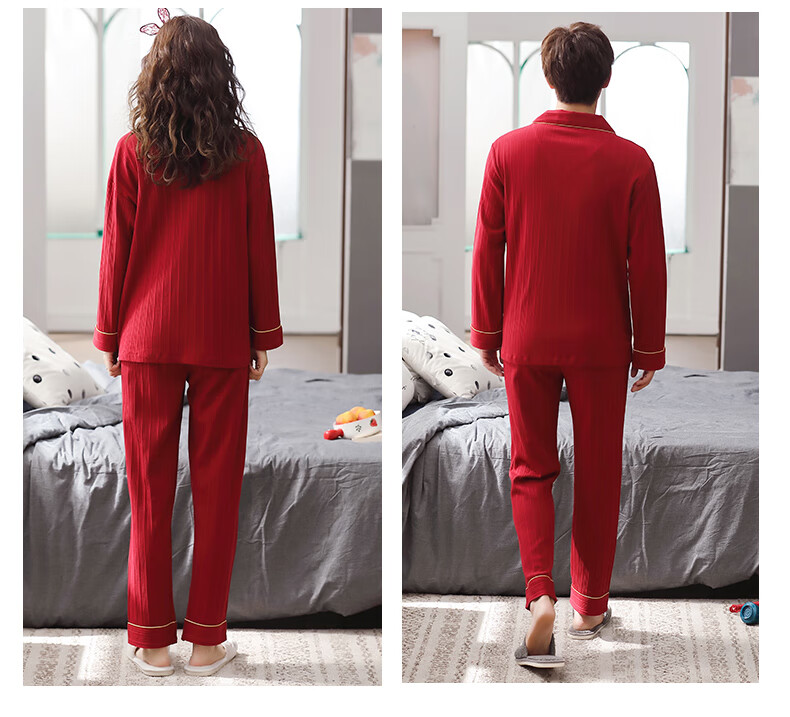 富信康情侣睡衣春秋季纯棉开衫翻领休闲宽松冬天男女士家居服可外穿套装 HC-G9902 3XL -男【高184-188-重175-200】