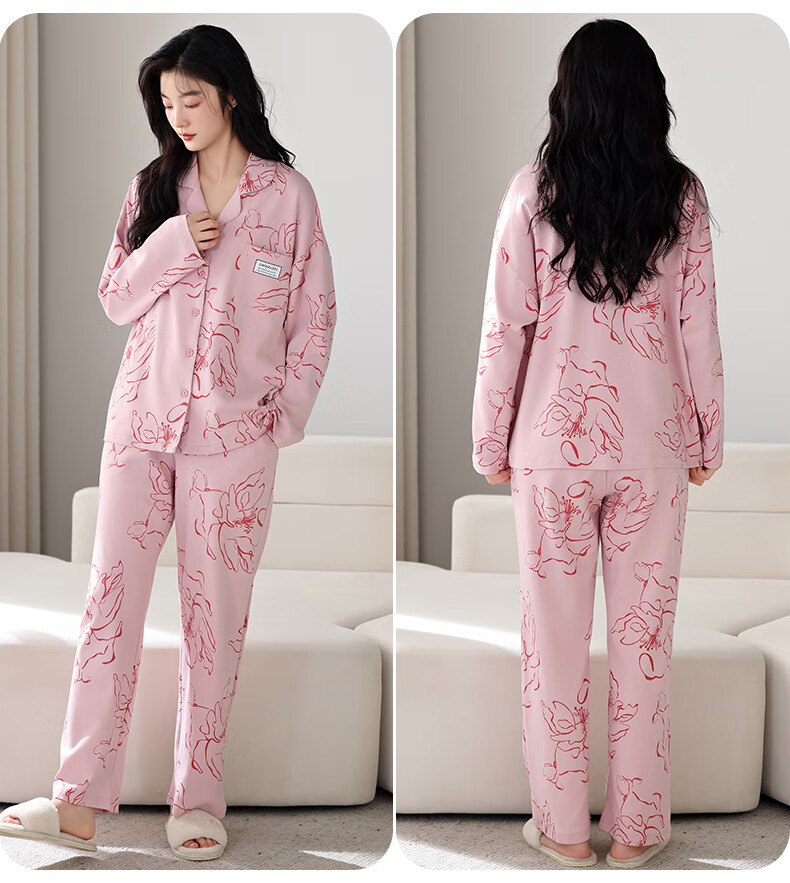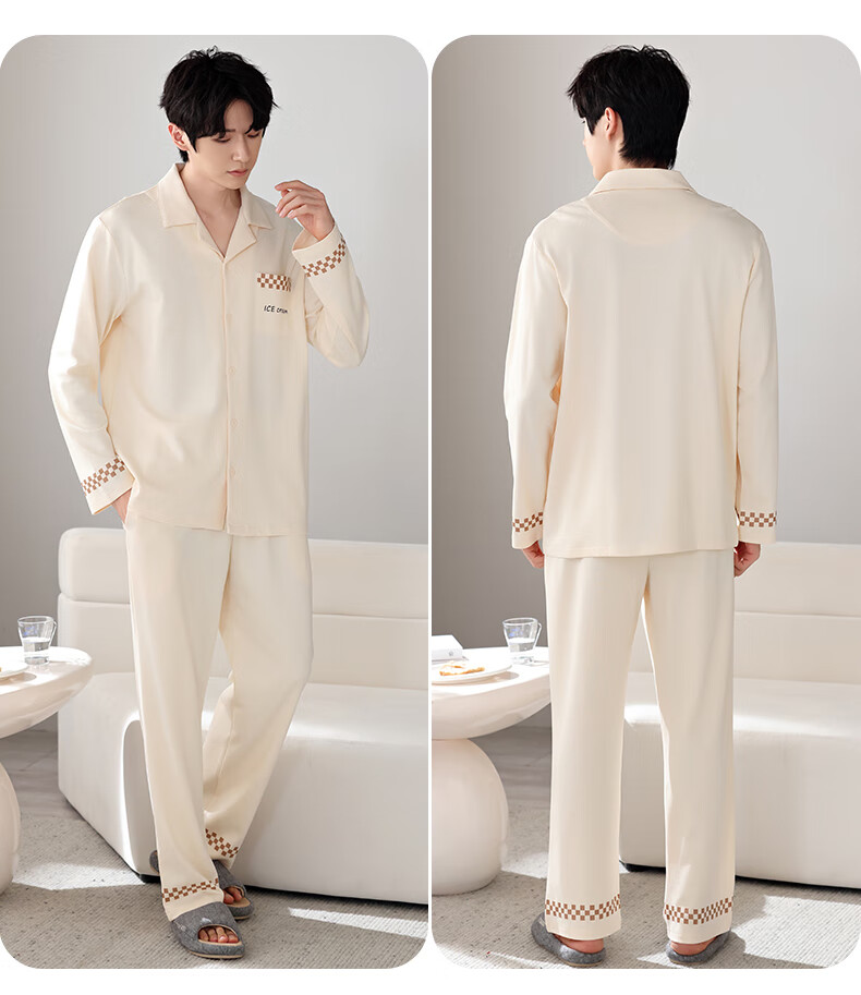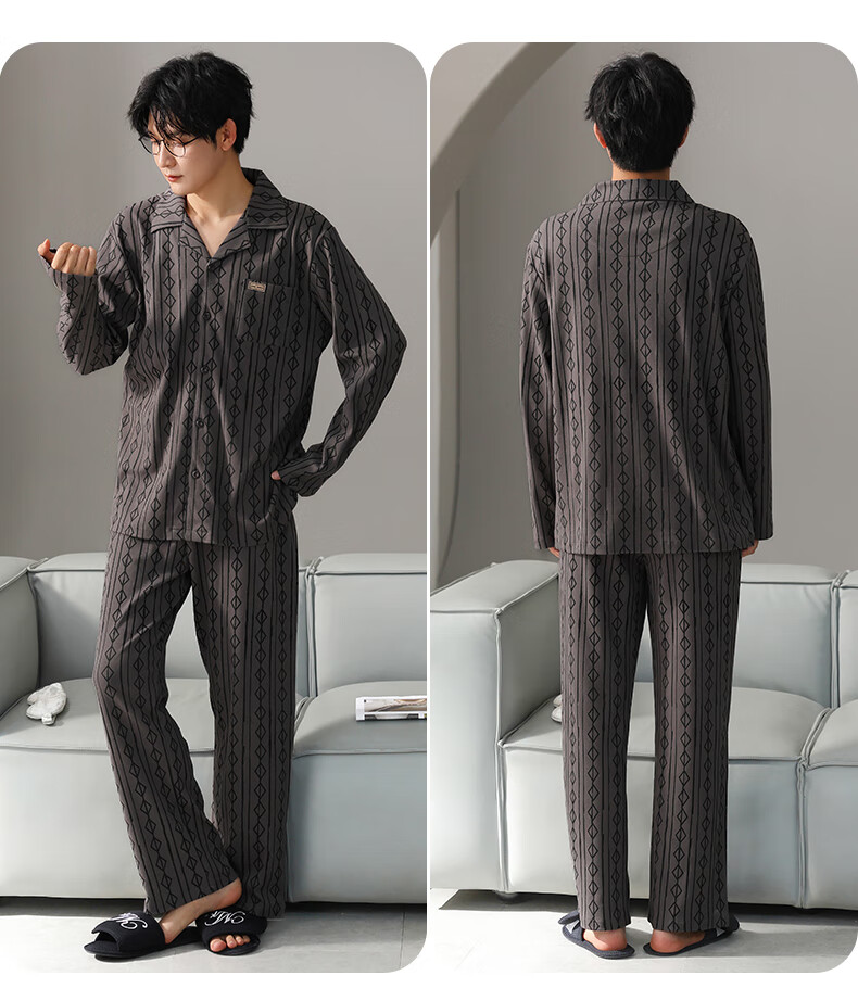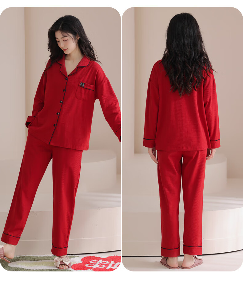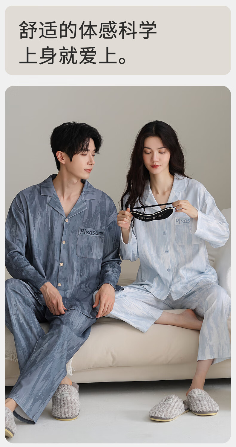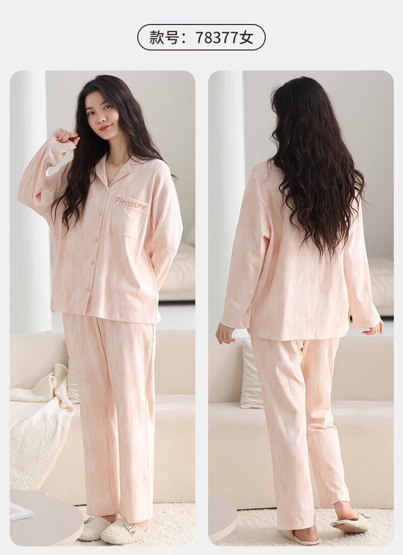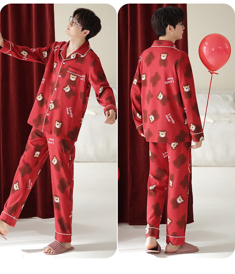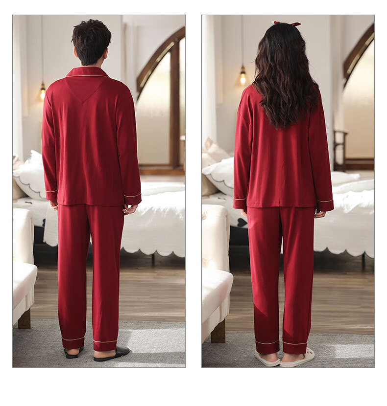 富信康情侣睡衣春秋季纯棉开衫翻领休闲宽松冬天男女士家居服可外穿套装 HC-G9902 3XL -男【高184-188-重175-200】