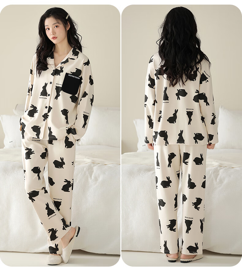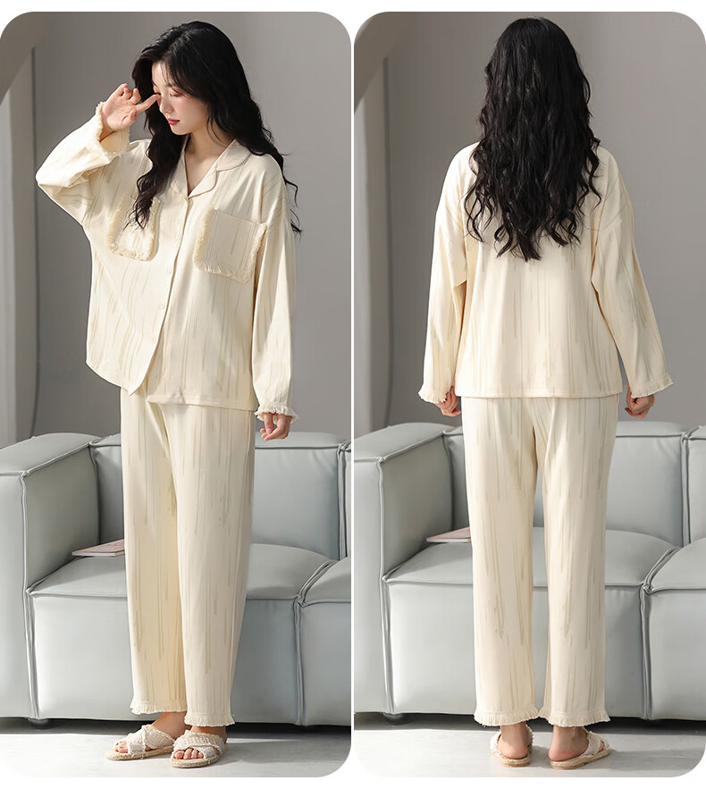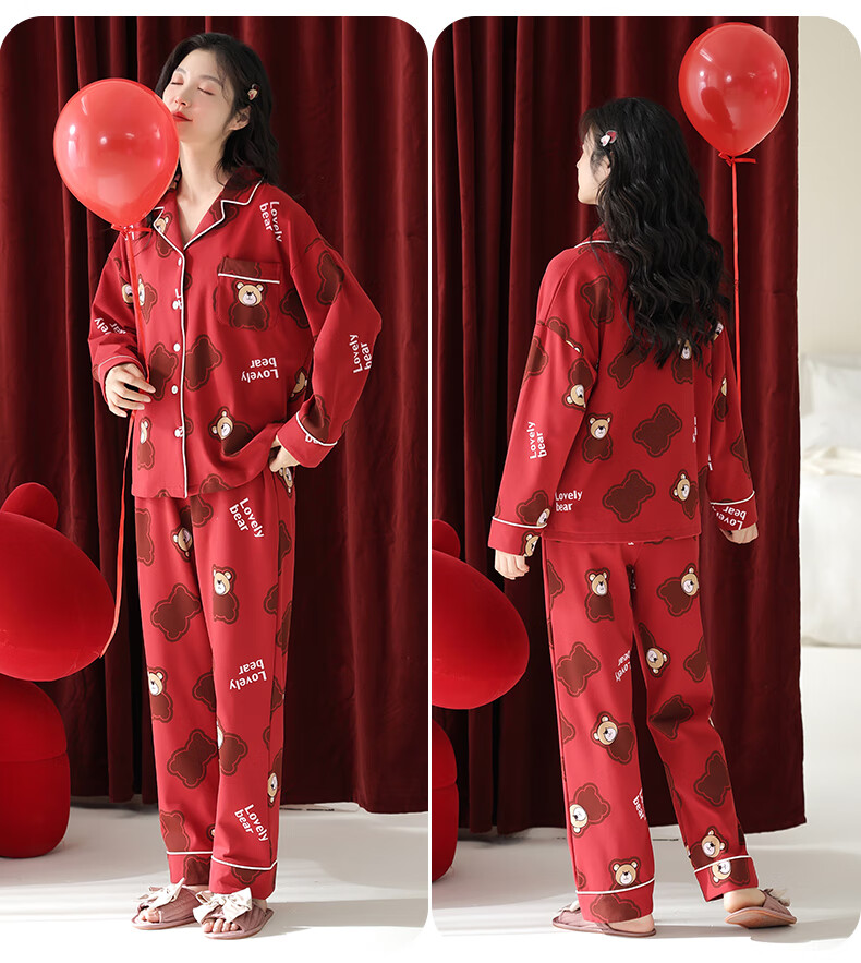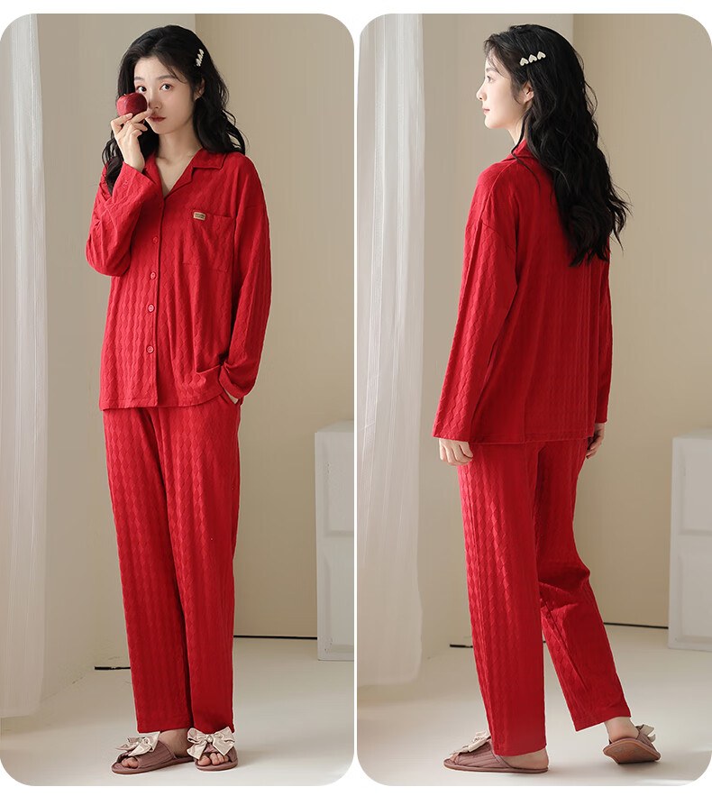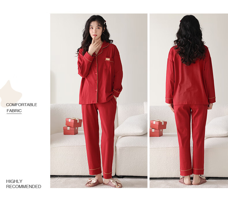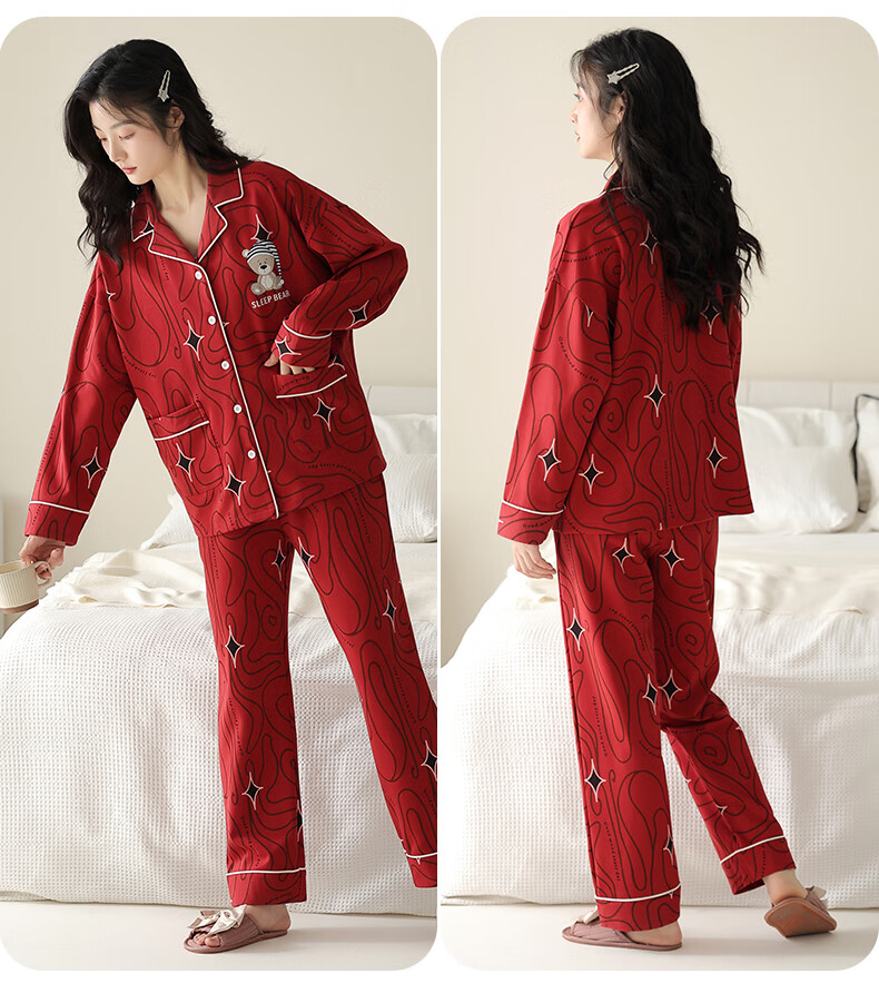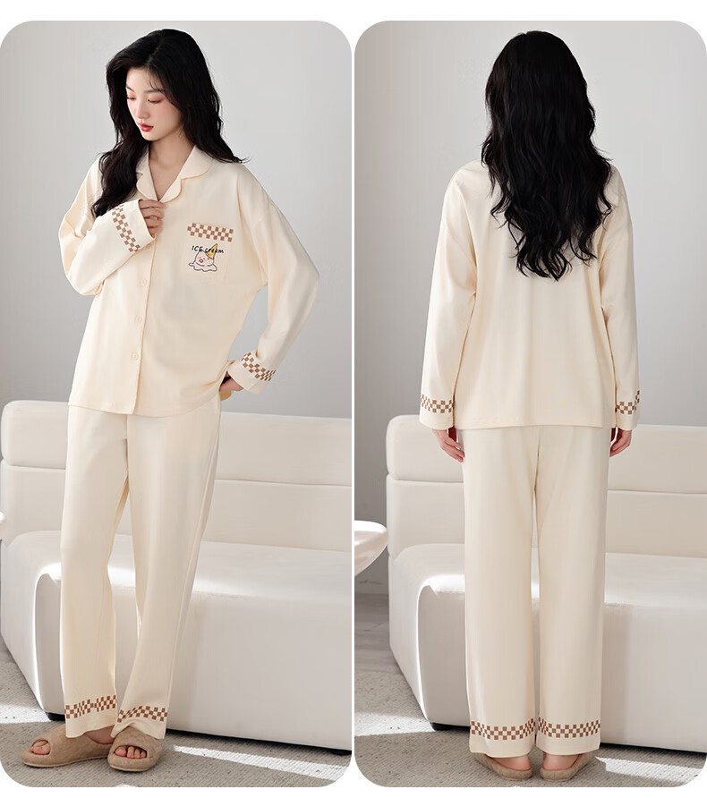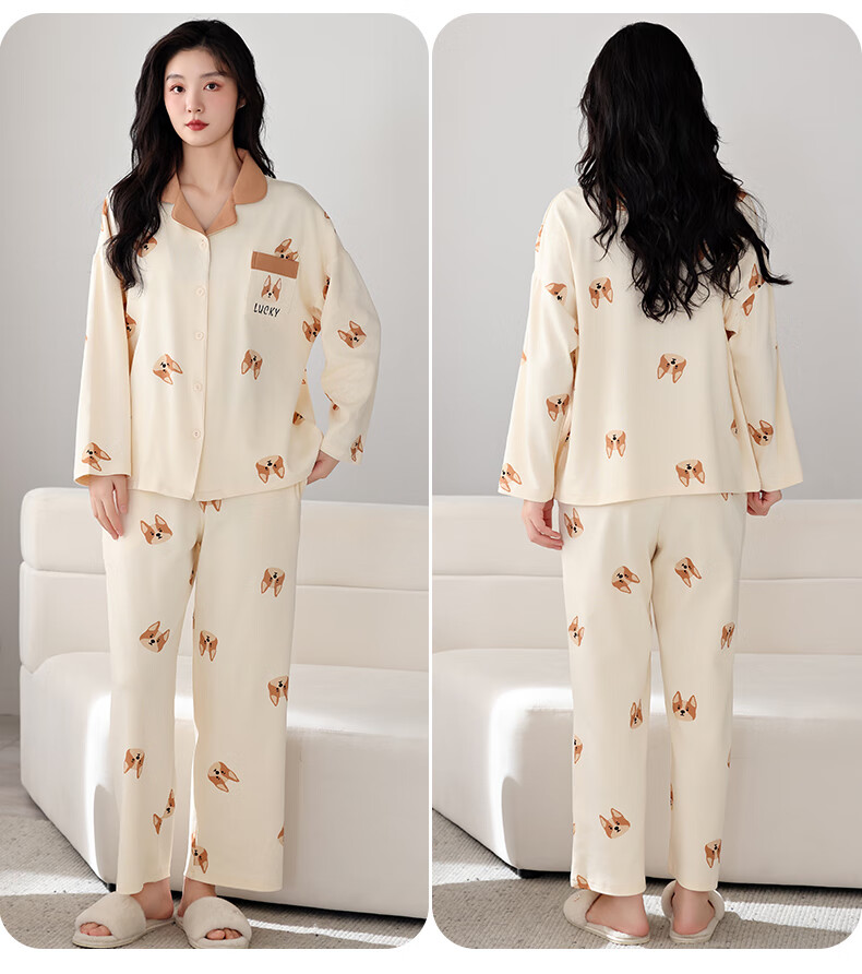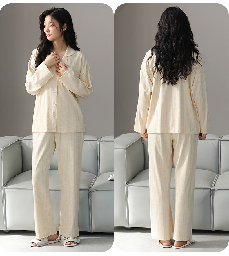 富信康情侣睡衣春秋季纯棉开衫翻领休闲宽松冬天男女士家居服可外穿套装 HC-G9902 3XL -男【高184-188-重175-200】