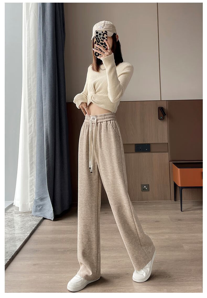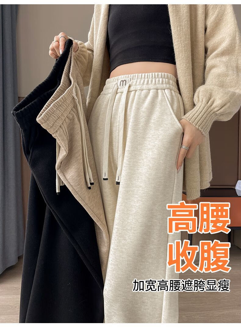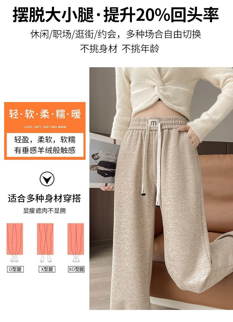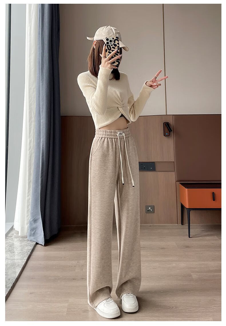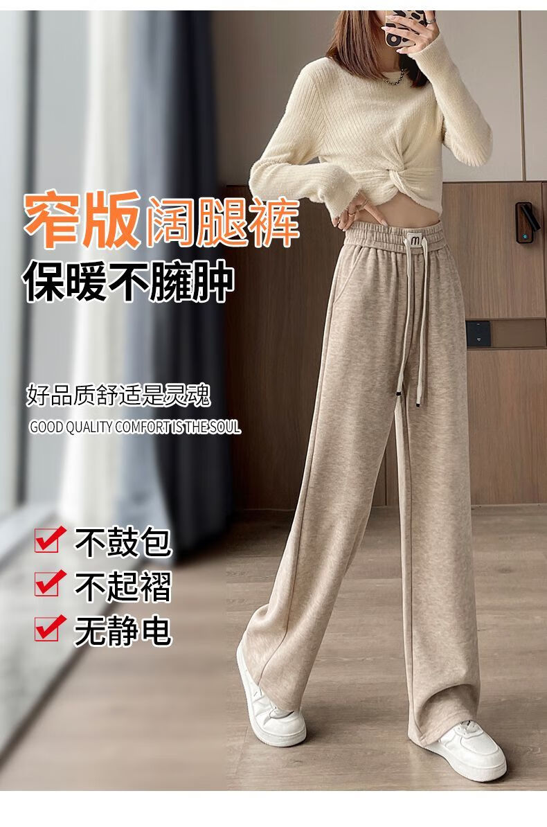 艾妃琳【9721人收藏】仿羊绒加绒阔腿裤女春秋新款高腰垂感宽松小个子窄 杏色小个子【春秋款】 S 建议80-95斤