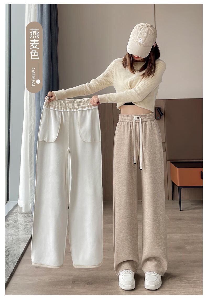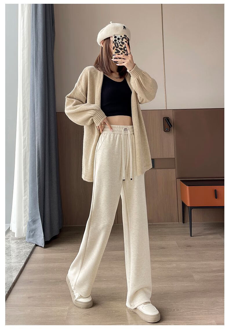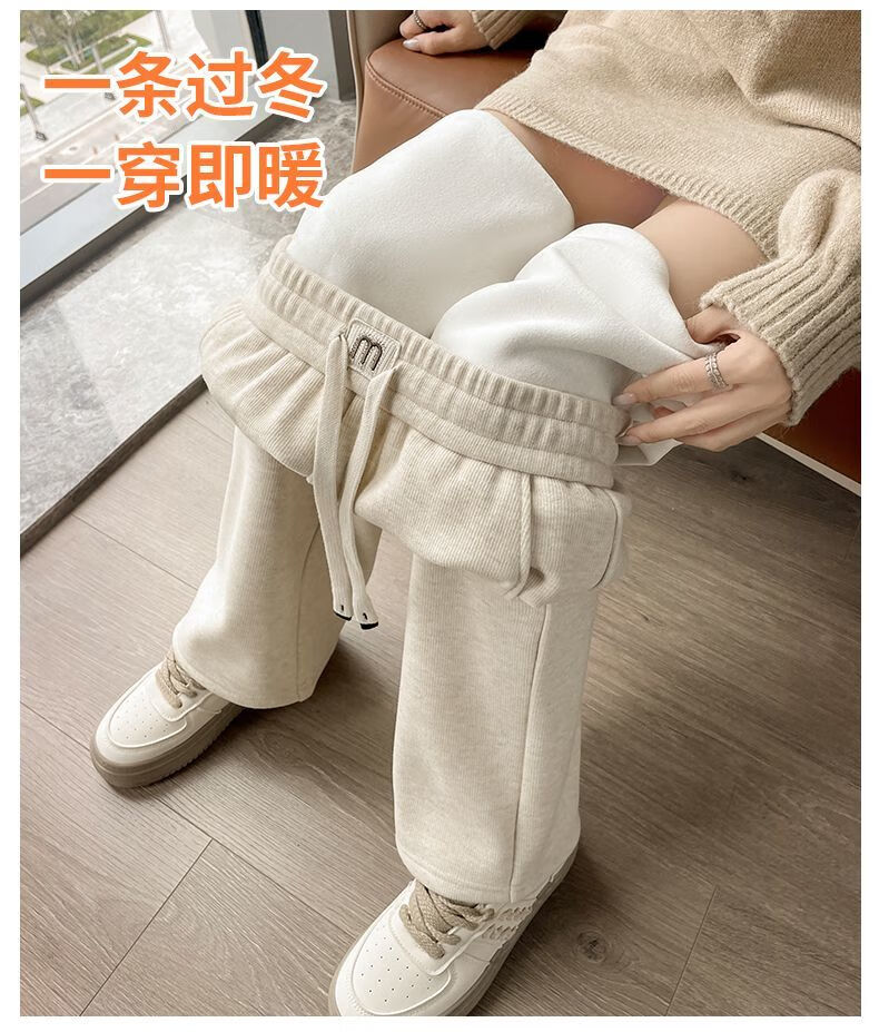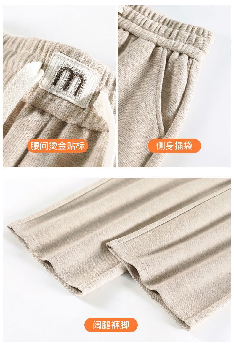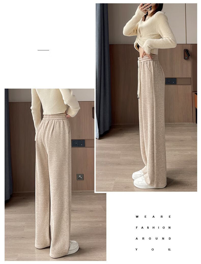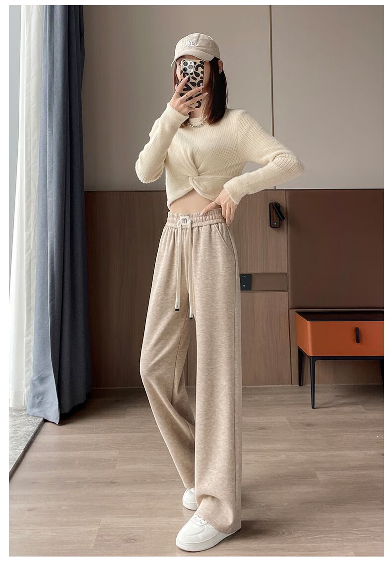 艾妃琳【9721人收藏】仿羊绒加绒阔腿裤女春秋新款高腰垂感宽松小个子窄 杏色小个子【春秋款】 S 建议80-95斤