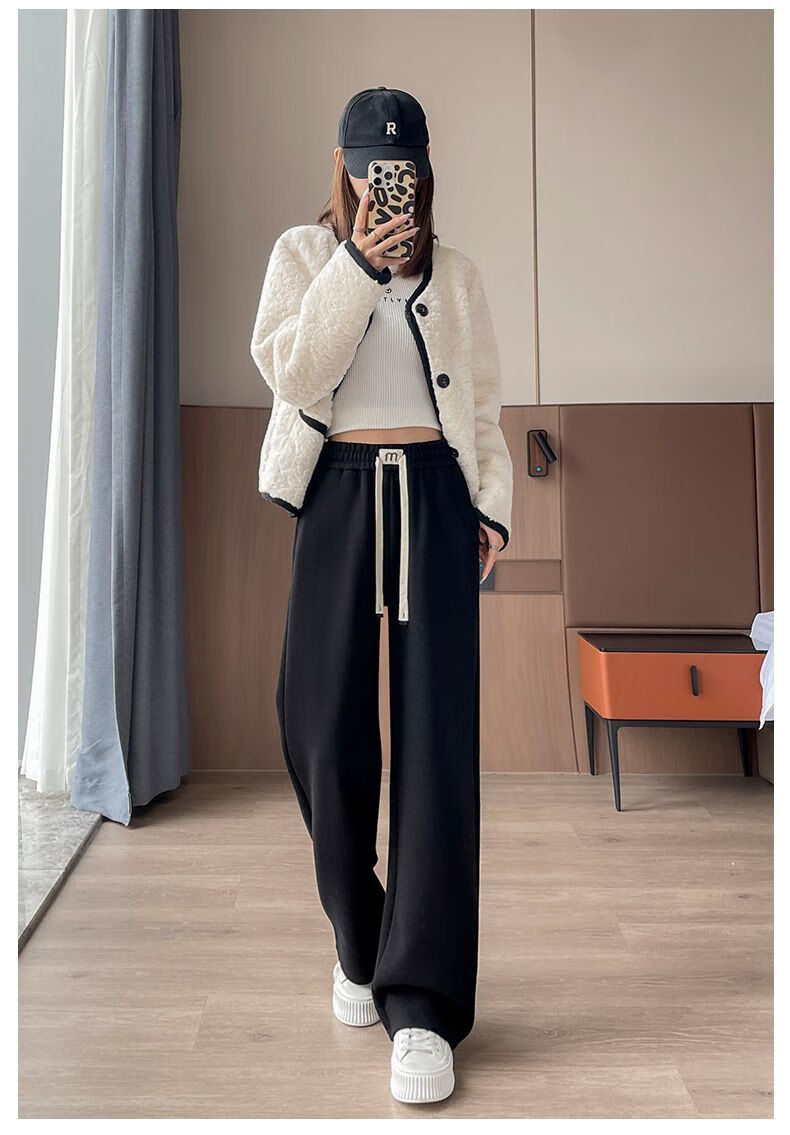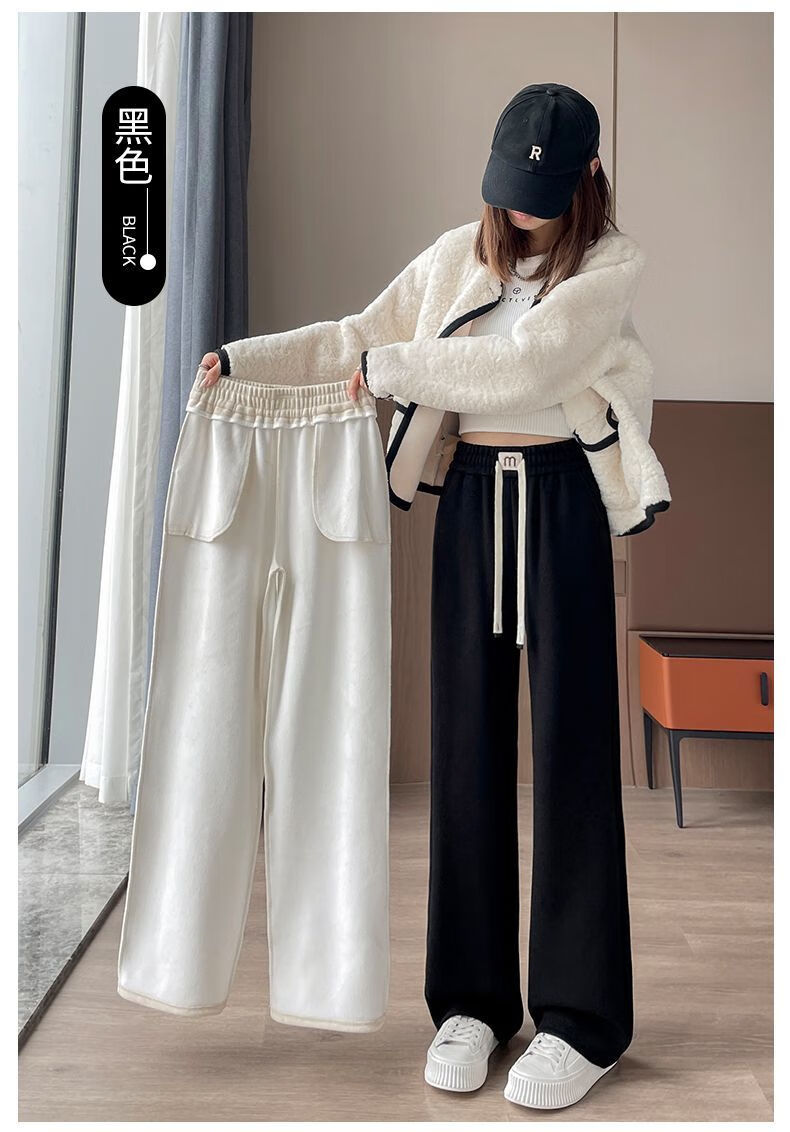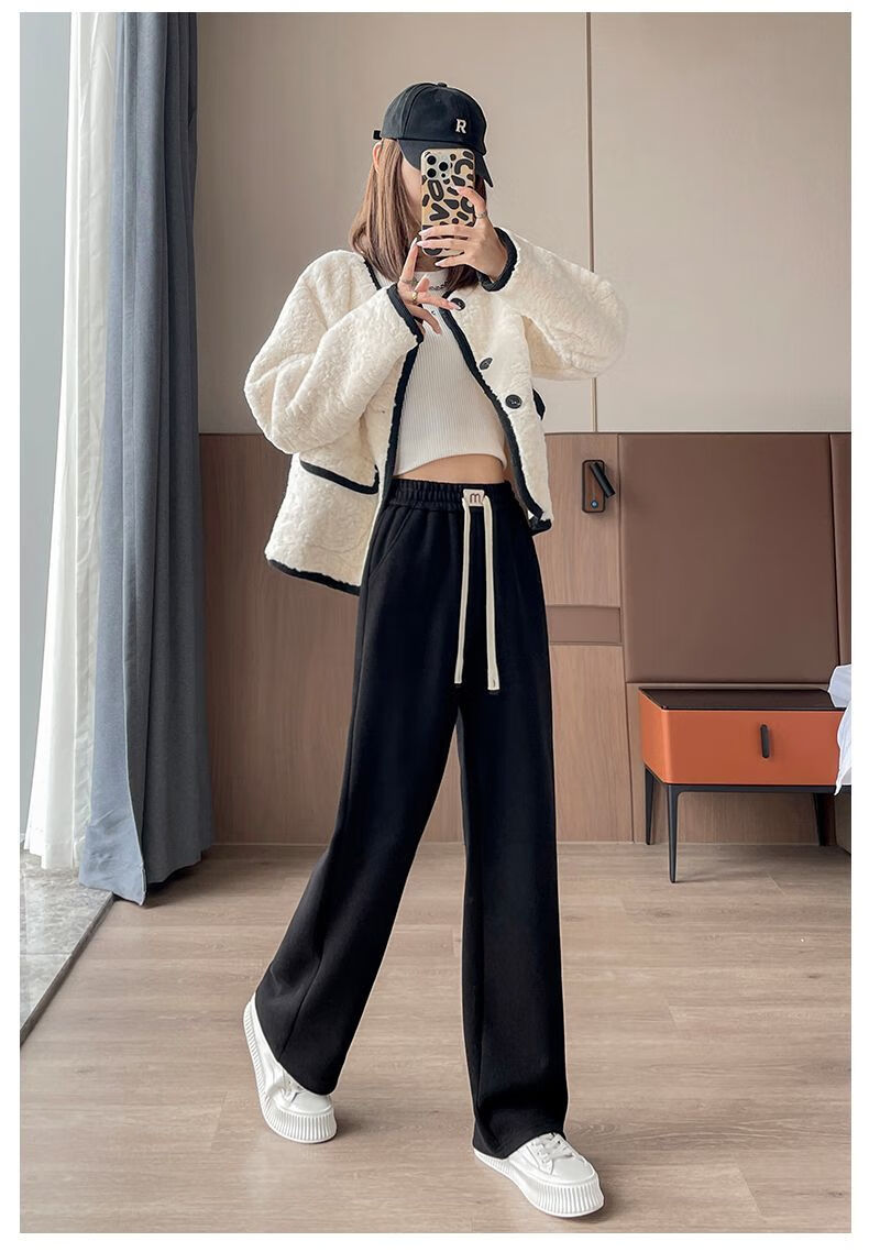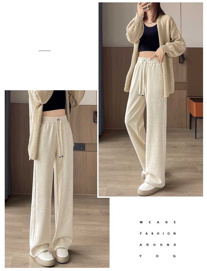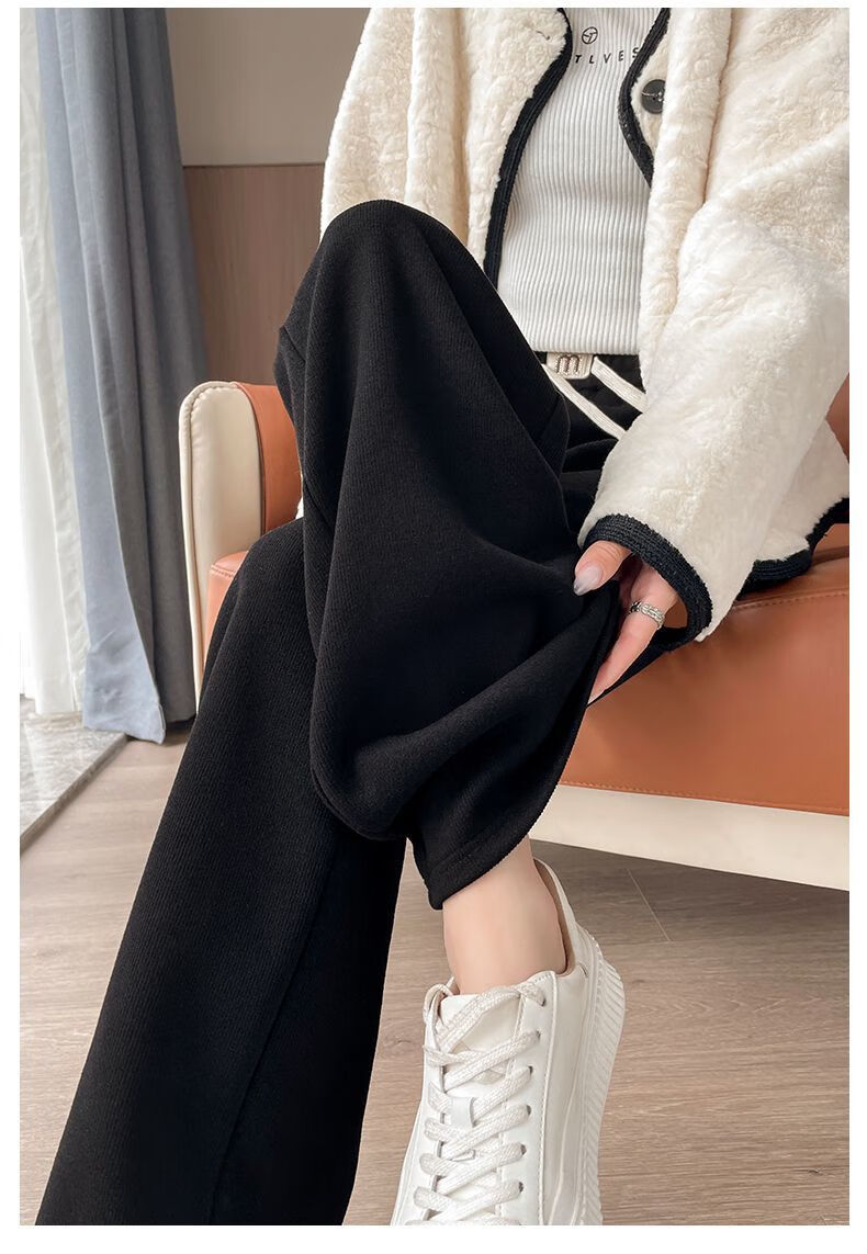 艾妃琳【9721人收藏】仿羊绒加绒阔腿裤女春秋新款高腰垂感宽松小个子窄 杏色小个子【春秋款】 S 建议80-95斤