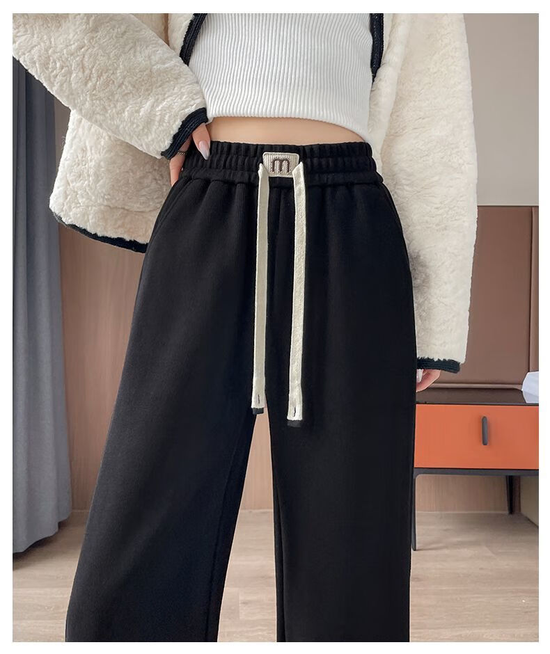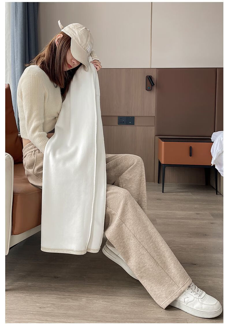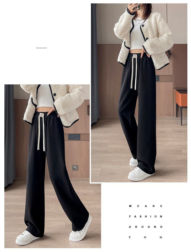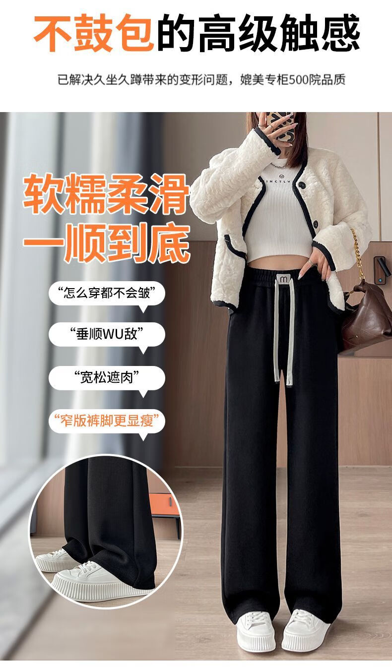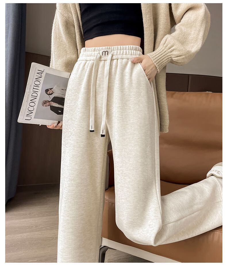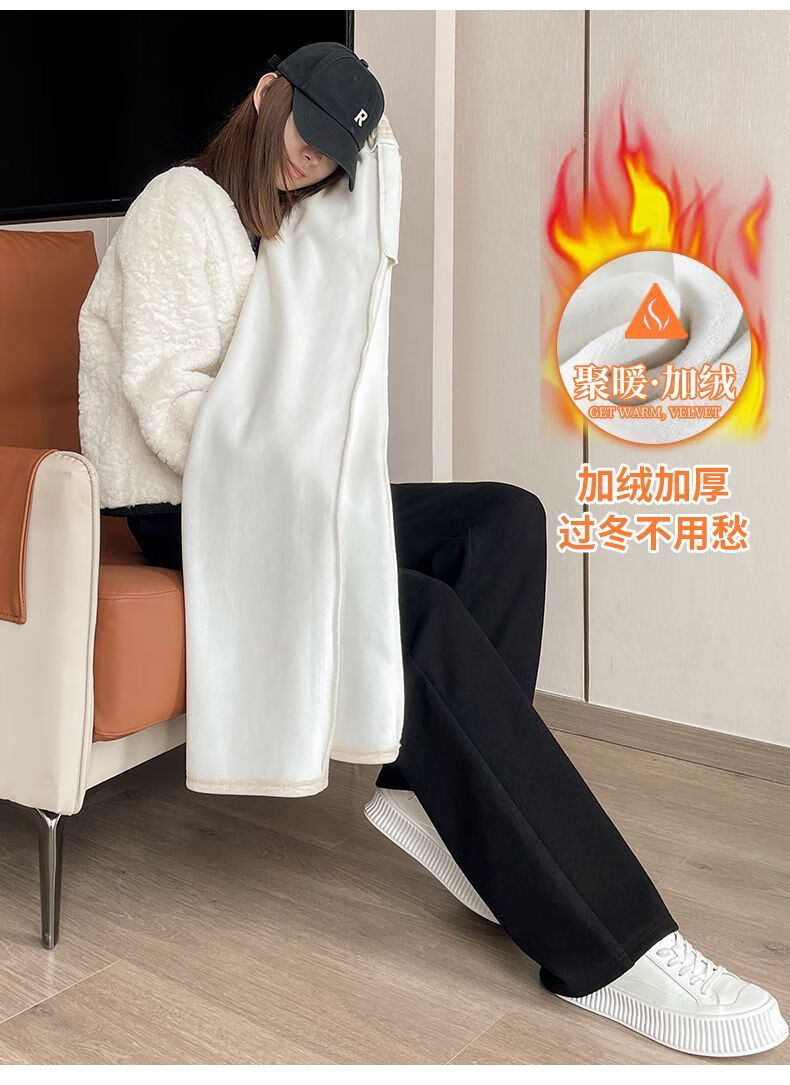 艾妃琳【9721人收藏】仿羊绒加绒阔腿裤女春秋新款高腰垂感宽松小个子窄 杏色小个子【春秋款】 S 建议80-95斤