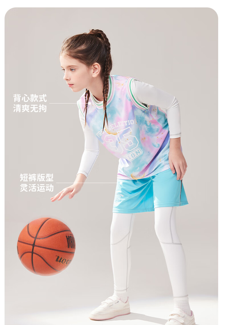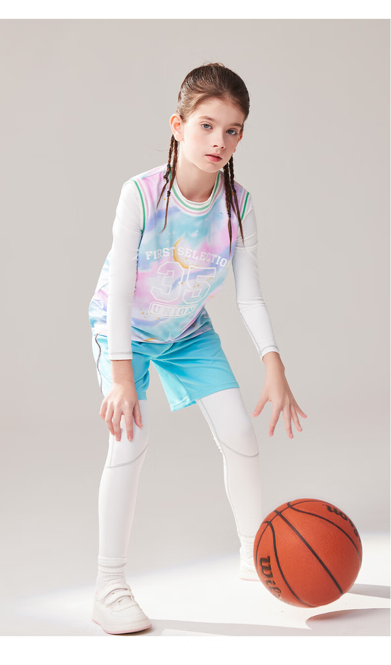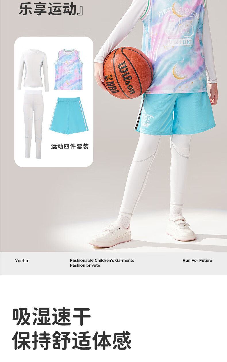Yuebu Basketball Training Clothing Children's Quick-Drying Sports Suit Boys and Girls Jersey Football Suit Running Vest Suit + White Tights White 120