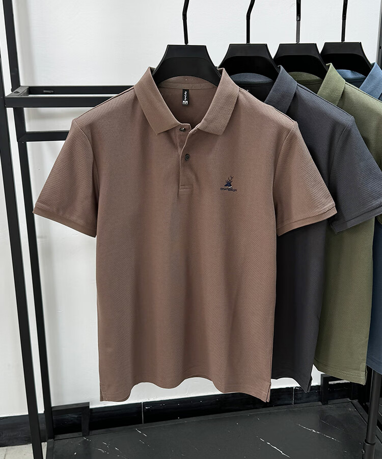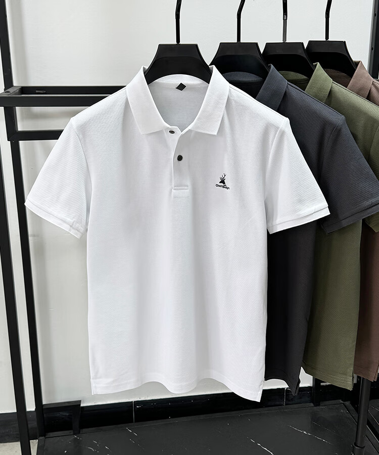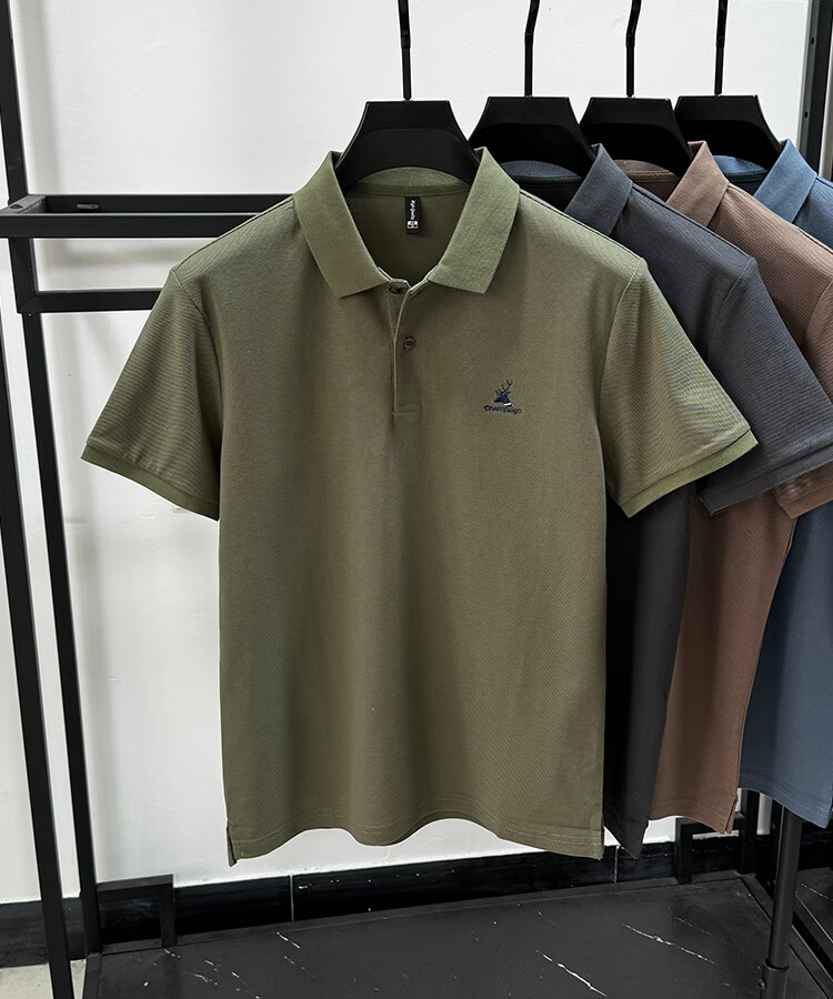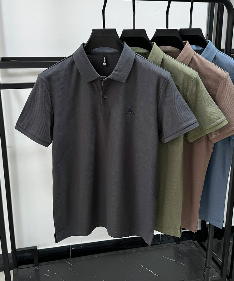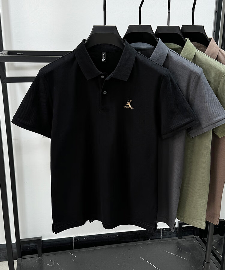 JEEP SPIRIT Polo de algodón pesado Jeep para hombre, camiseta de manga corta de algodón piqué de verano, camiseta holgada transpirable de tendencia de moda con abertura negro XL /52