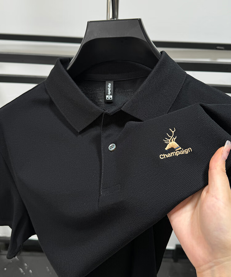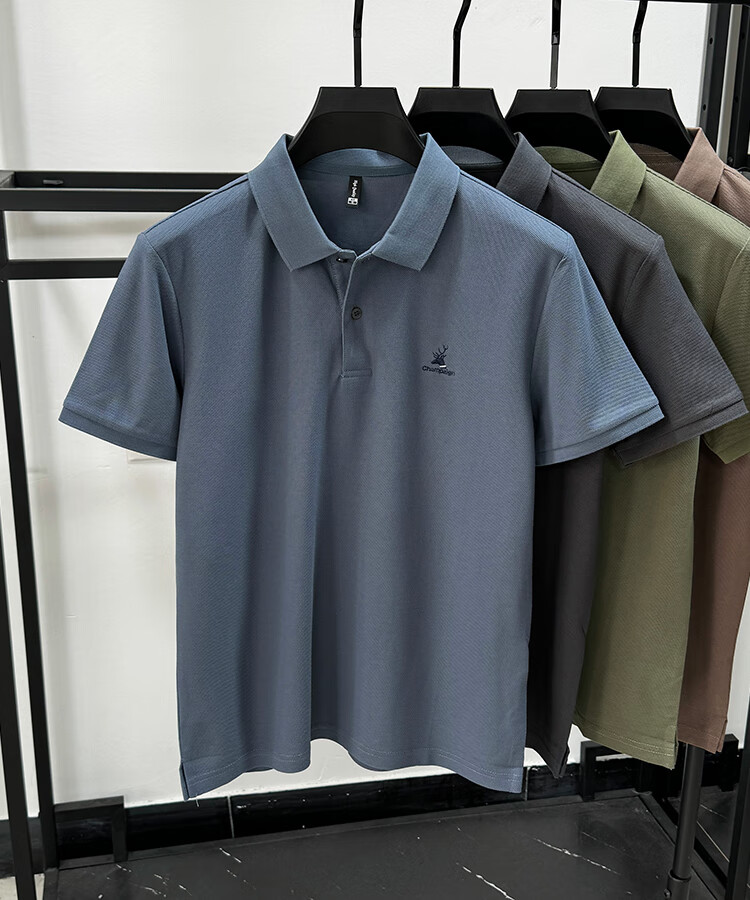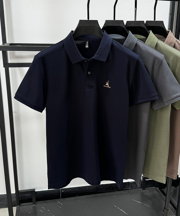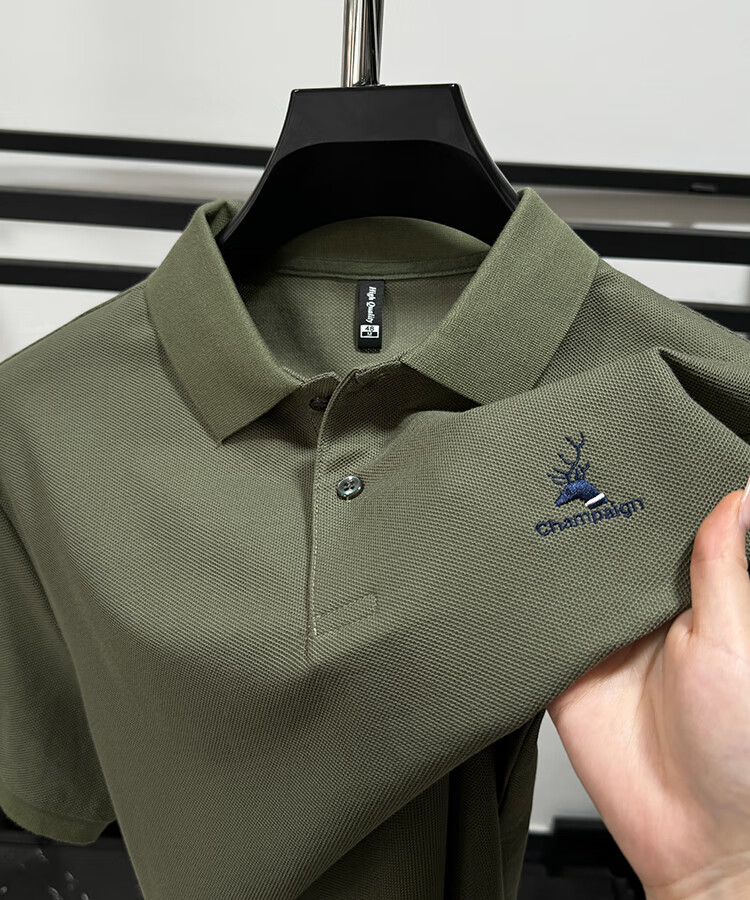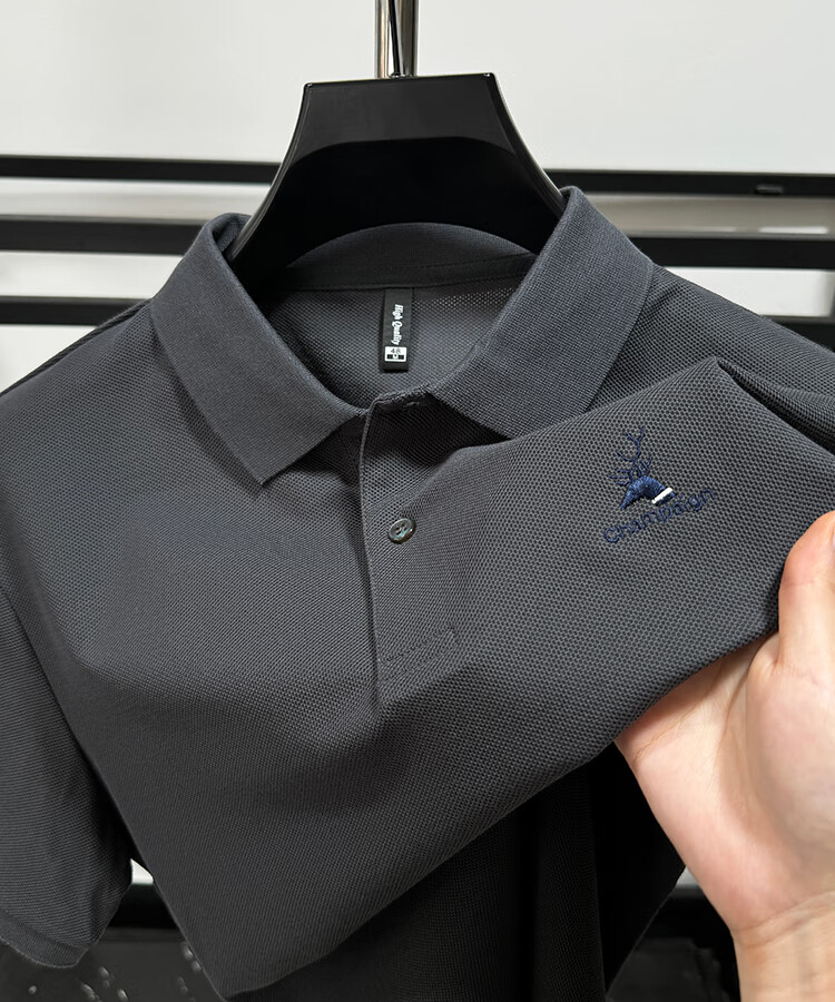 JEEP SPIRIT Polo de algodón pesado Jeep para hombre, camiseta de manga corta de algodón piqué de verano, camiseta holgada transpirable de tendencia de moda con abertura negro XL /52