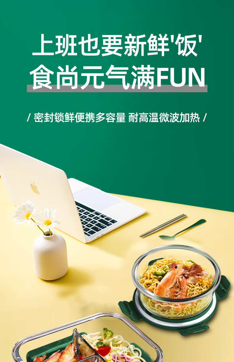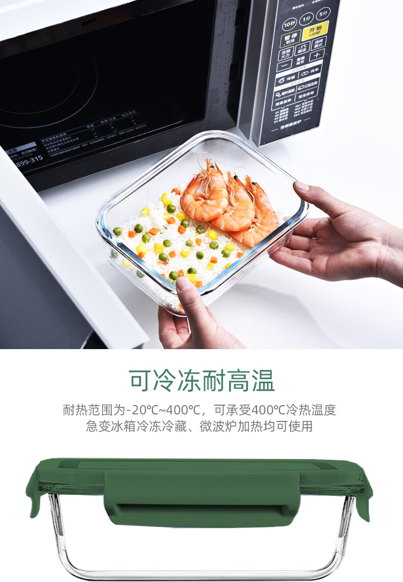 Locknlock glass lunch box microwave heating student lunch box lunch box separated crisper box ocean blue large long three compartments 1050++ guaranteed 480ml