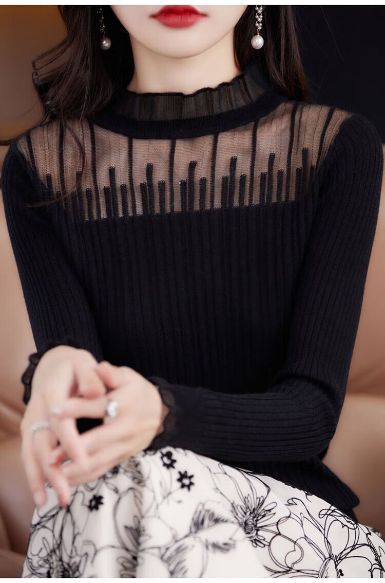 她风采3883人收藏2025秋冬新款时尚花边领背心蕾丝打底耳边高领毛衣针 米白色 S 80