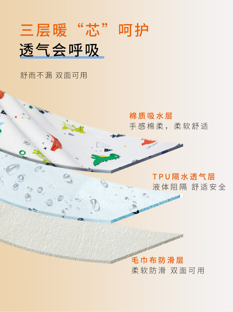 Baby diaper pad, newborn diaper, machine washable, waterproof, breathable, large aunt pad, leak-proof baby diaper pad, 45*30cm (2 pieces), colorful dinosaur (small size)