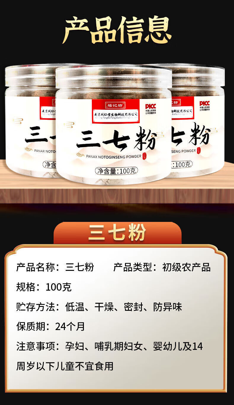 南京同仁堂精选三七粉云南文山无硫三七磨细田七粉罐装送礼佳品 1罐装100克体验装
