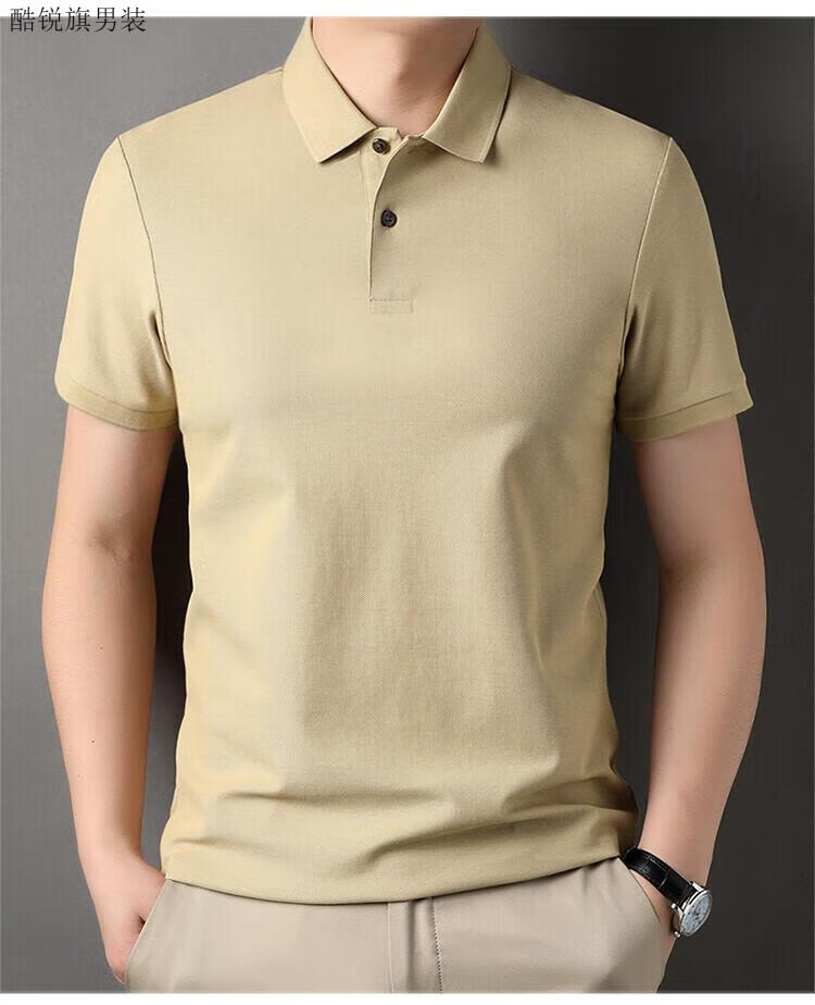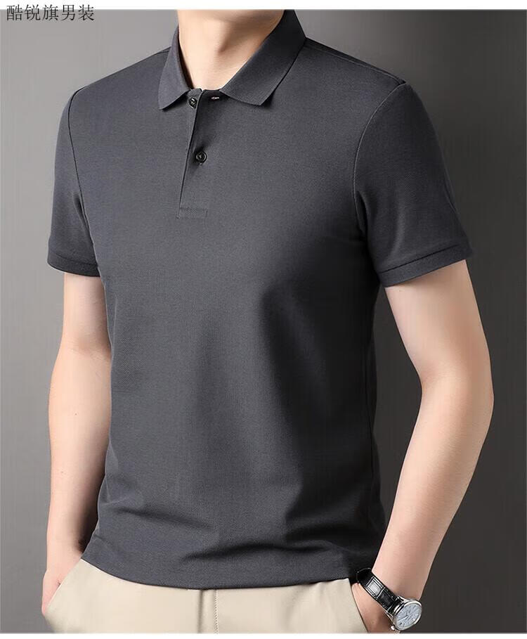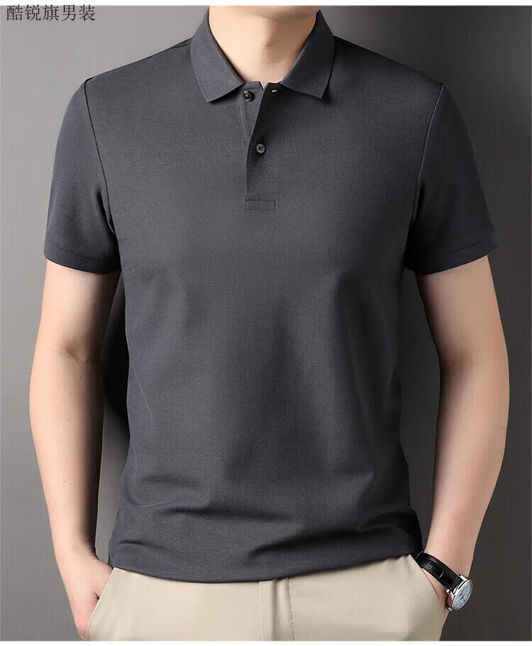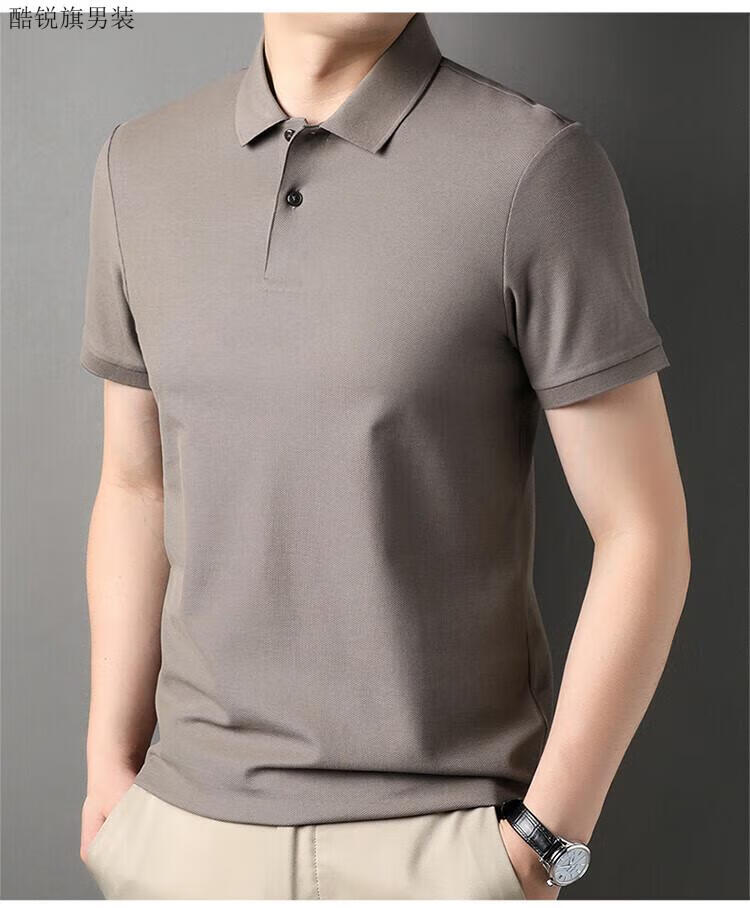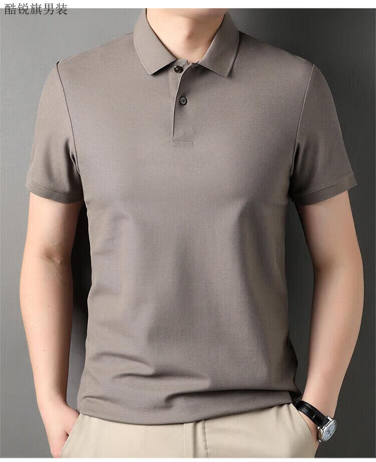丨Lilang丨100 cotton men's short-sleeved T-shirt summer top loose unlabeled POLO half-sleeved shirt mercerized combed cotton collar Gray Coffee XL 175/88A
