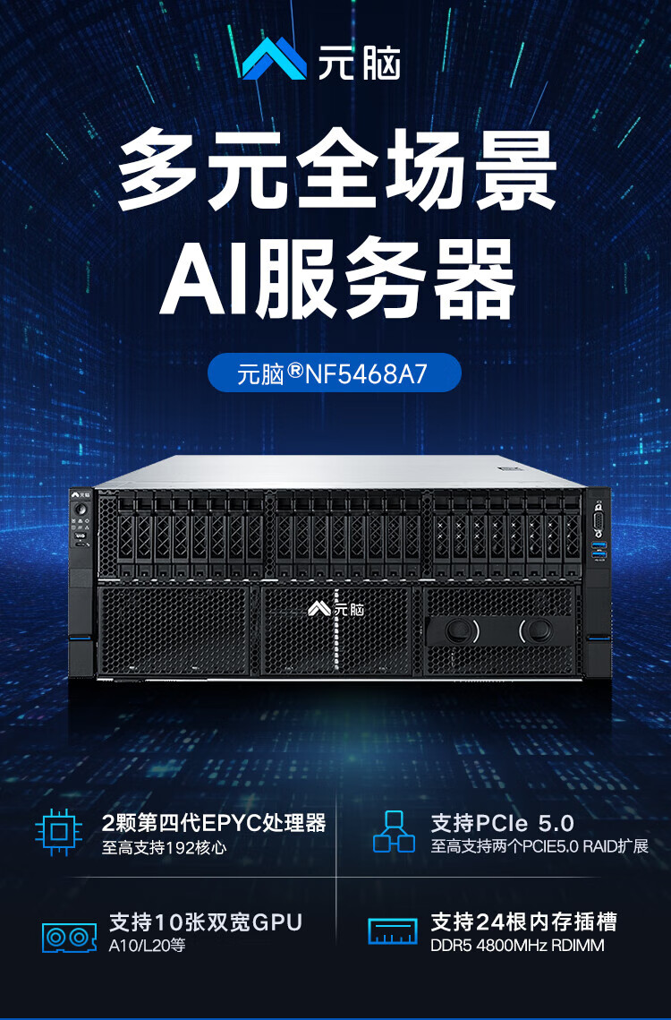 Yuan Nao NF5468A7 Inspur Information's fourth-generation AMD rack-mounted Yuan Nao server DeepSeek deploys domestic host AI deep learning large model inference and supports GPU memory solid-state capacity upgrade. Enjoy discounts when placing orders | Contact customer service for details