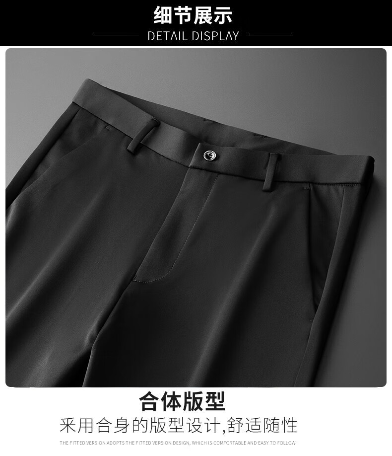 Woodpecker Casual Hosen Herren Sommer Neue Gerade Bein Lose Business Anzug Hosen Sommer Stretch Atmungsaktive Eis Seide Hosen Herren 686 Schwarz Dünne Abschnitt 29 (2 fuß 2) Empfohlen 100-110 Jin Jin entspricht 0,5 kg zu tragen