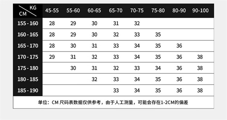 USA(inch) 28-30 30-32 32-34 34-38 38-42