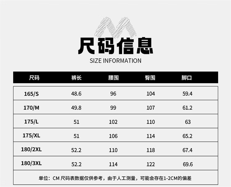 Outseam (cm) 99 cm 101.5 cm 104 cm 106.5 cm 109 cm