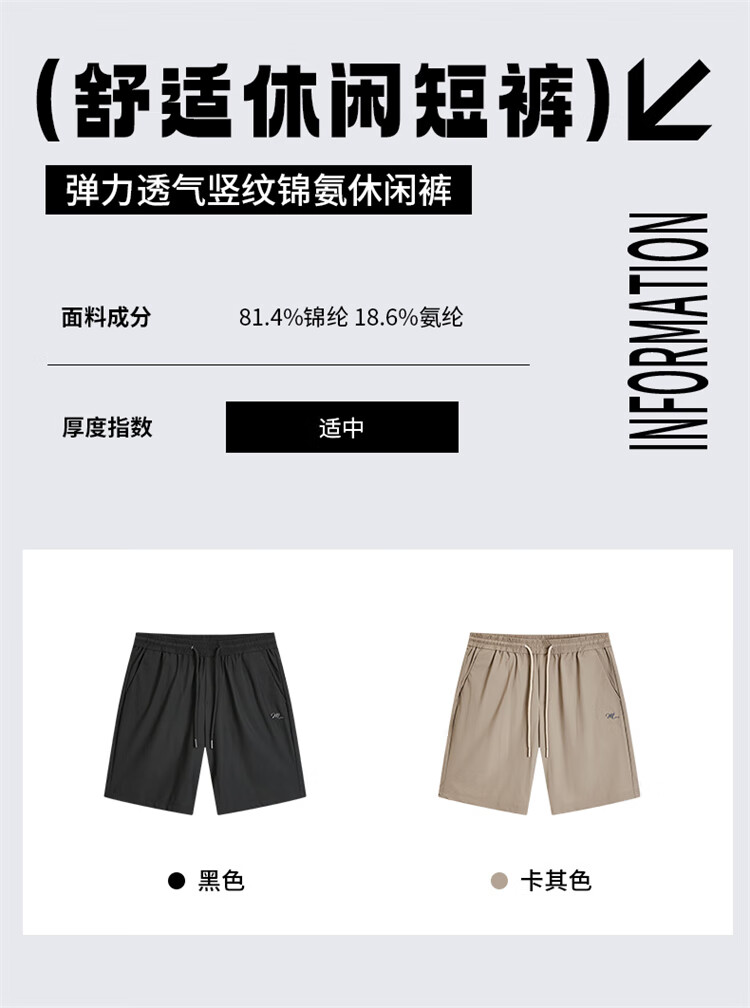马克华菲【弹力透气】休闲短裤男25夏季新款简约百搭刺绣通勤休闲五分裤 701卡其 M