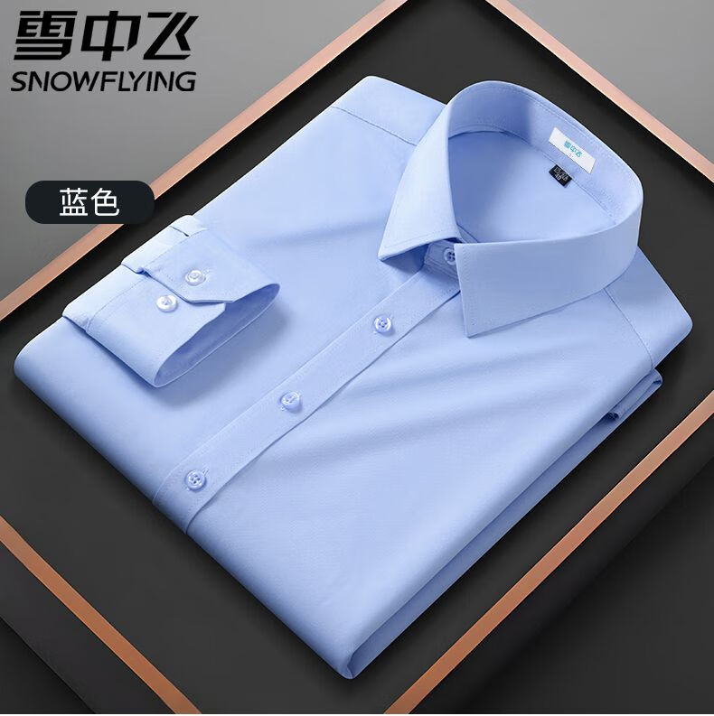 Volando en la nieve y volando en la nieve más gordo más gordo camisa formal de manga larga de negocios camisa de hombre de color sólido en pulgadas camisa blanca suelta de gran tamaño 3527-blanco-azul-9058 45 (190-205 Jin Jin es igual a 0,5 kg)