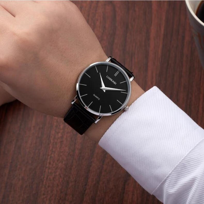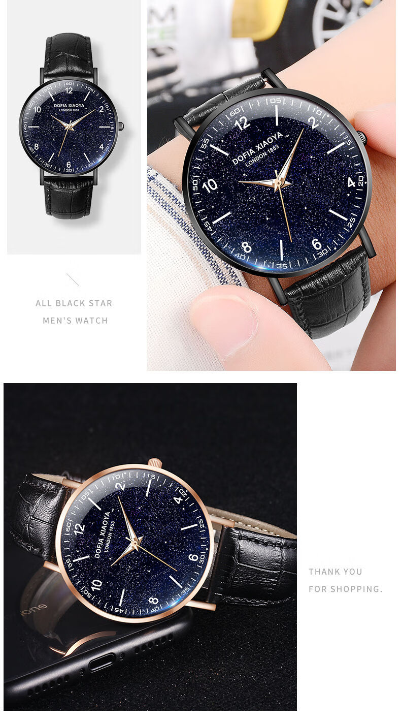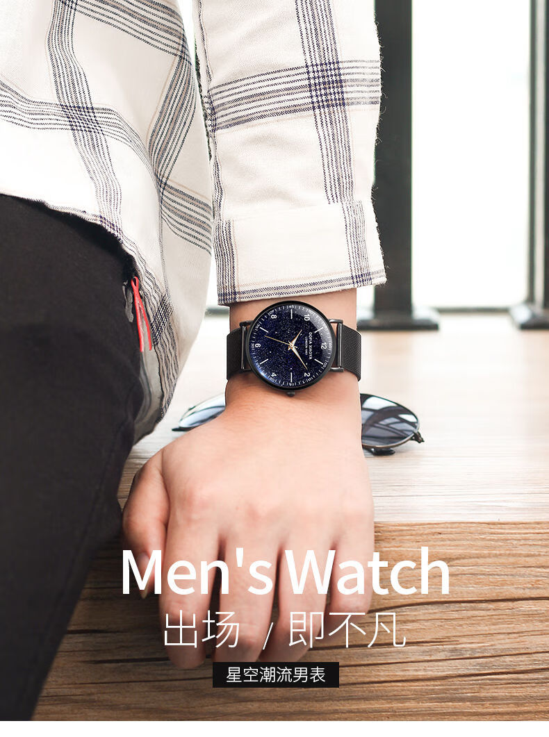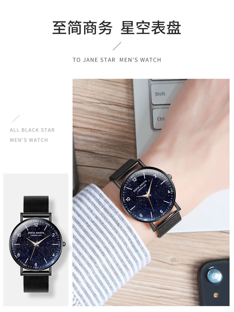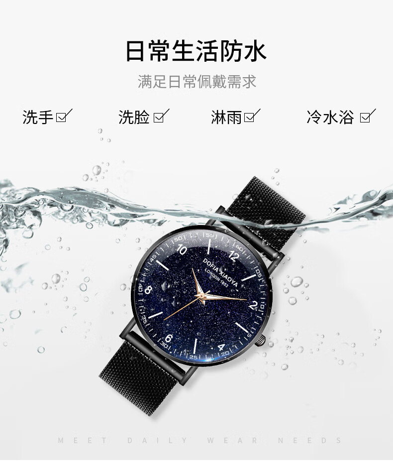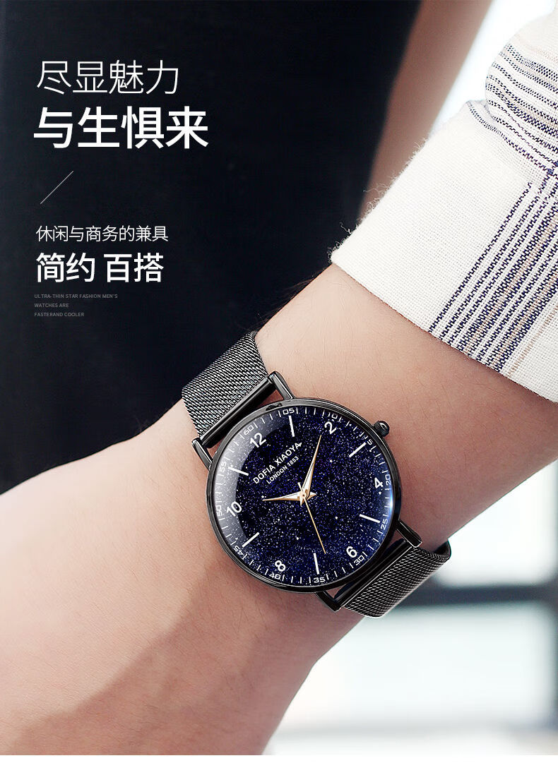 碧允超薄男士手表男学生韩版简约休闲潮流时尚皮带防水石英非机械表 3883黑带黑面+表带