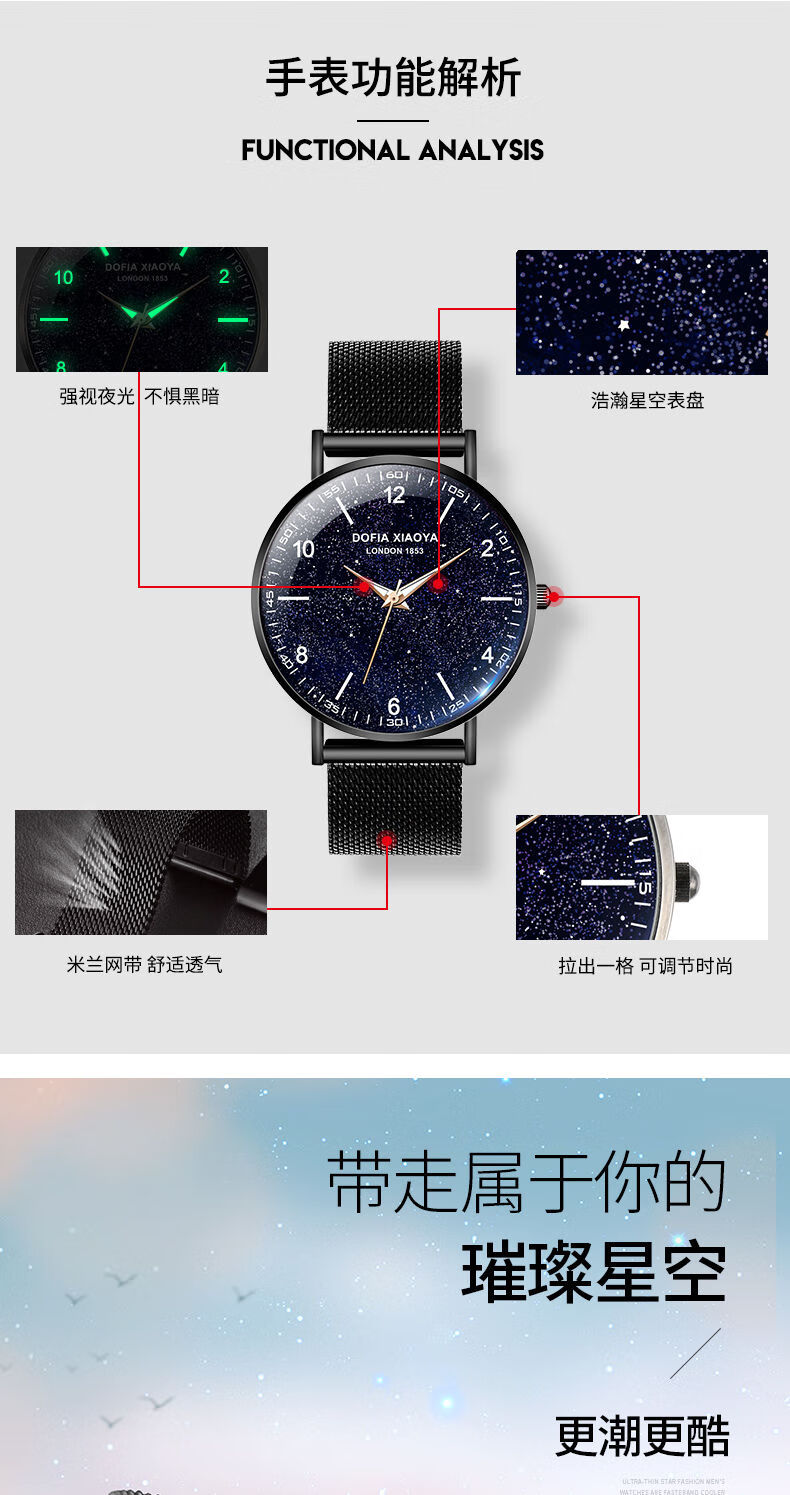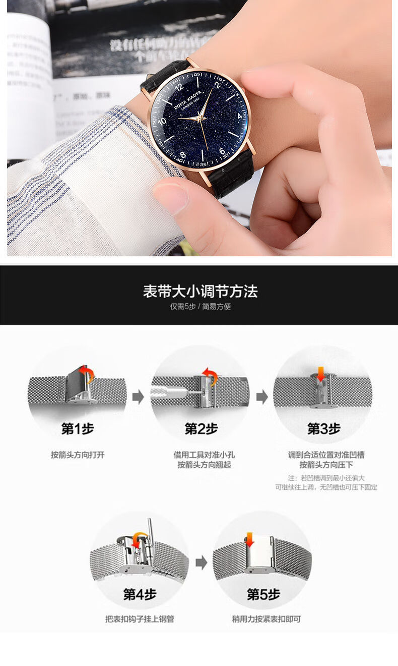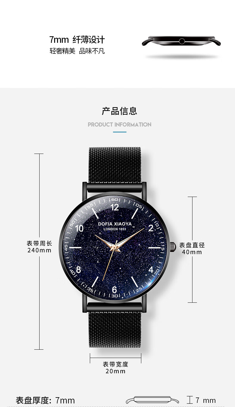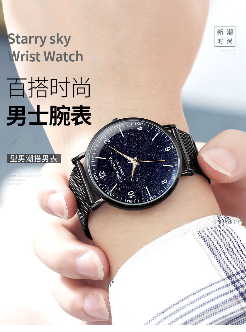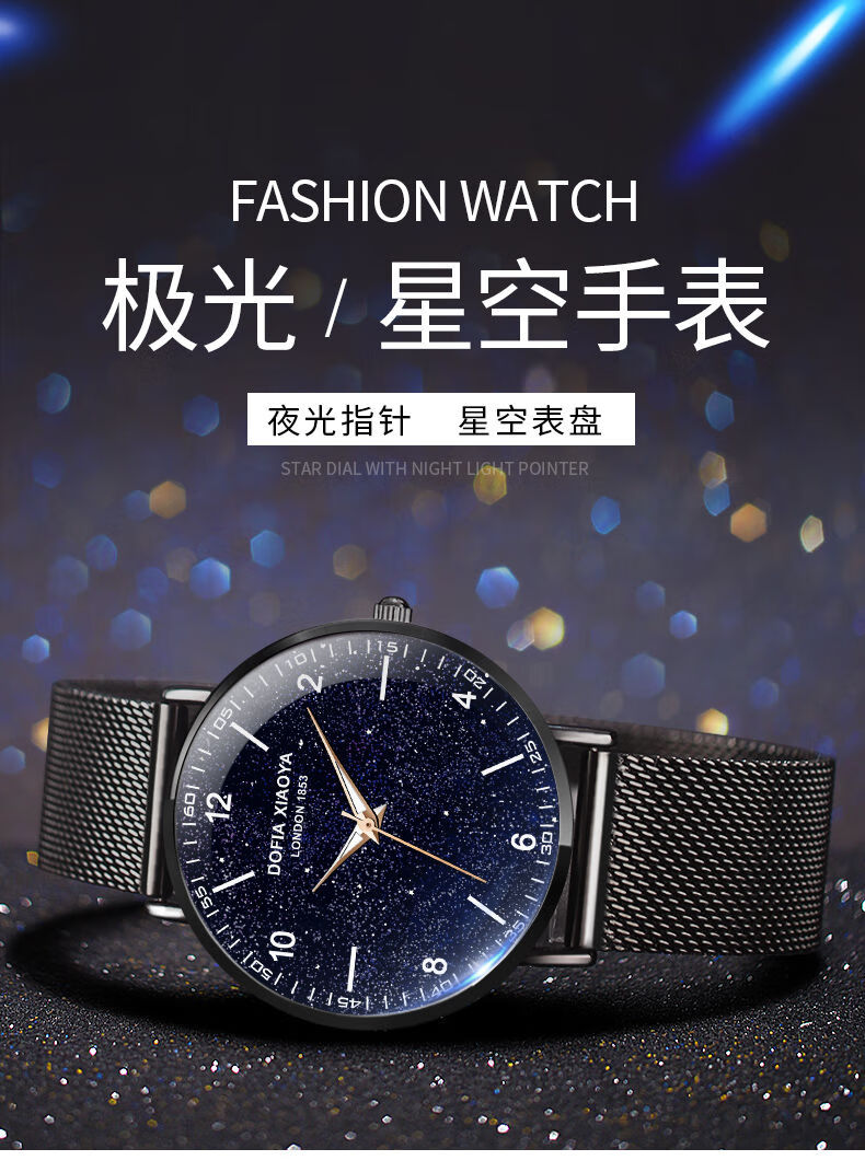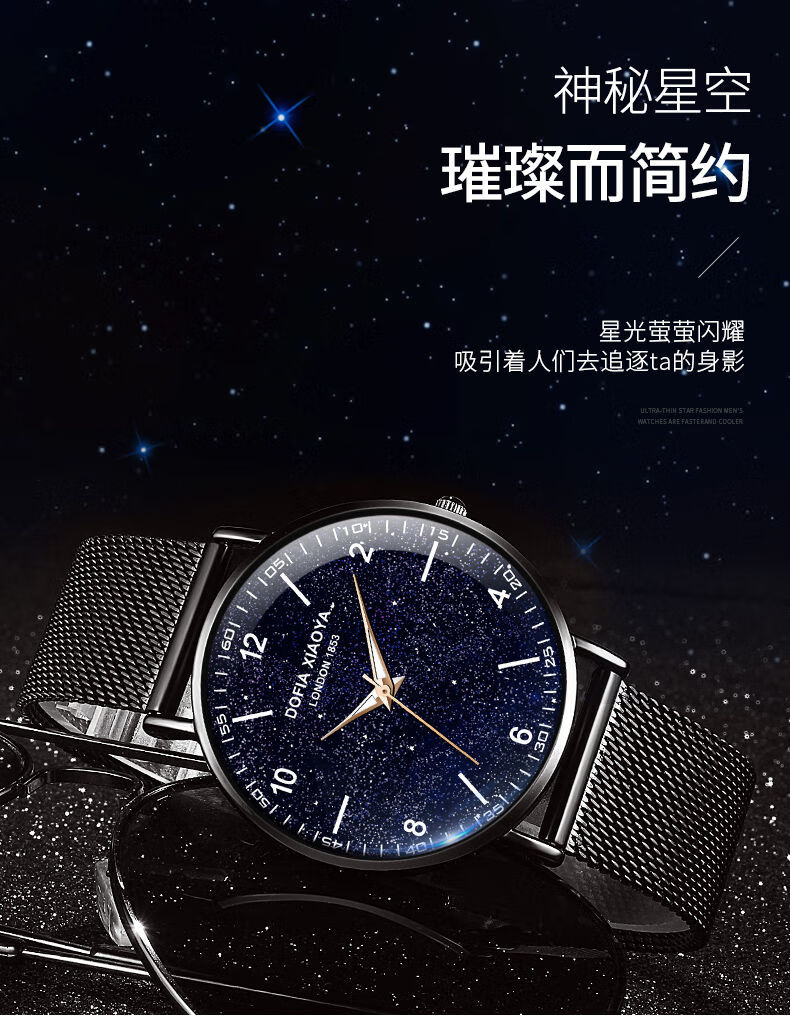 碧允超薄男士手表男学生韩版简约休闲潮流时尚皮带防水石英非机械表 3883黑带黑面+表带