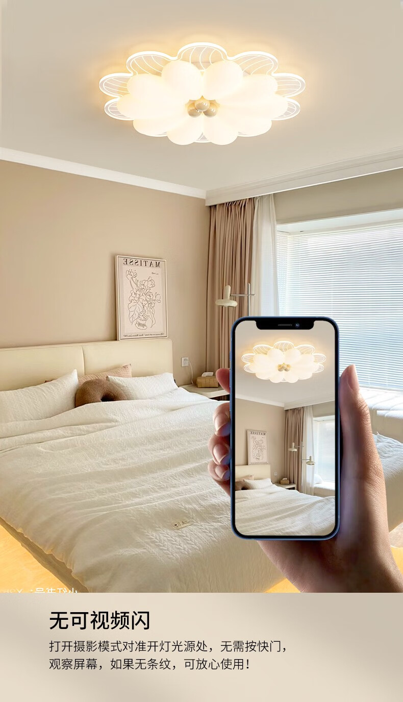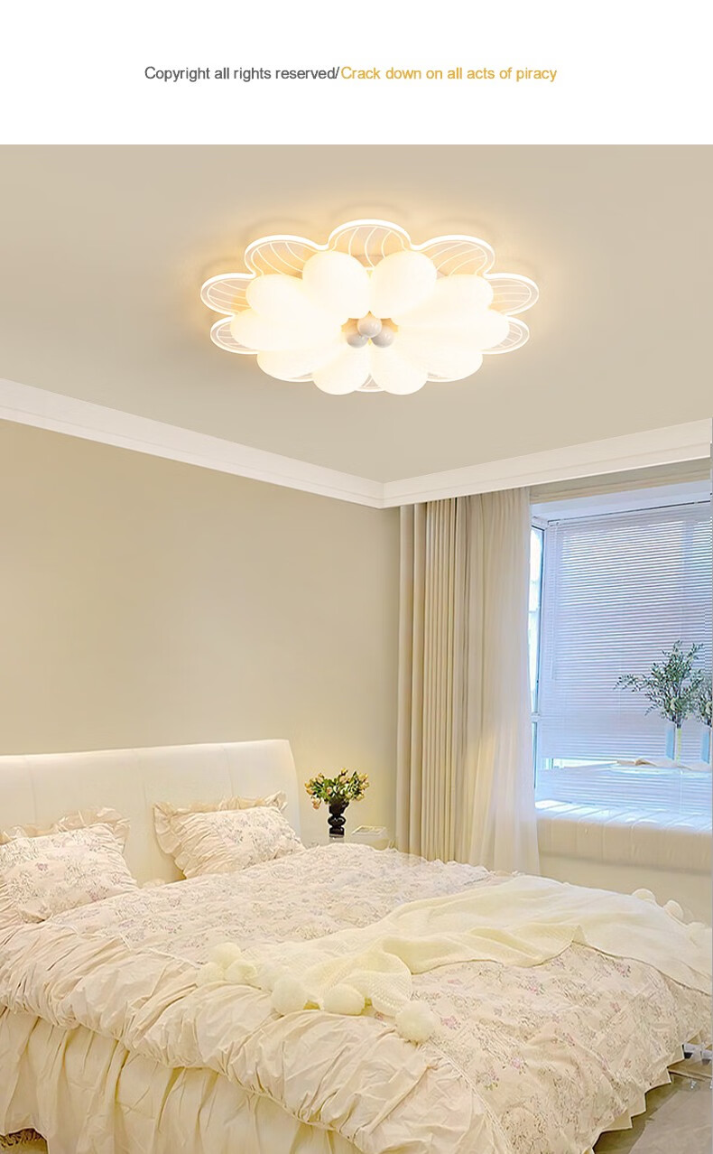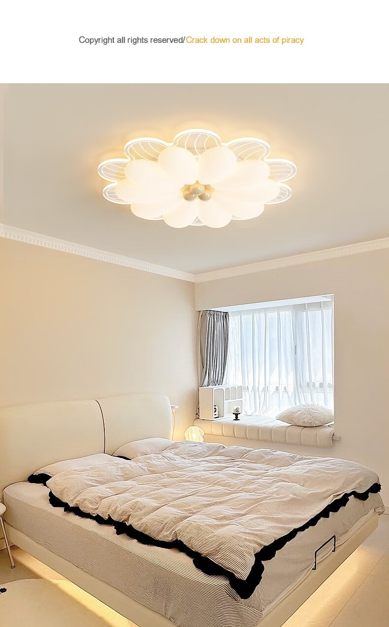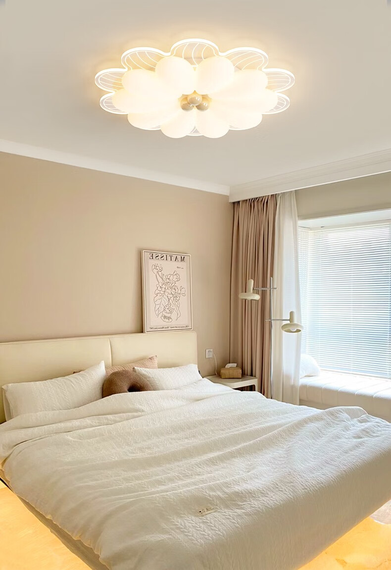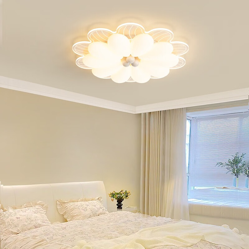 NVC 2025 neue Hauptschlafzimmerlampe, cremefarbener Stil, Blütenblätter, Internet-Promi-Deckenlampe, einfache moderne Mädchenzimmerlampe, YH826, weiß, 64 cm, 68 W, + Fernbedienung, intelligent