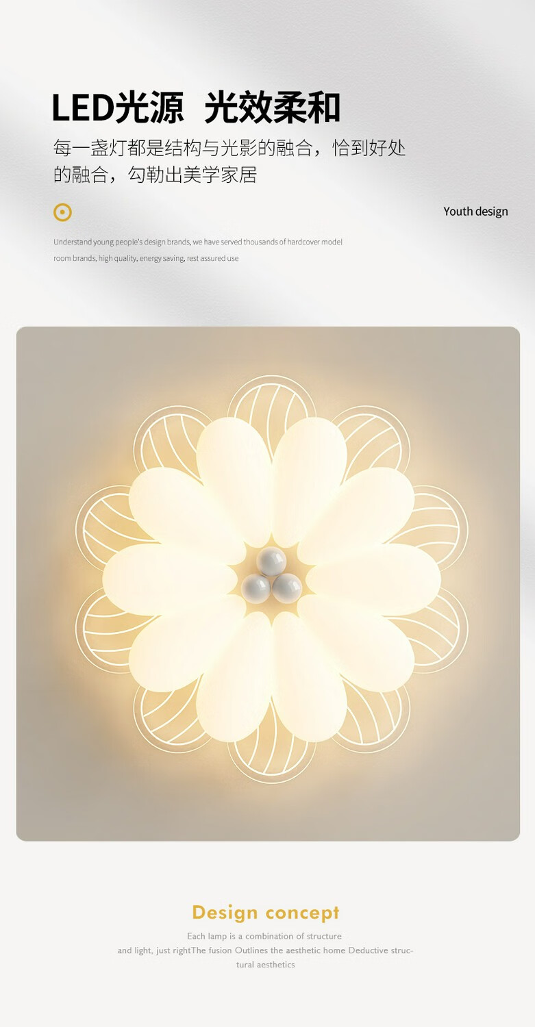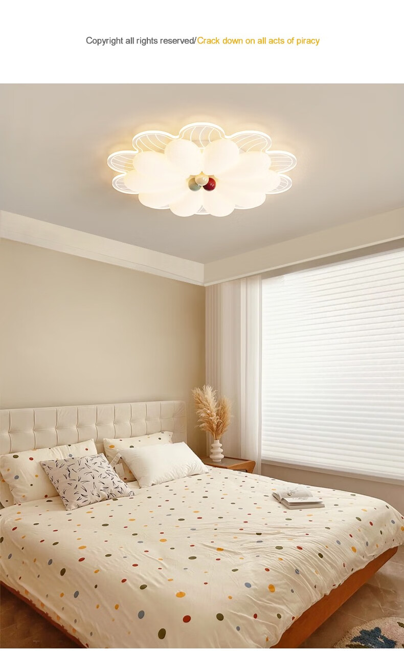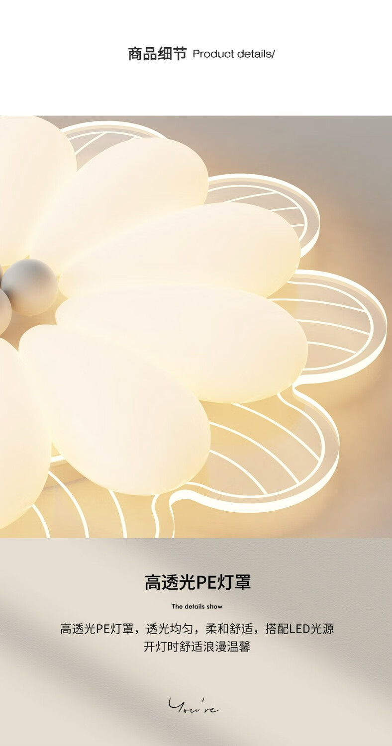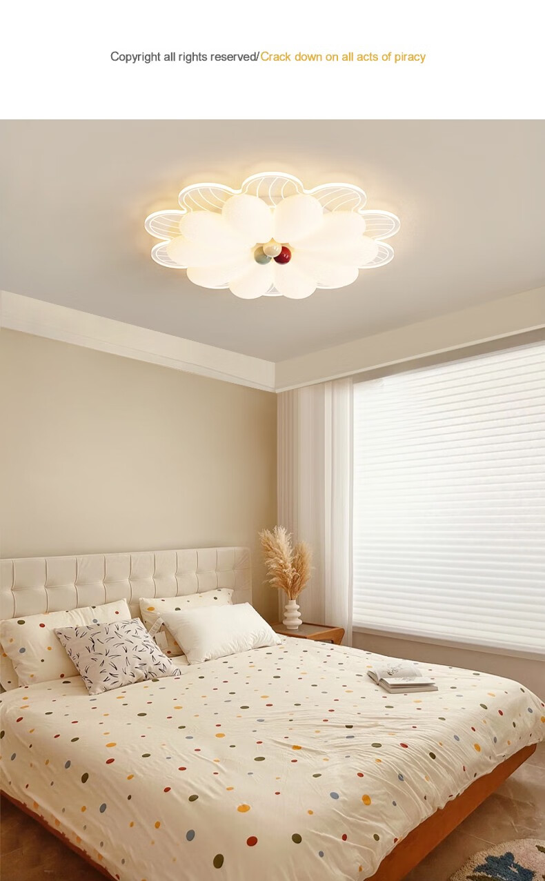 NVC 2025 neue Hauptschlafzimmerlampe, cremefarbener Stil, Blütenblätter, Internet-Promi-Deckenlampe, einfache moderne Mädchenzimmerlampe, YH826, weiß, 64 cm, 68 W, + Fernbedienung, intelligent