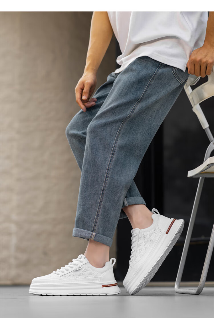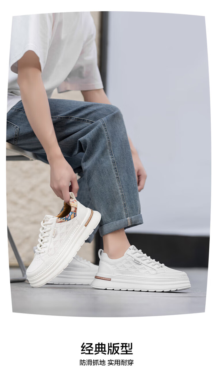 Heilan House men's shoes autumn breathable soft sole heightening shoes men's classic sneakers men's casual shoes sports white shoes sweaty feet shoes white rice dumpling punching style 225 41