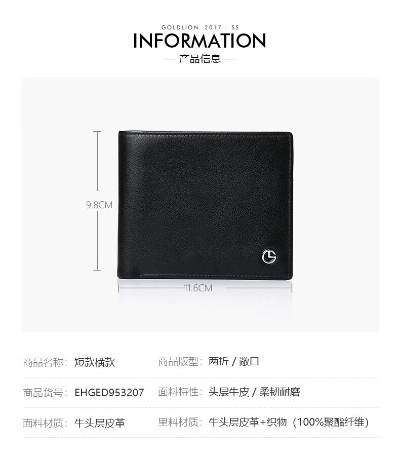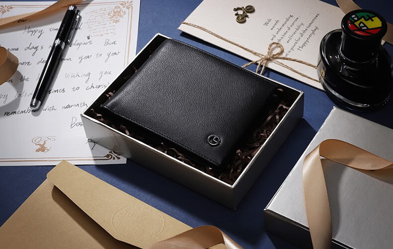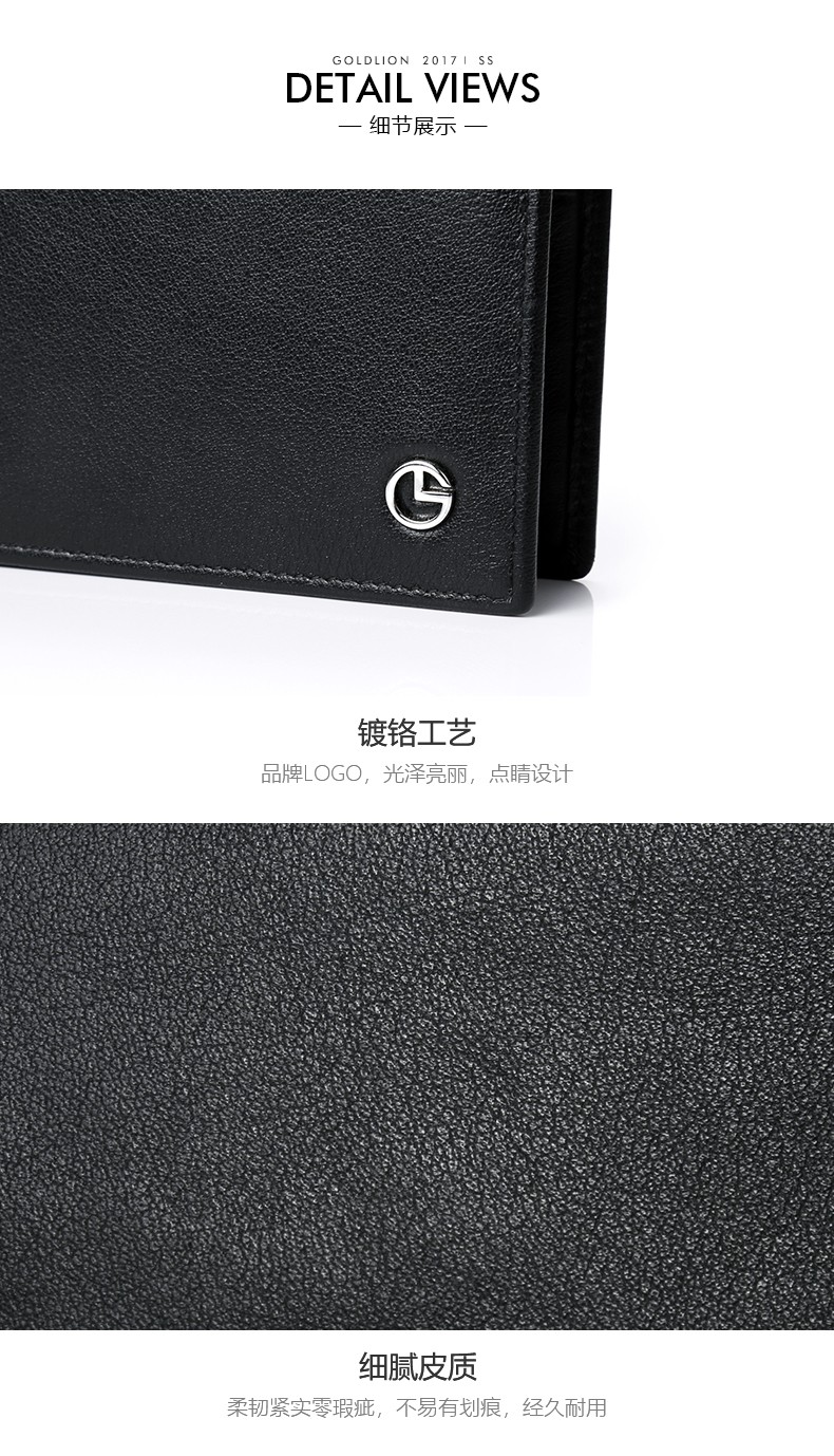 Goldlion Geschenkbox-Geldbörse für Herren, 2025, neuer kurzer Stil, praktisches Geschenk, erste Schicht, Rindsleder, Kartentasche, Leder-Clip-Geldbörse 99P2-Schwarz