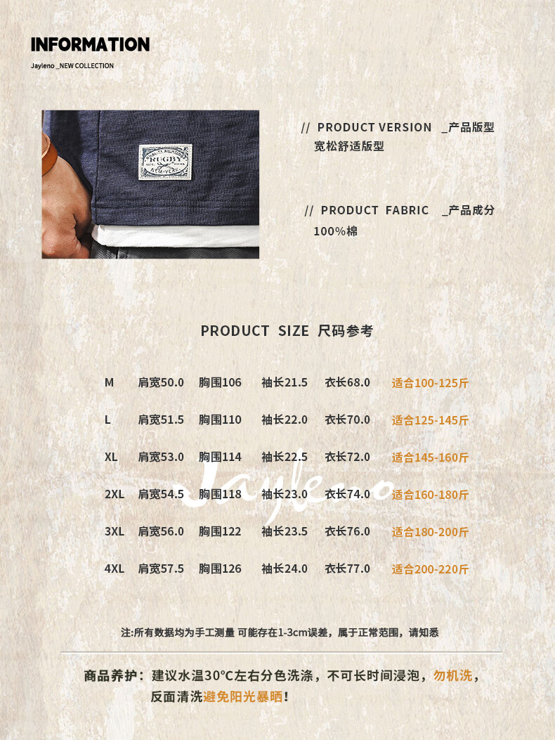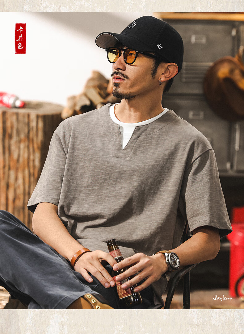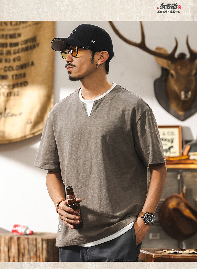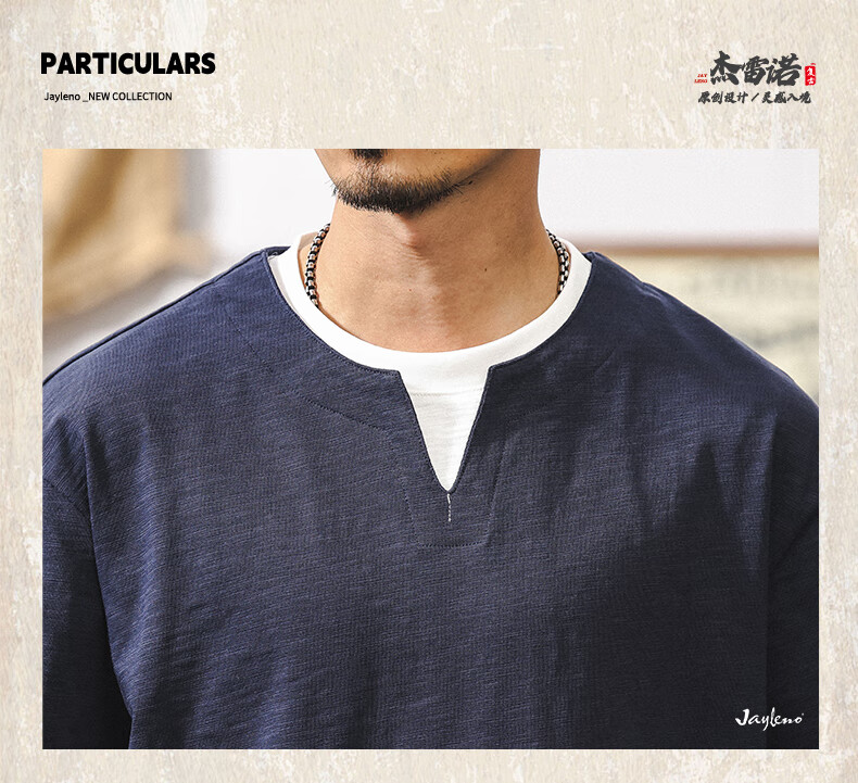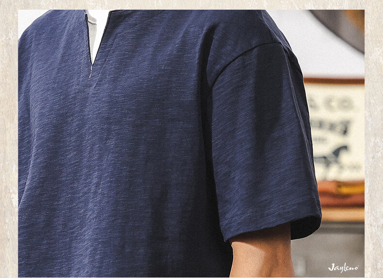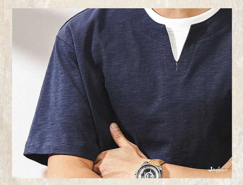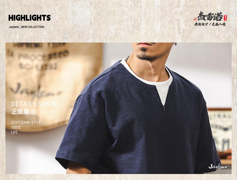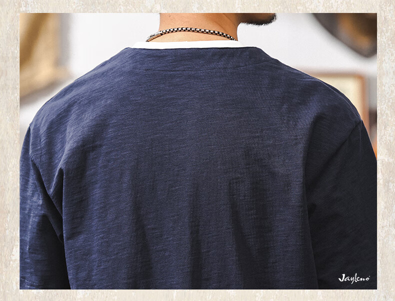 Jay Leno fake two-piece bamboo cotton men's T-shirt short-sleeved summer trendy brand 230g heavy cotton American retro henley shirt for men royal blue heavy 230g 3XL suitable for 180-200Jin Jin is equal to 0.5 kg