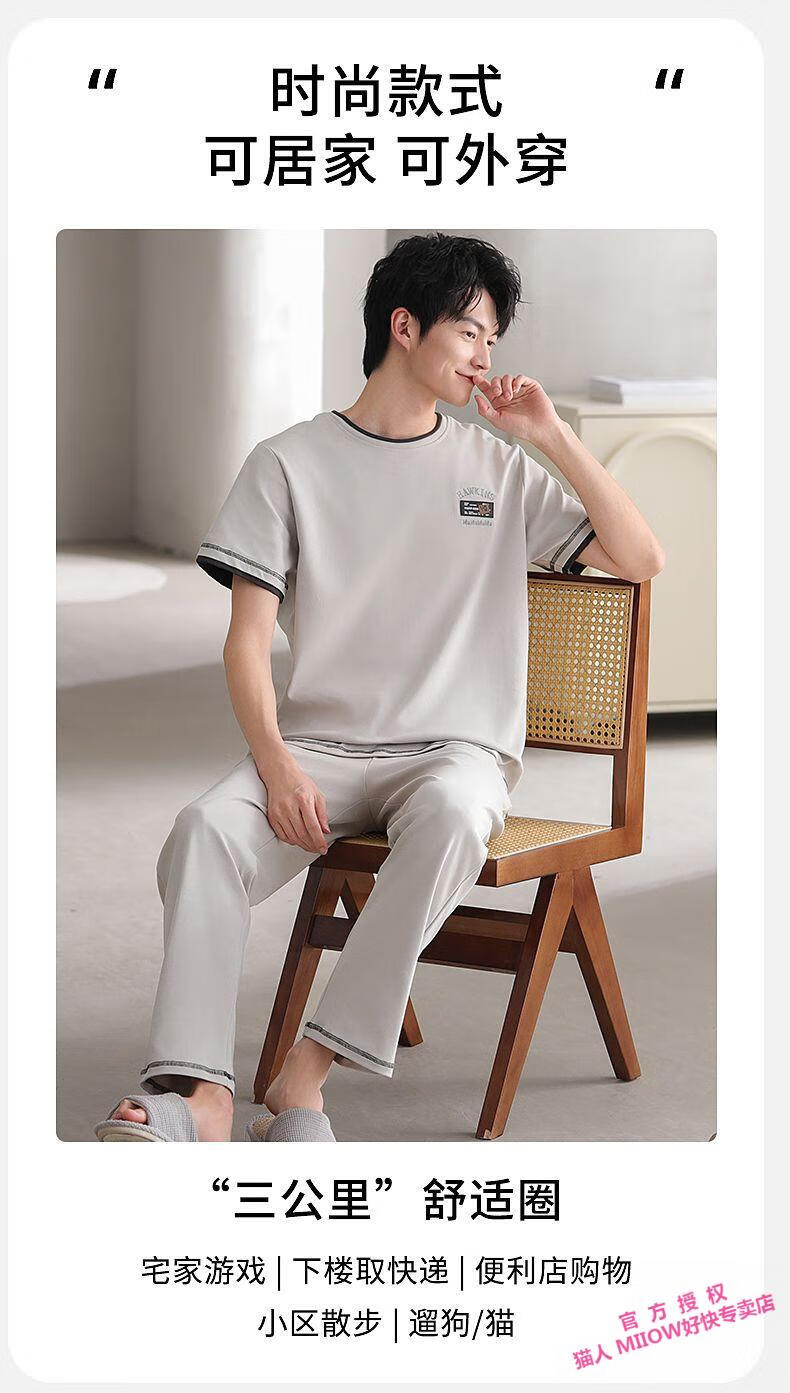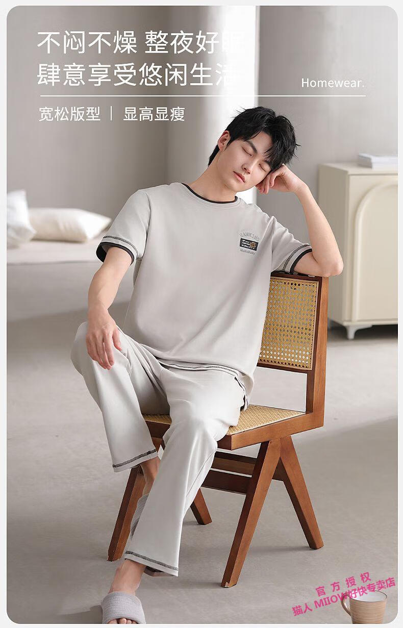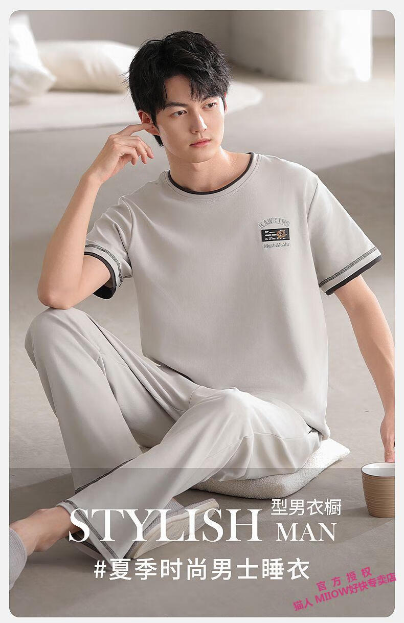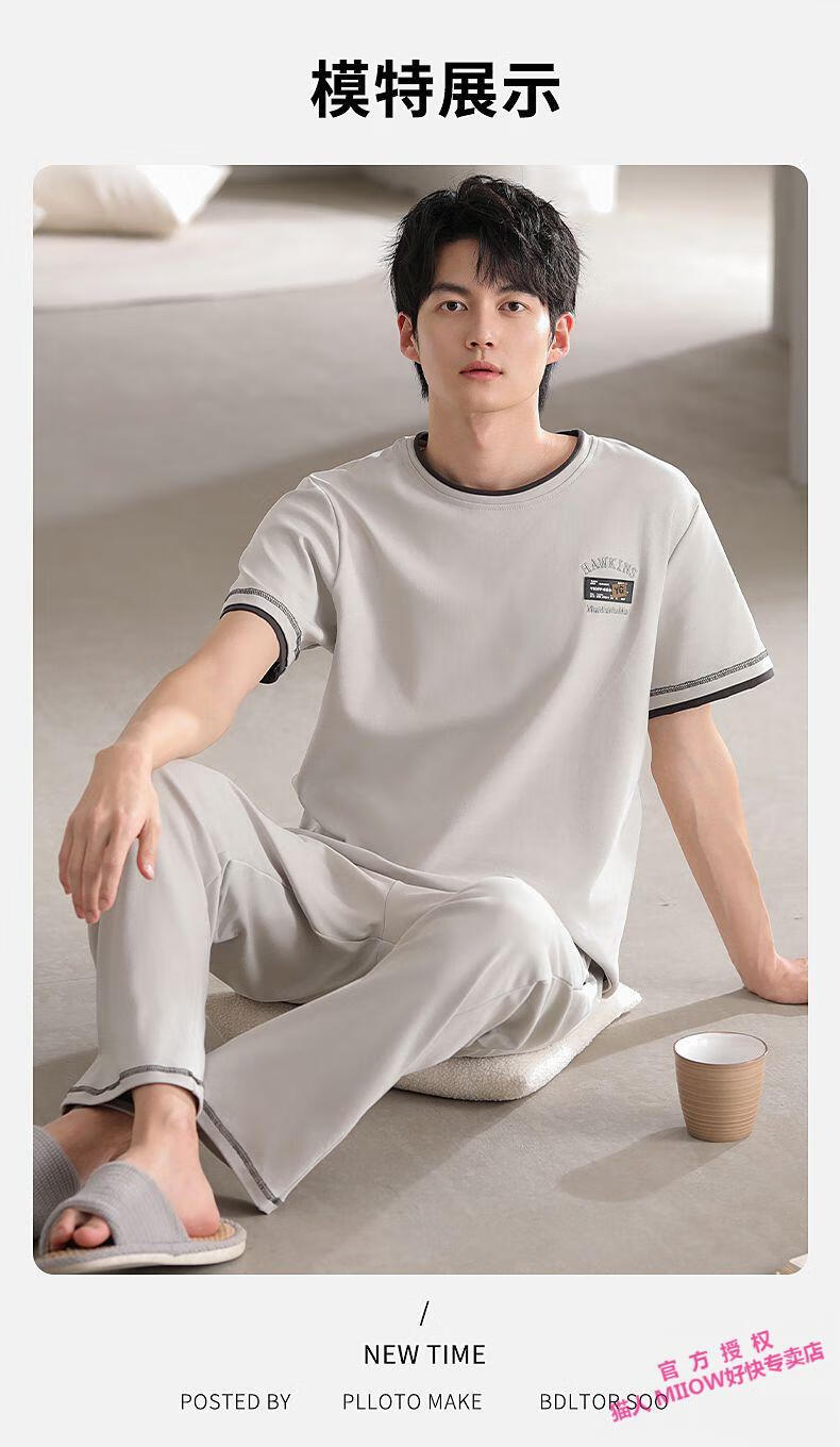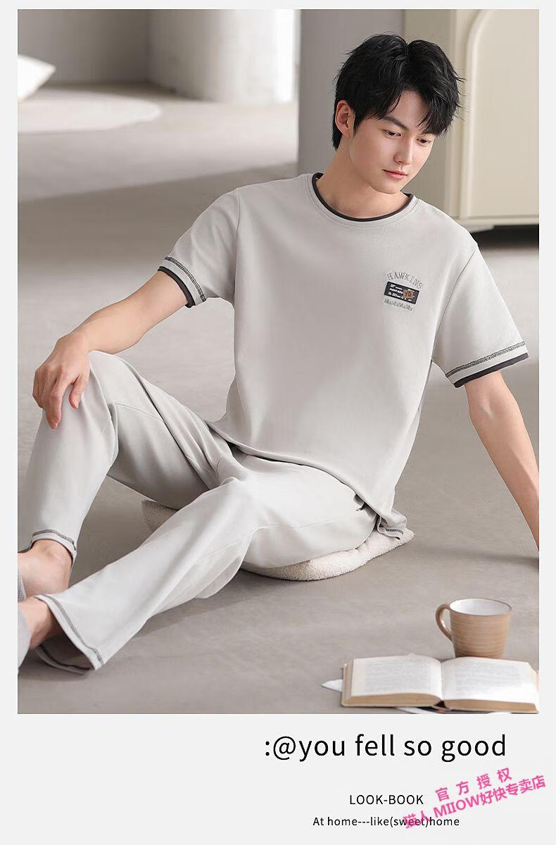 MiiOW Herren-Pyjama, Sommer, neue coole Baumwolle, Rundhalsausschnitt, kurzärmelige Hose, Jugend, koreanischer Stil, lässige, lockere Heimkleidung, kann draußen getragen werden 12014 L