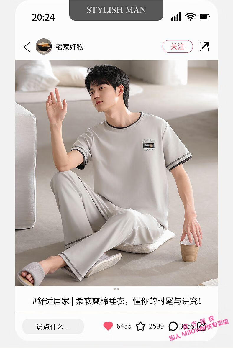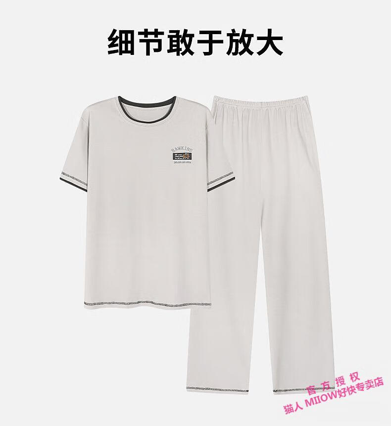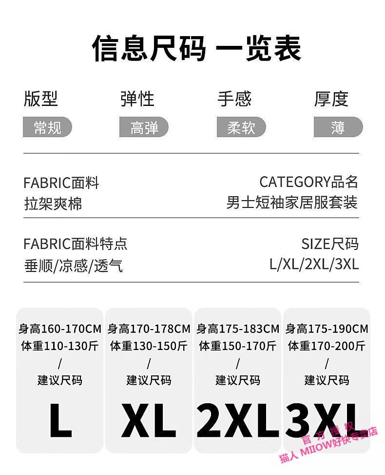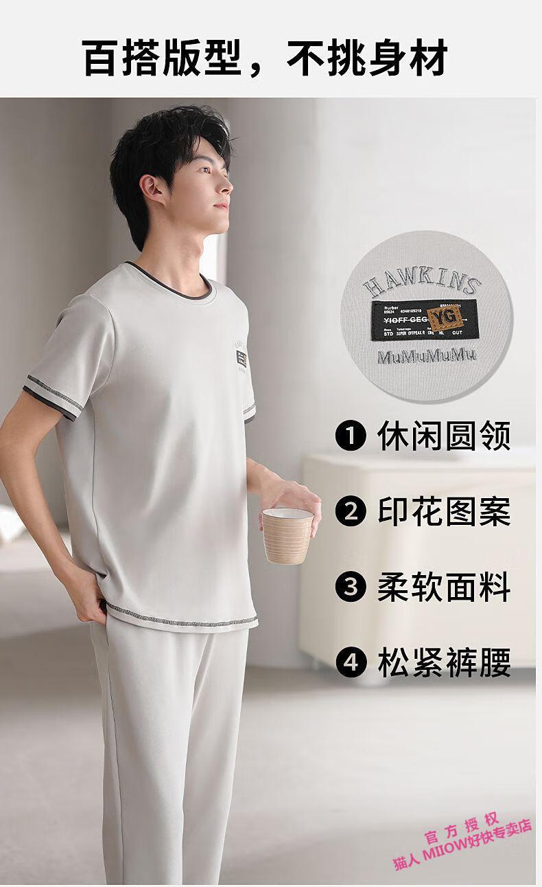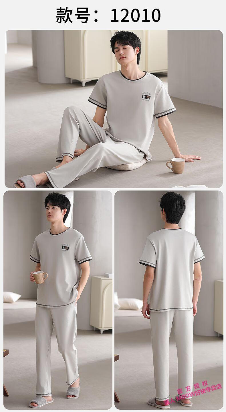 MiiOW Herren-Pyjama, Sommer, neue coole Baumwolle, Rundhalsausschnitt, kurzärmelige Hose, Jugend, koreanischer Stil, lässige, lockere Heimkleidung, kann draußen getragen werden 12014 L