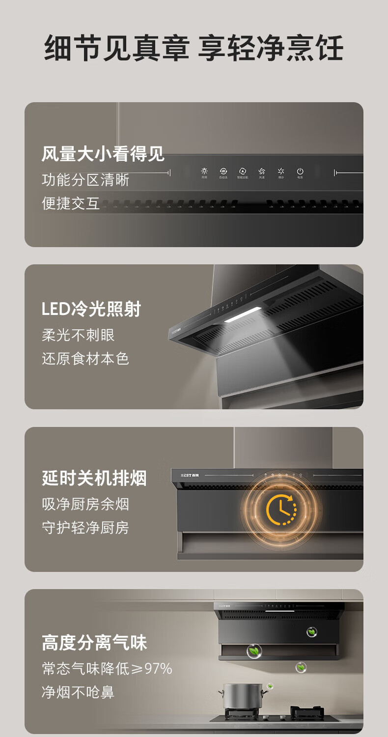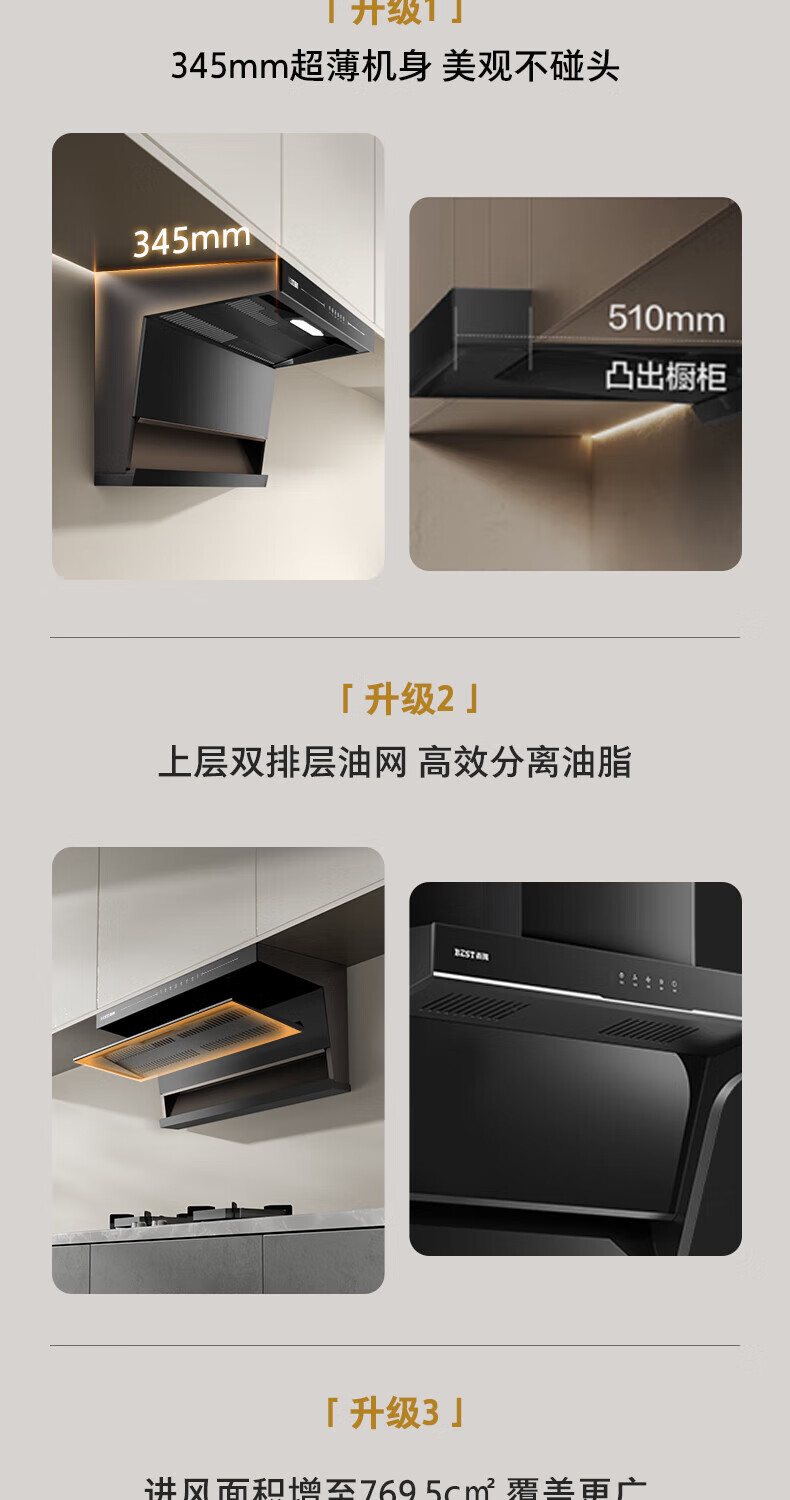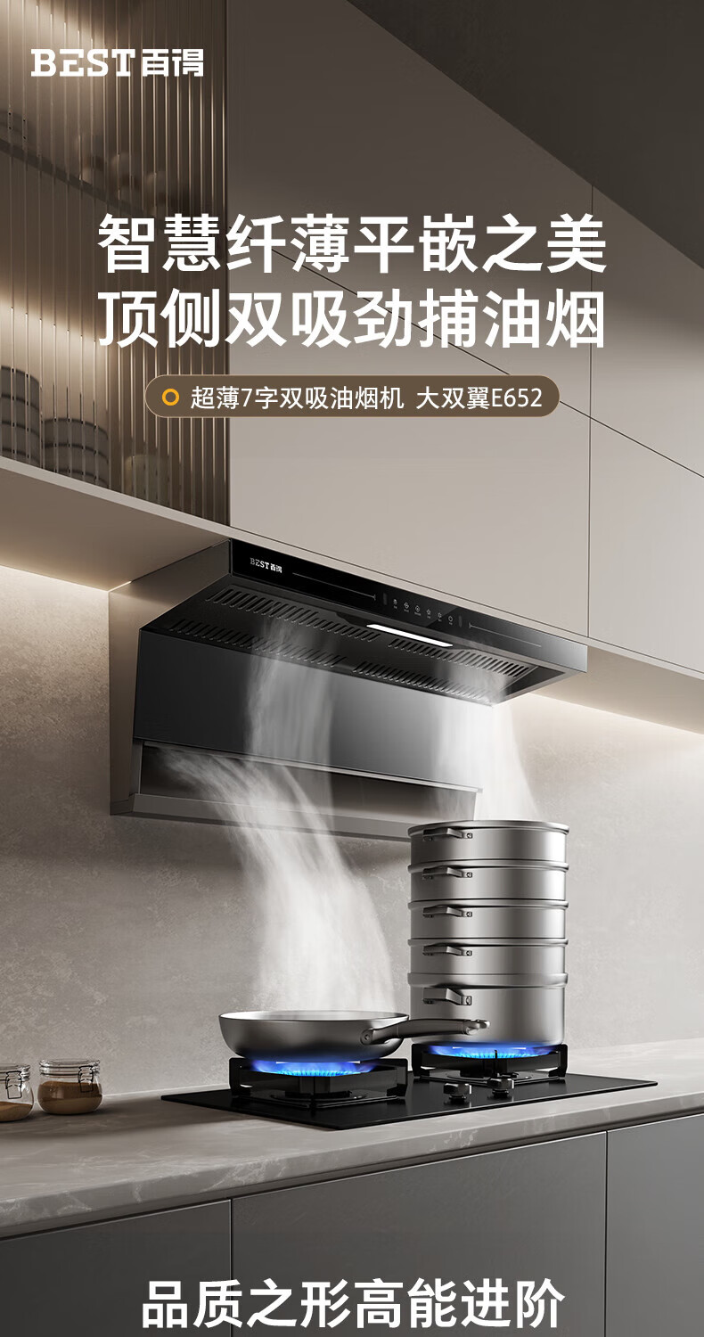 BEST Vantage produziert eine Dunstabzugshaube mit Doppelabsaugung auf der Oberseite, eine Dunstabzugshaube mit variabler Frequenz für den Haushalt und ein Herdset mit 26 Kubikmeter großer Saugleistung, eine handschwenkbare Dunstabzugshaube mit intelligenter Steuerung, einen Warmwasserbereiter, einen Desinfektionsschrank, ein dreiteiliges Set, die neue Einzelabzugshaube E738, 28 Kubikmeter große Saugleistung + intelligente Frequenzumwandlung