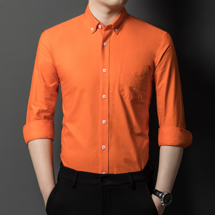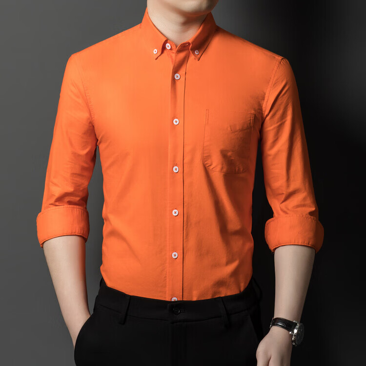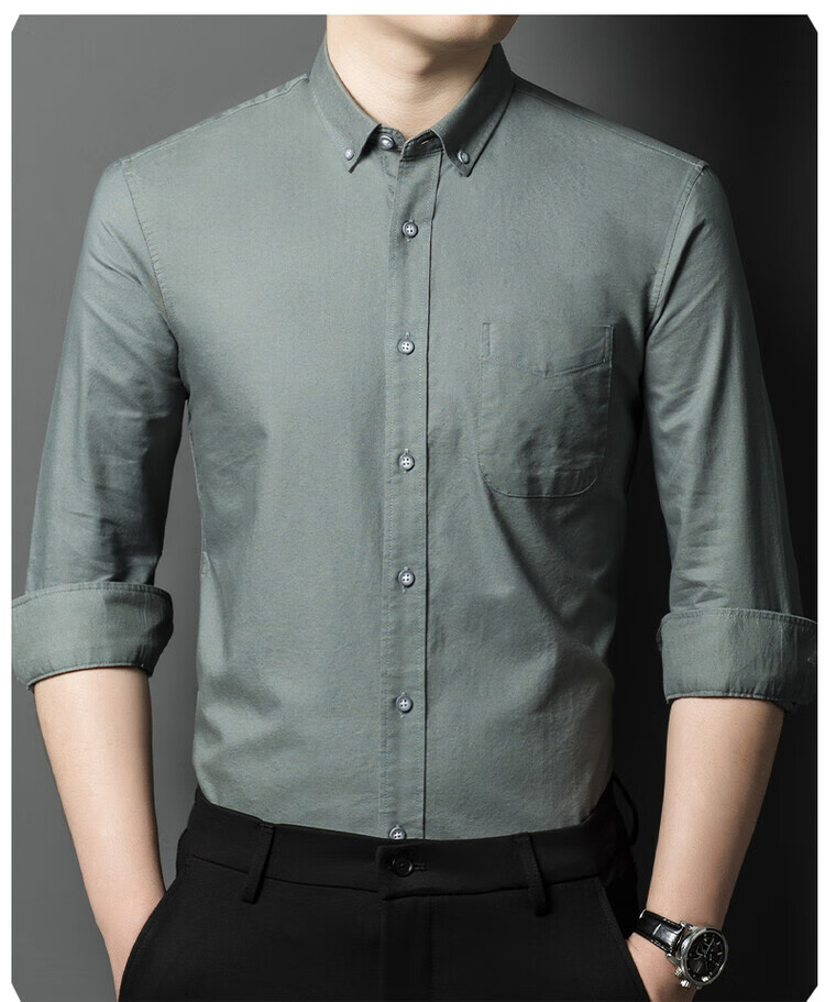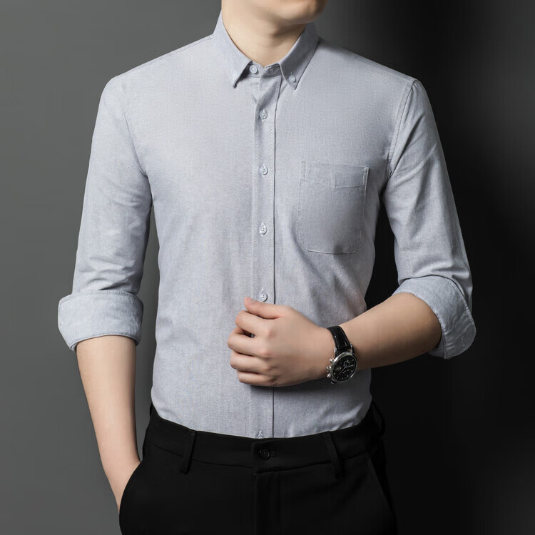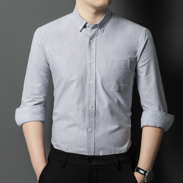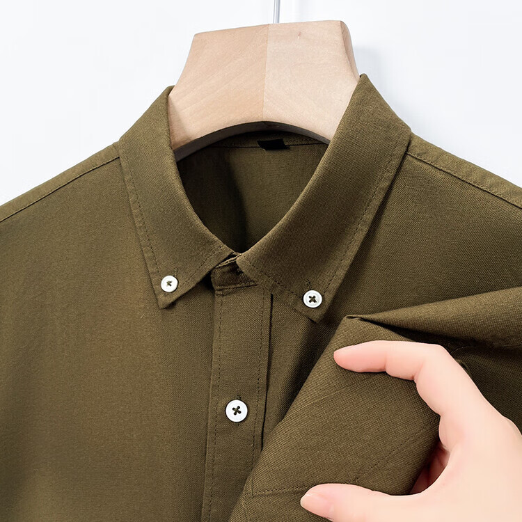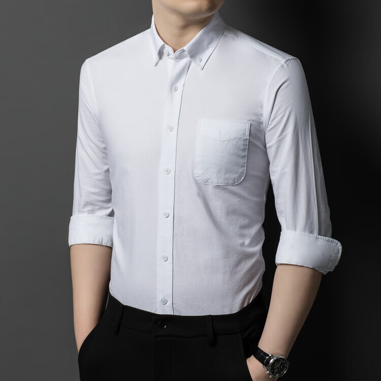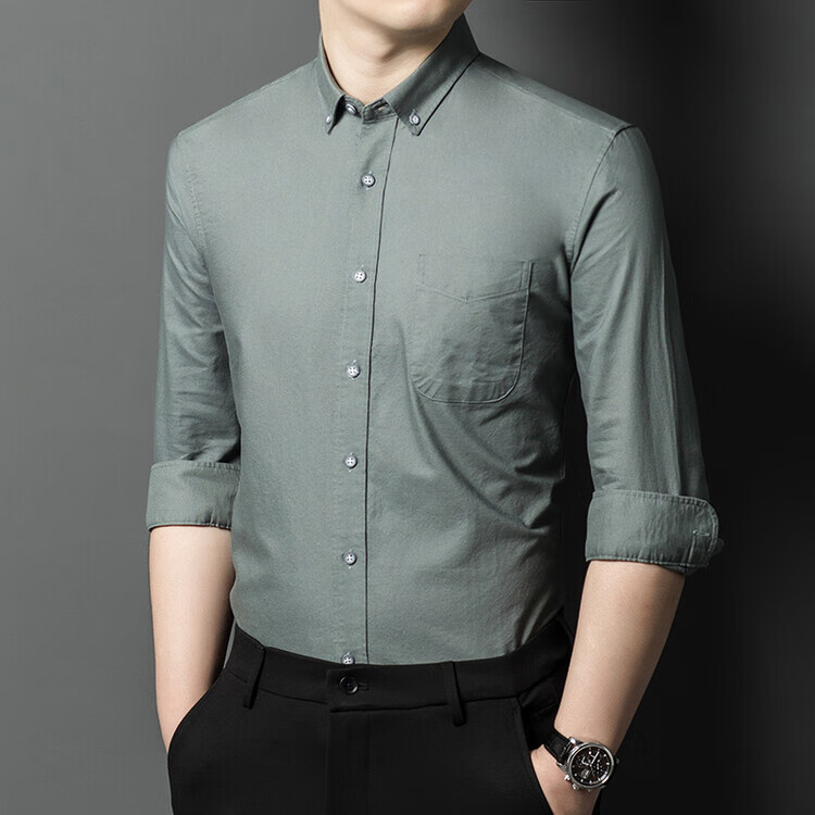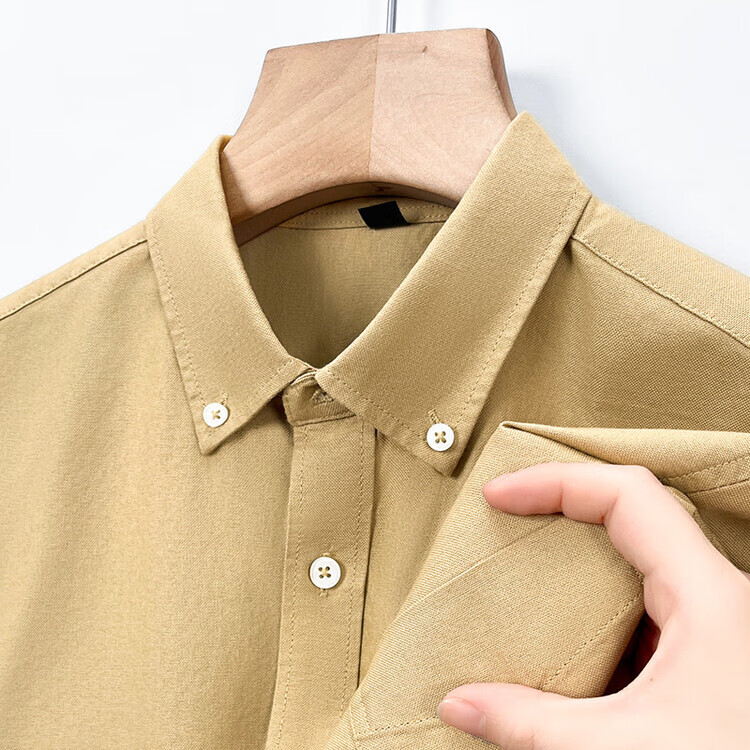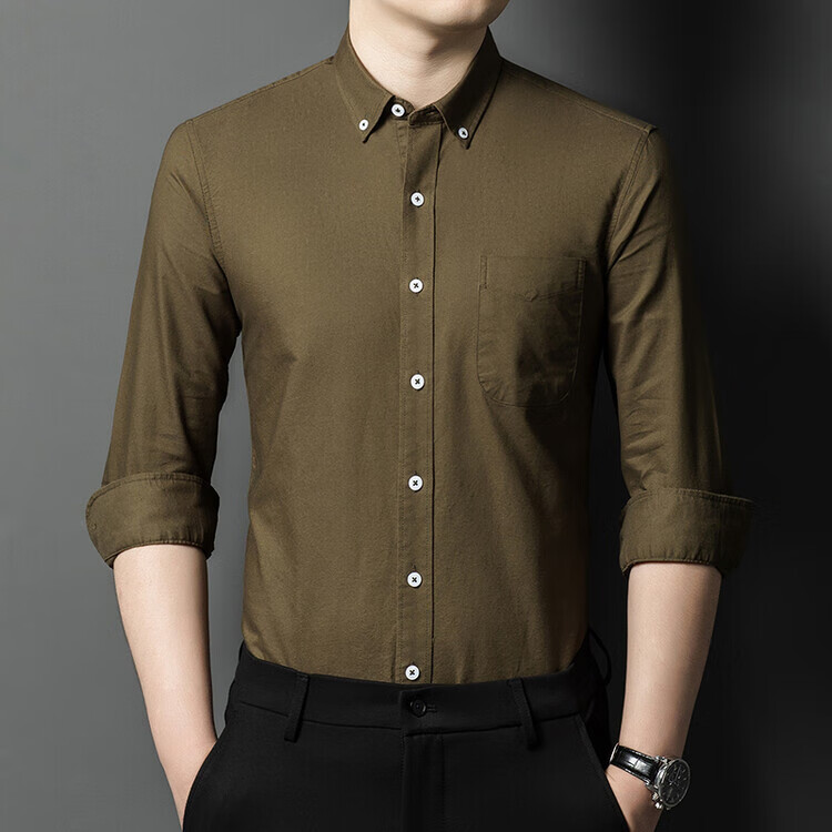 罗蒙纯棉长袖衬衫男士白色衬衣男大码正装修身抗皱职业工装面试工作服 卡其829 38