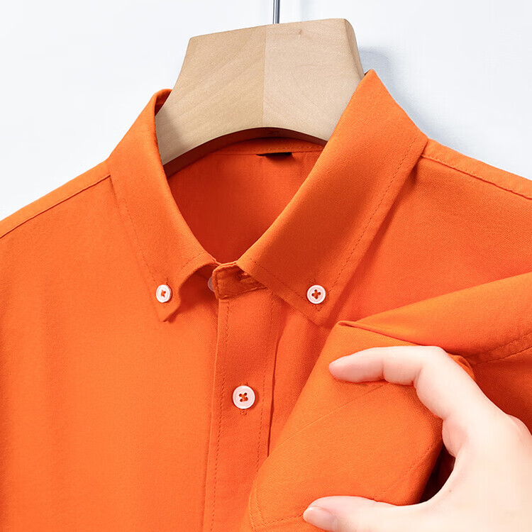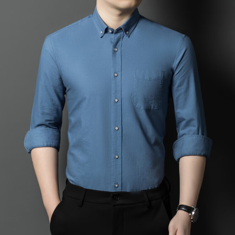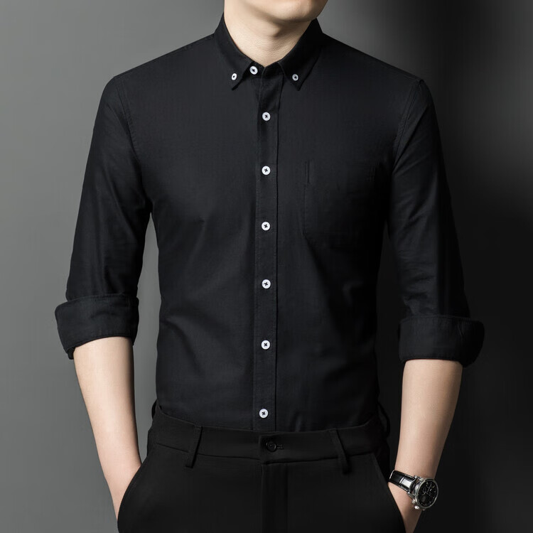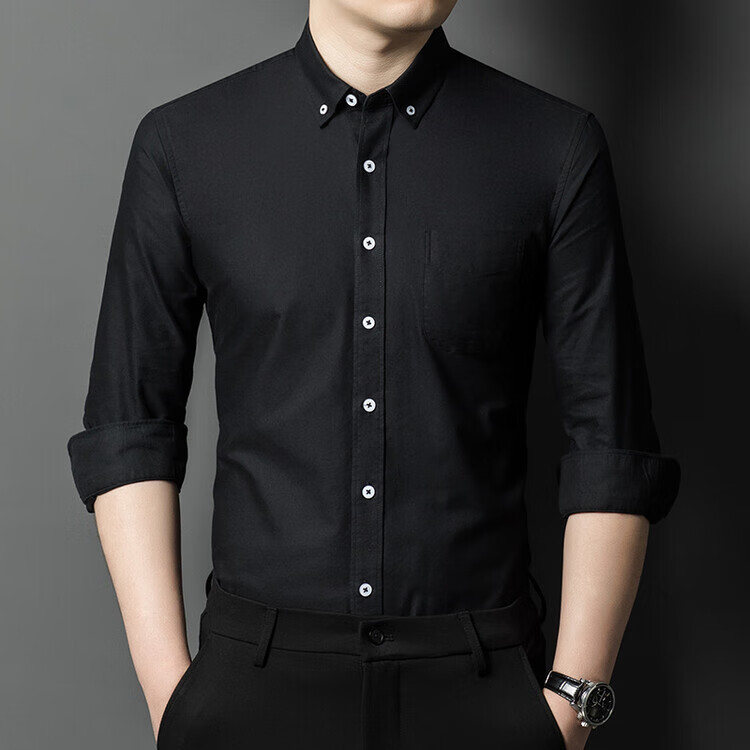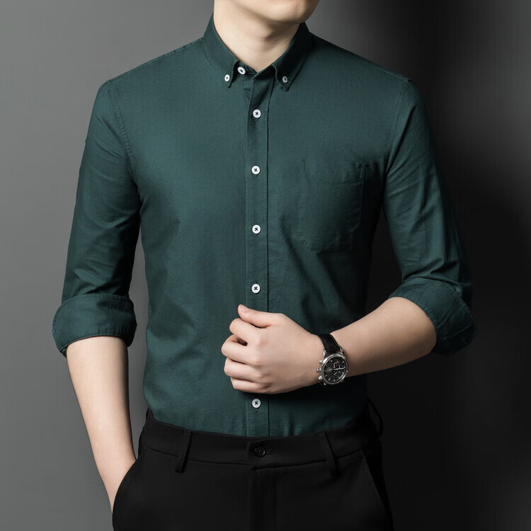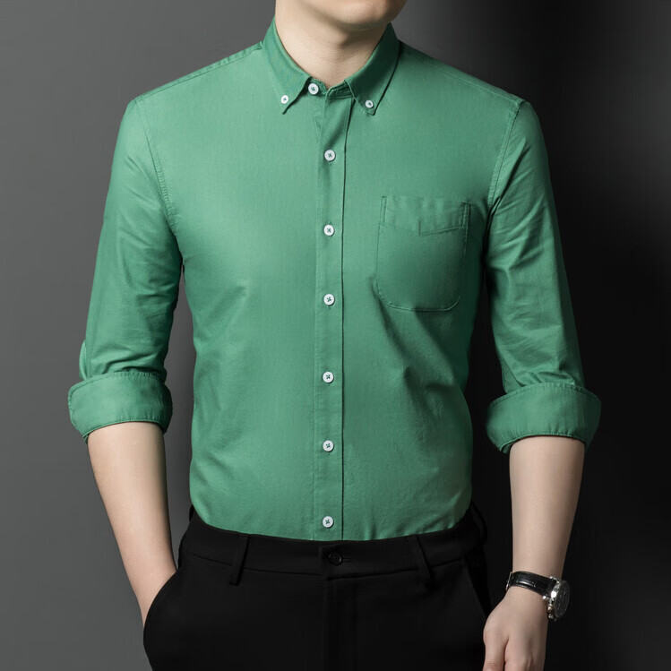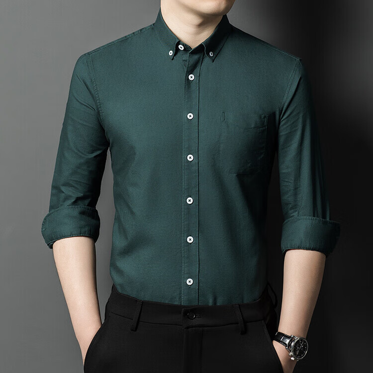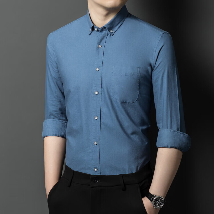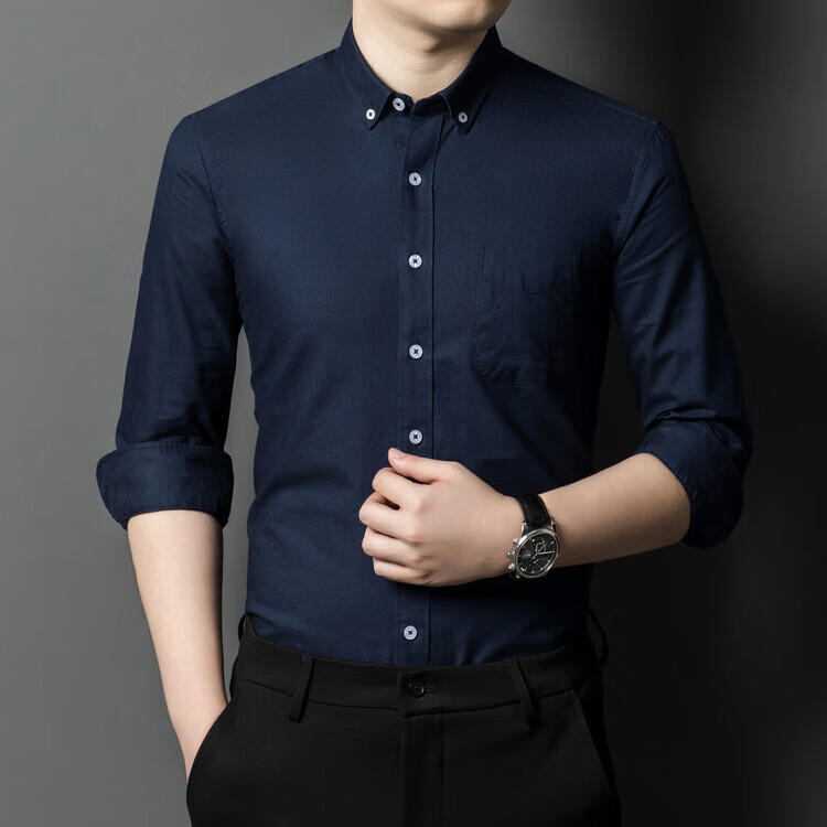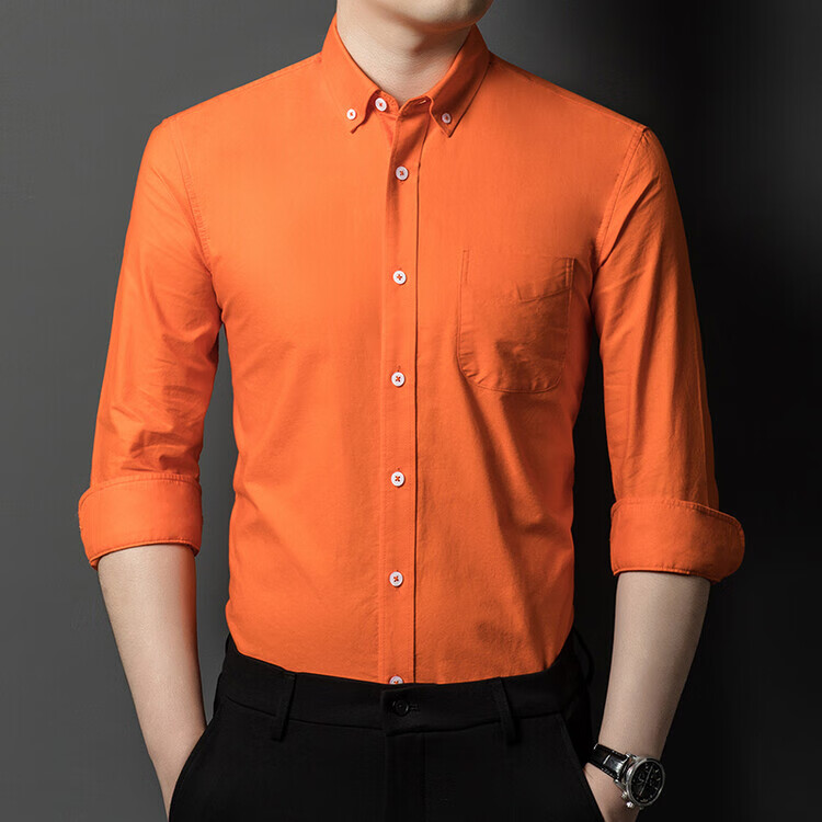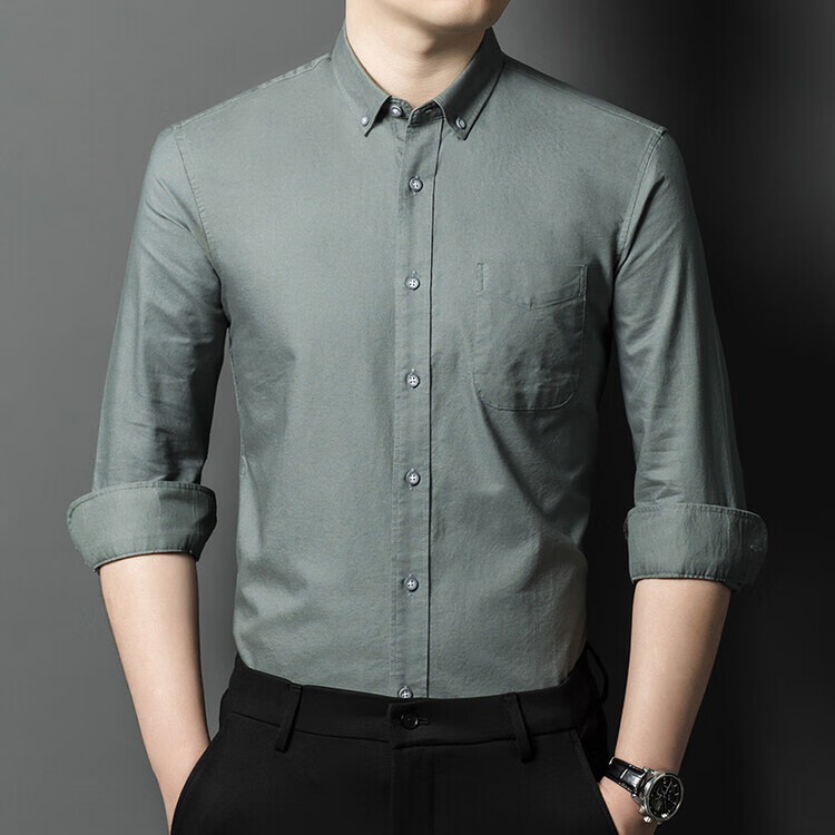 罗蒙纯棉长袖衬衫男士白色衬衣男大码正装修身抗皱职业工装面试工作服 卡其829 38