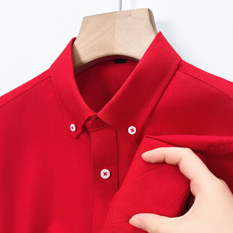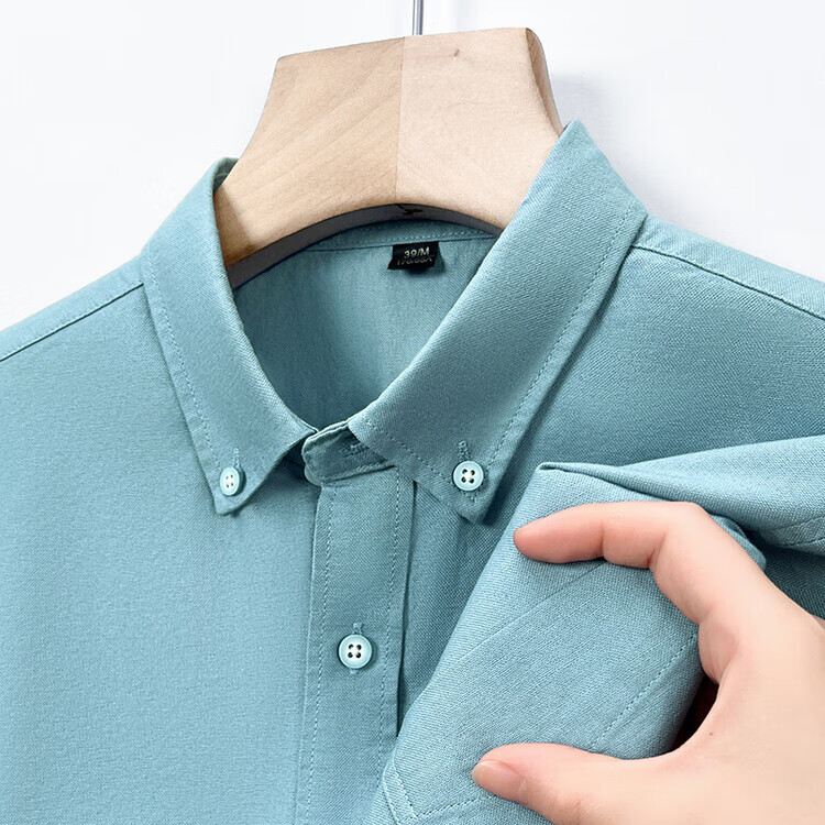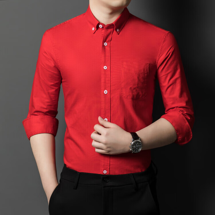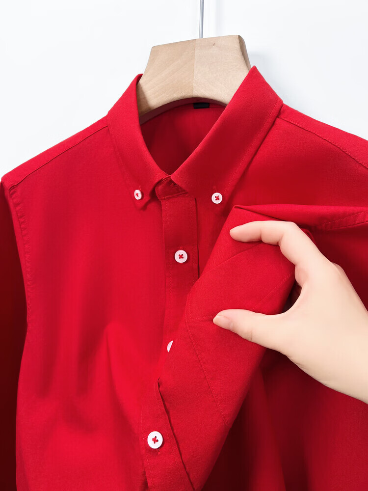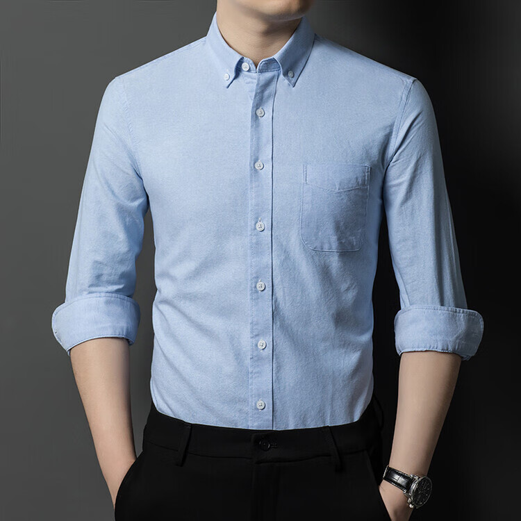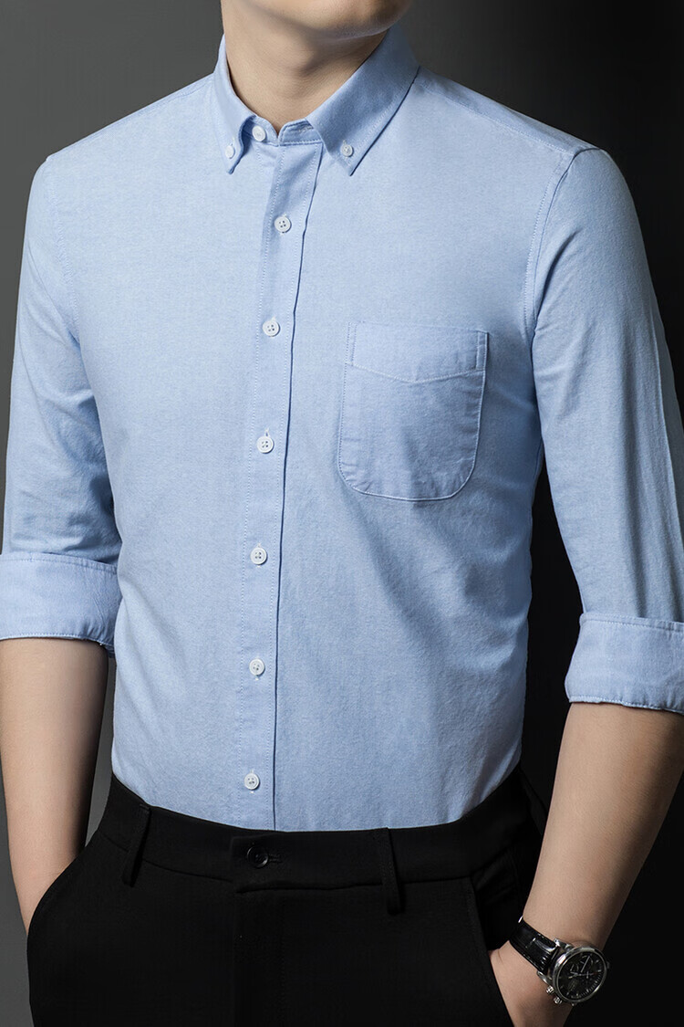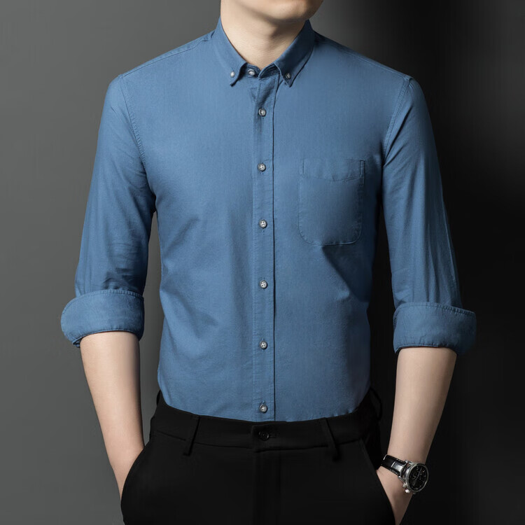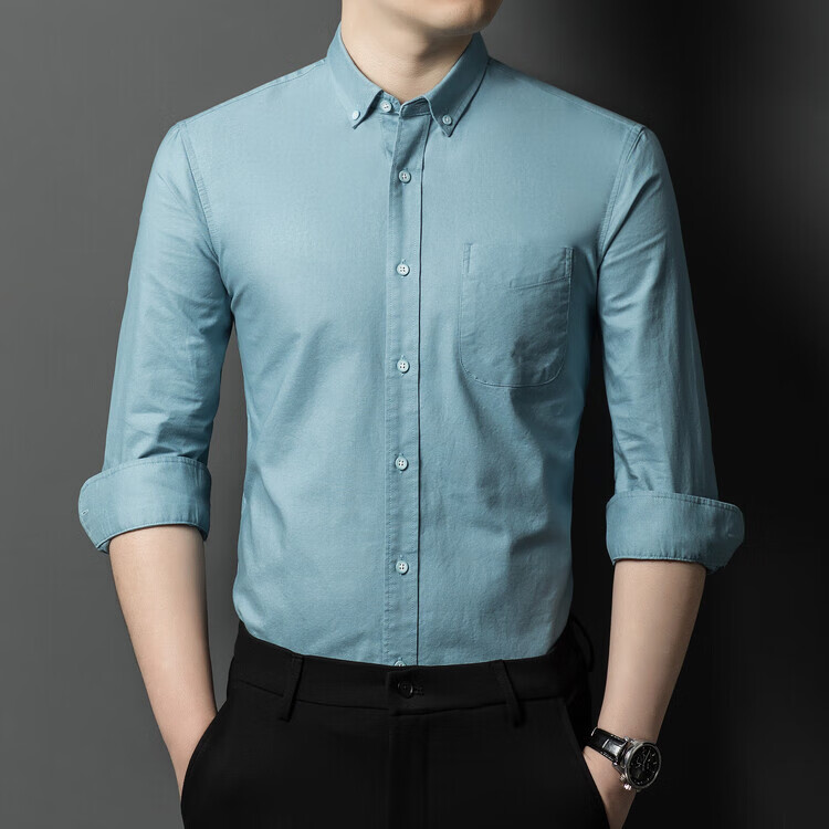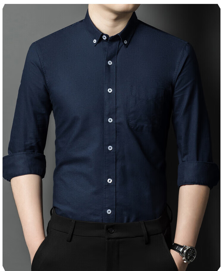 罗蒙纯棉长袖衬衫男士白色衬衣男大码正装修身抗皱职业工装面试工作服 卡其829 38