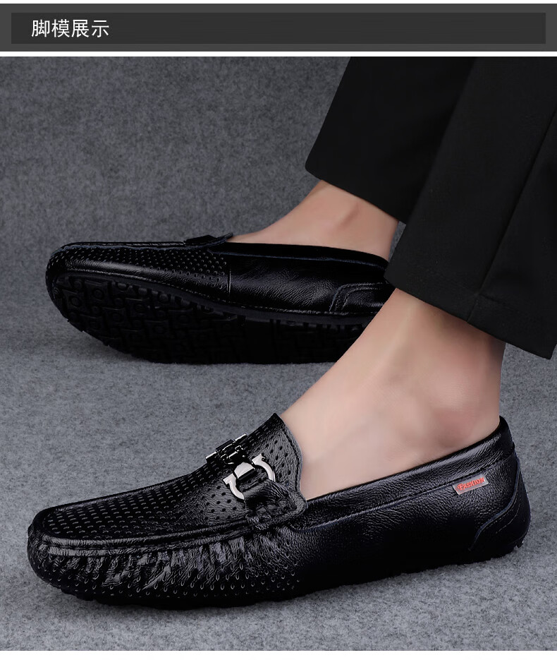 金利来GY男鞋2025春夏季新款真皮豆豆鞋男透气休闲皮鞋男款软皮软底 棕色【9905四季款】 42