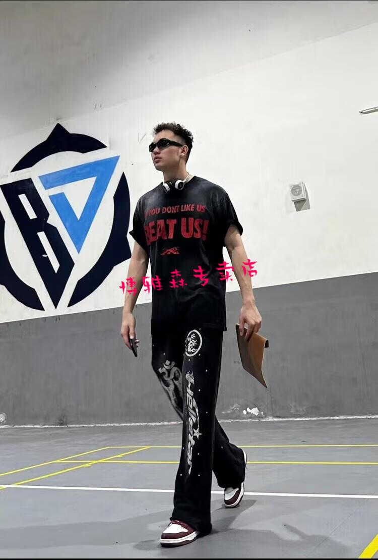 WvgaHellstar short-sleeved Hell Star American high street Vintage TEE VTG couple men and women T-shirt trendy brand 1506 red S