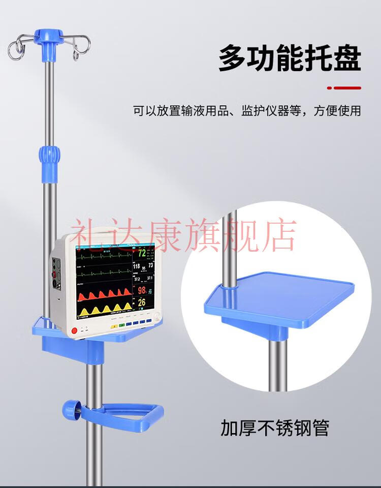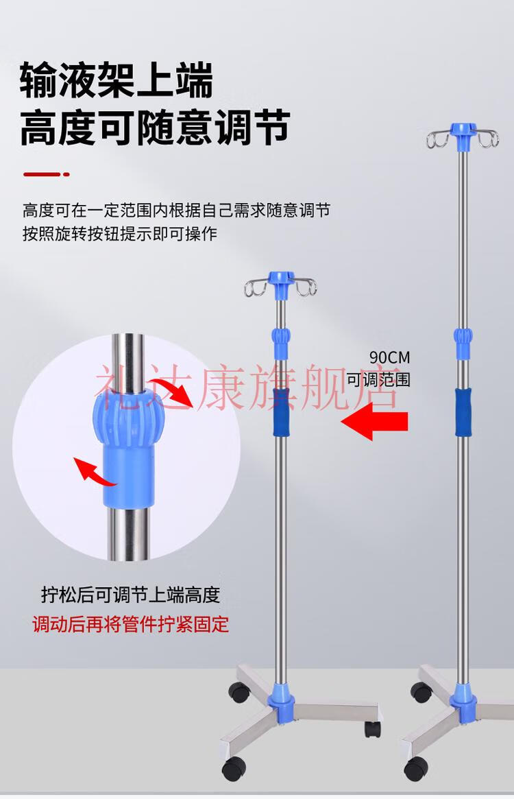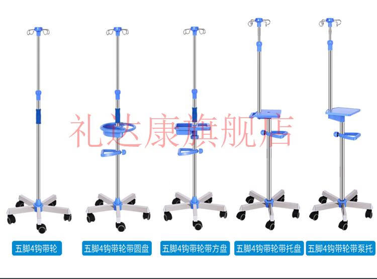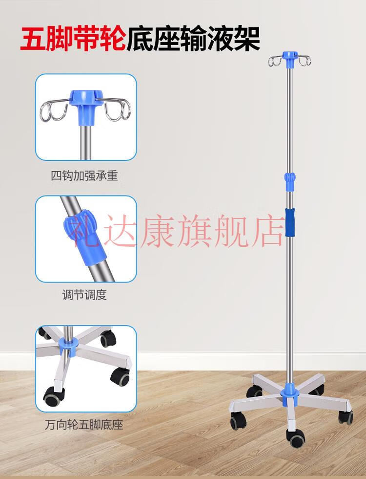 Lidakang 9276 people praised the mobile infusion stand with wheels for intravenous drip support, thickened stainless steel infusion stand, saline bottle, infusion stand (stainless steel pentagonal - 4 hooks) + wheel
