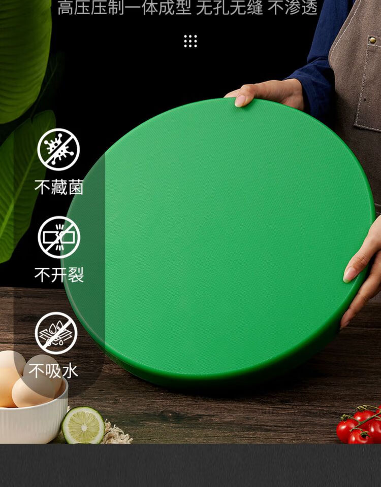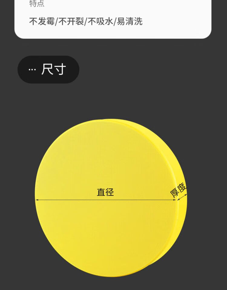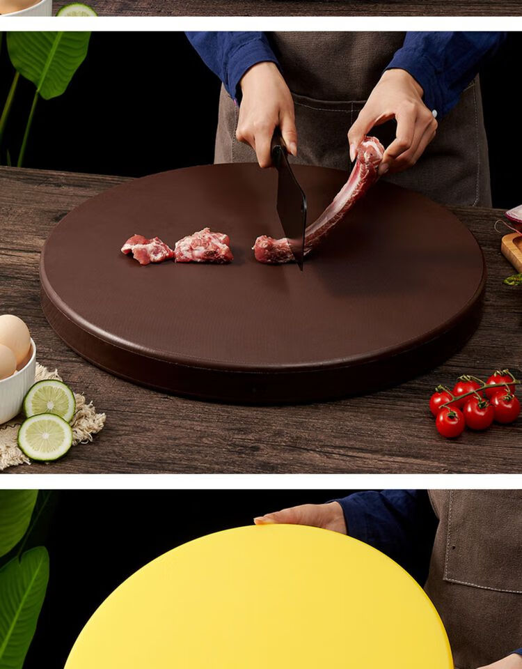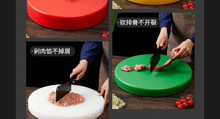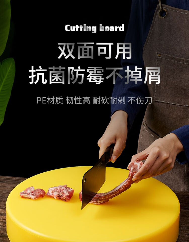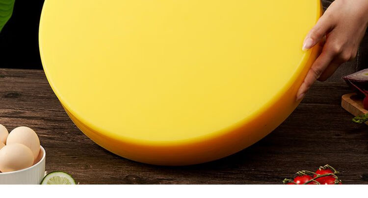 必可利加厚PE尼龙砧板商用塑料圆形菜板厨房菜墩剁肉墩占板刀板防 黄色 40x40x4.5cm