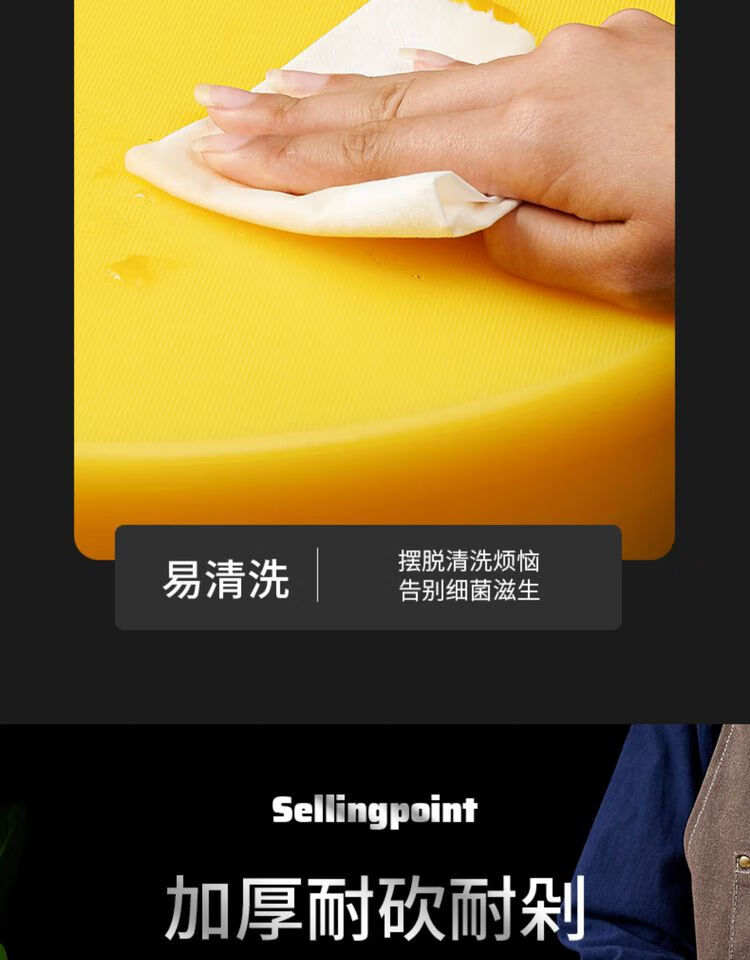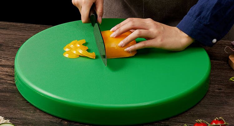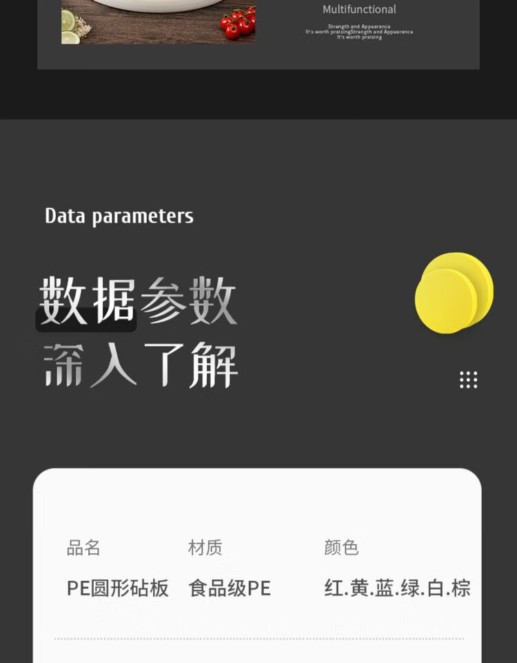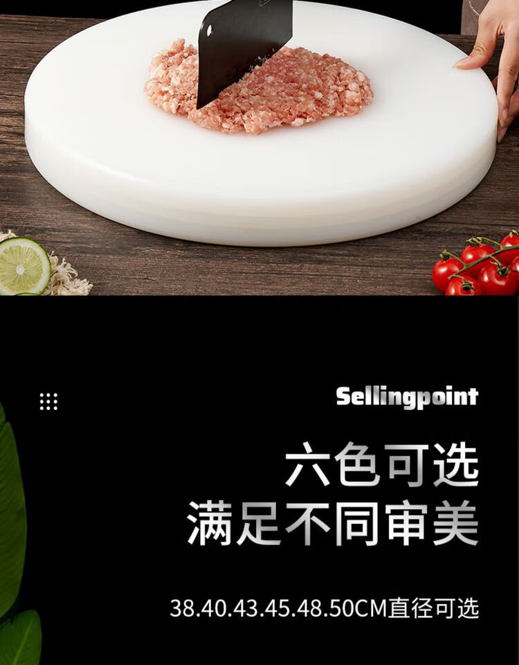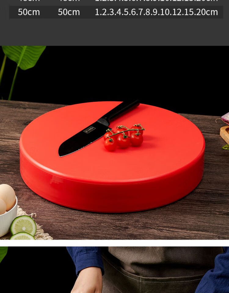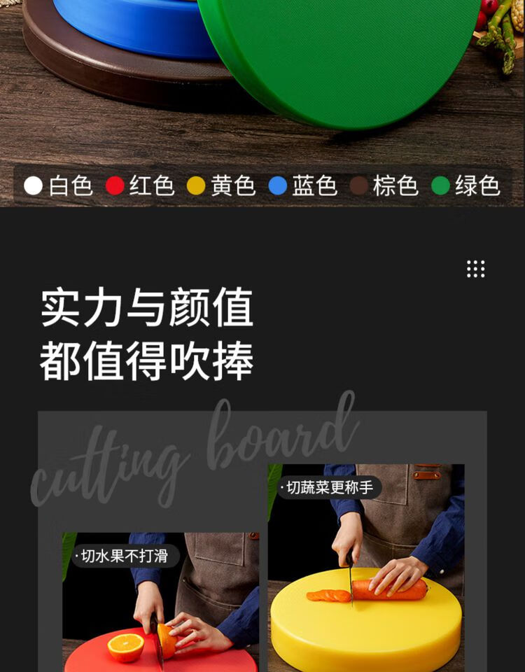 必可利加厚PE尼龙砧板商用塑料圆形菜板厨房菜墩剁肉墩占板刀板防 黄色 40x40x4.5cm