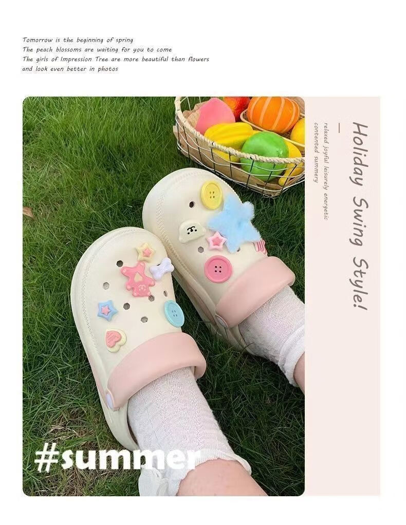 HUALIN FASHION洞洞鞋女夏软底防滑透气拖鞋情侣款ins踩屎感2025 653【粉色】小海星【厚底】 36-37 【偏小一码】