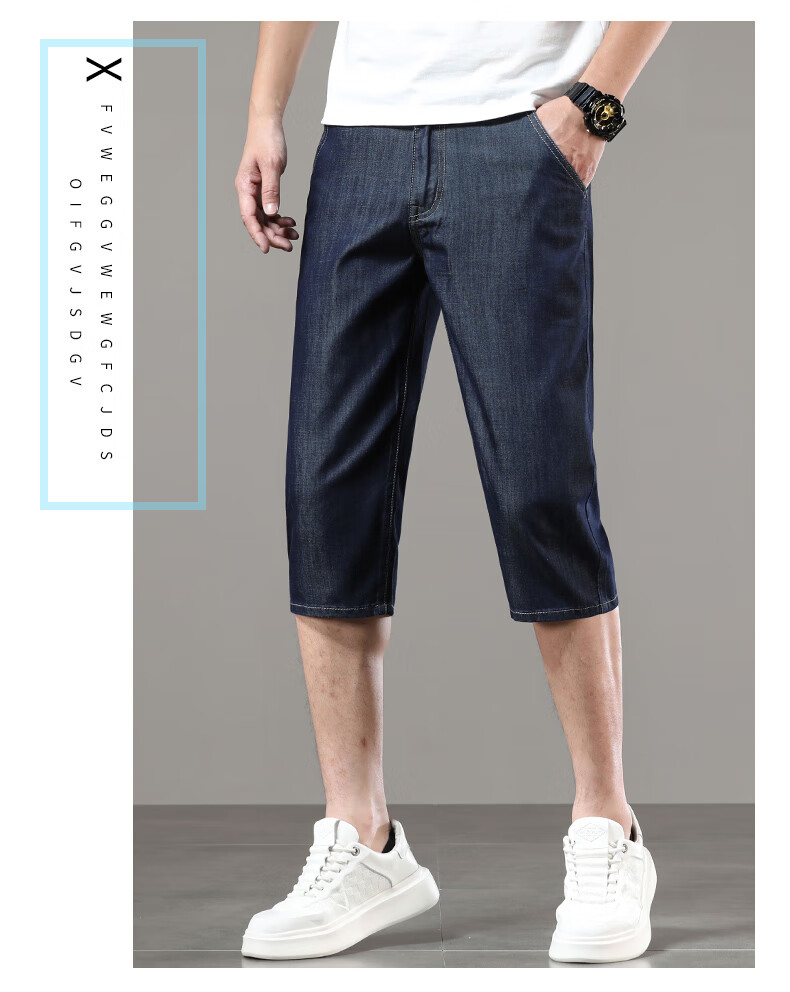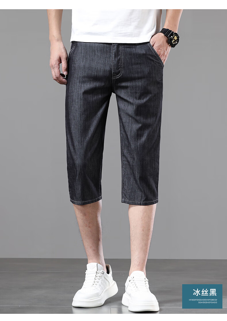 AEMAPE品牌休闲牛仔短裤男高端冰丝七分夏季薄款6分7分中年商务六分裤 753冰丝黑【七分裤】 28