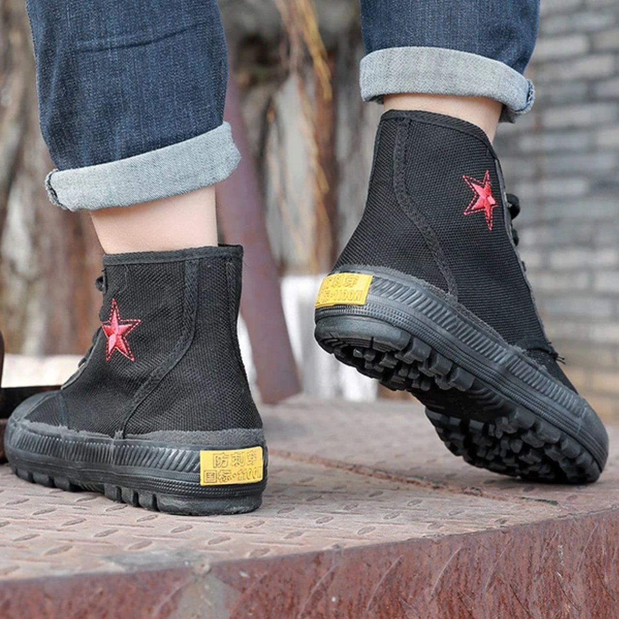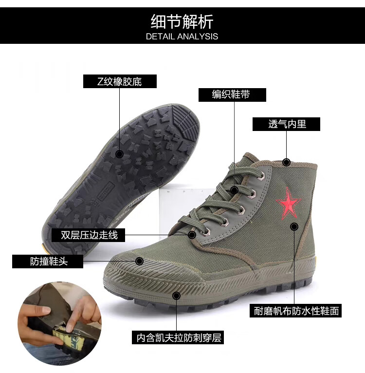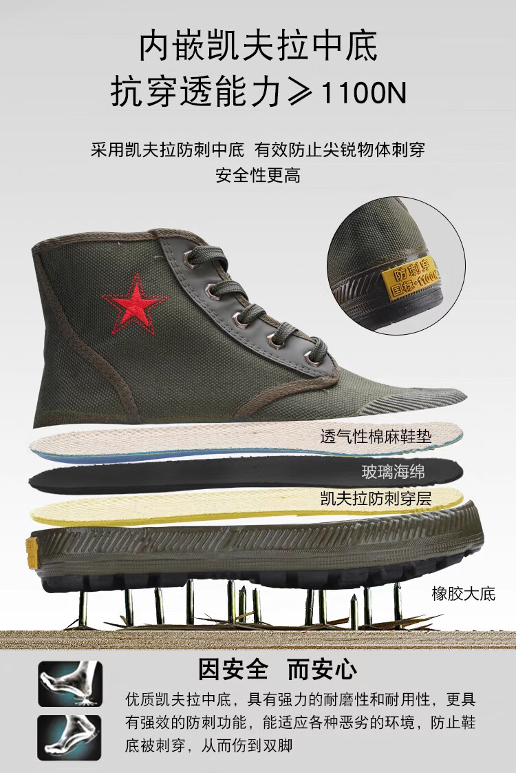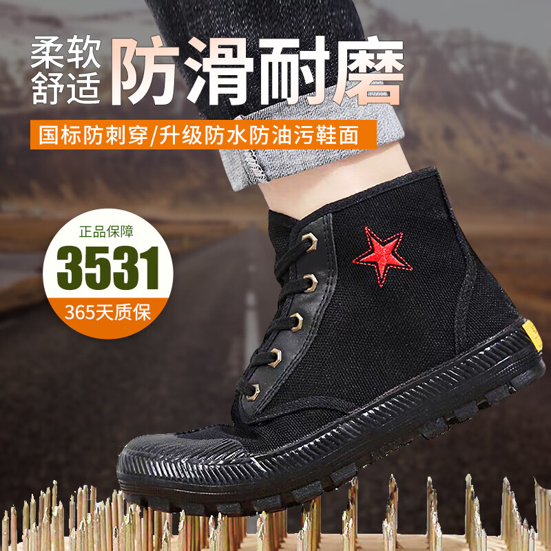 3531三防纳米防刺穿解放鞋黑色防水防油污工地劳保鞋民工高帮帆布鞋男 黑色高防刺穿 40 (建议拍小一码)