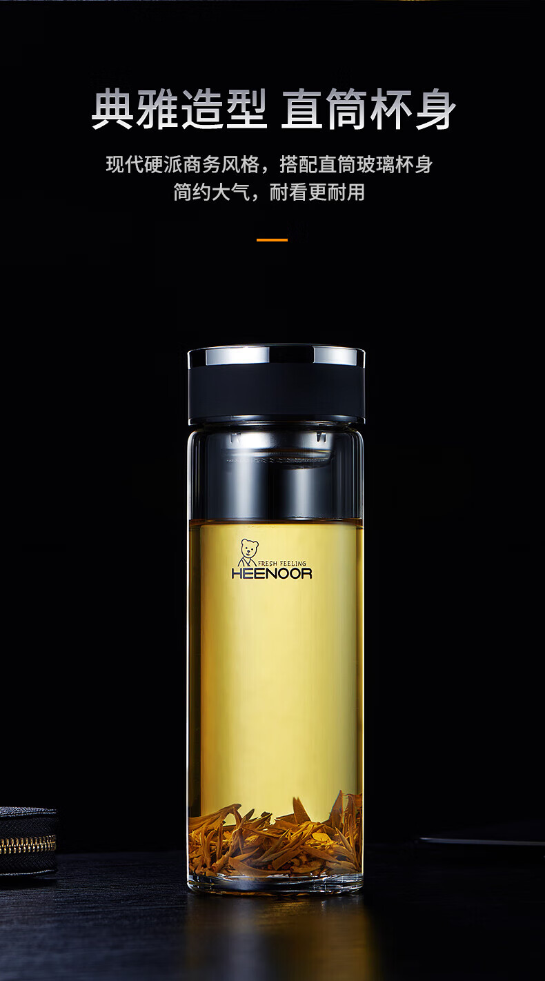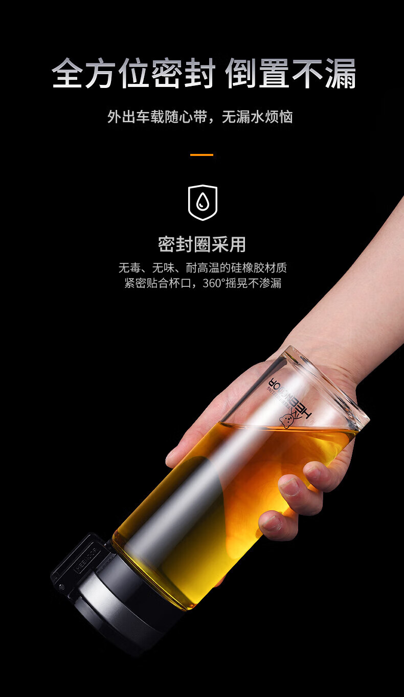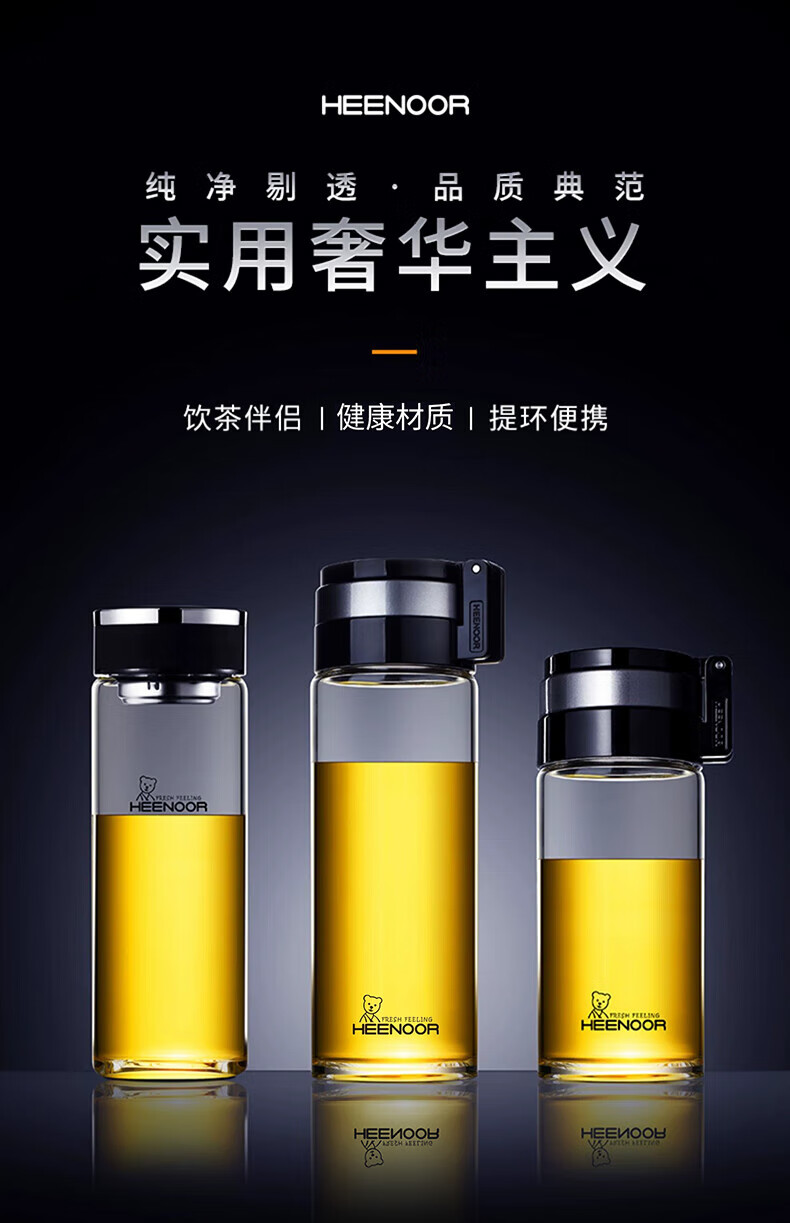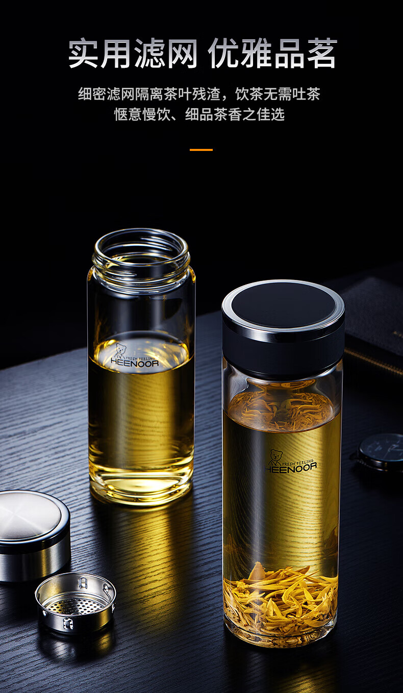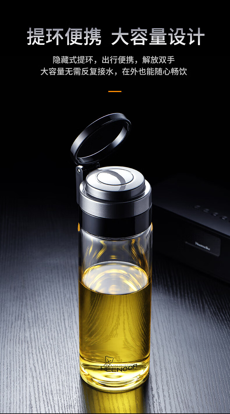 Taza portátil de gran capacidad para exteriores para hombres, de vidrio Heenoor, de una sola capa, engrosada, taza de té filtrada, estilo de anillo portátil, gran capacidad con filtro 695 ml