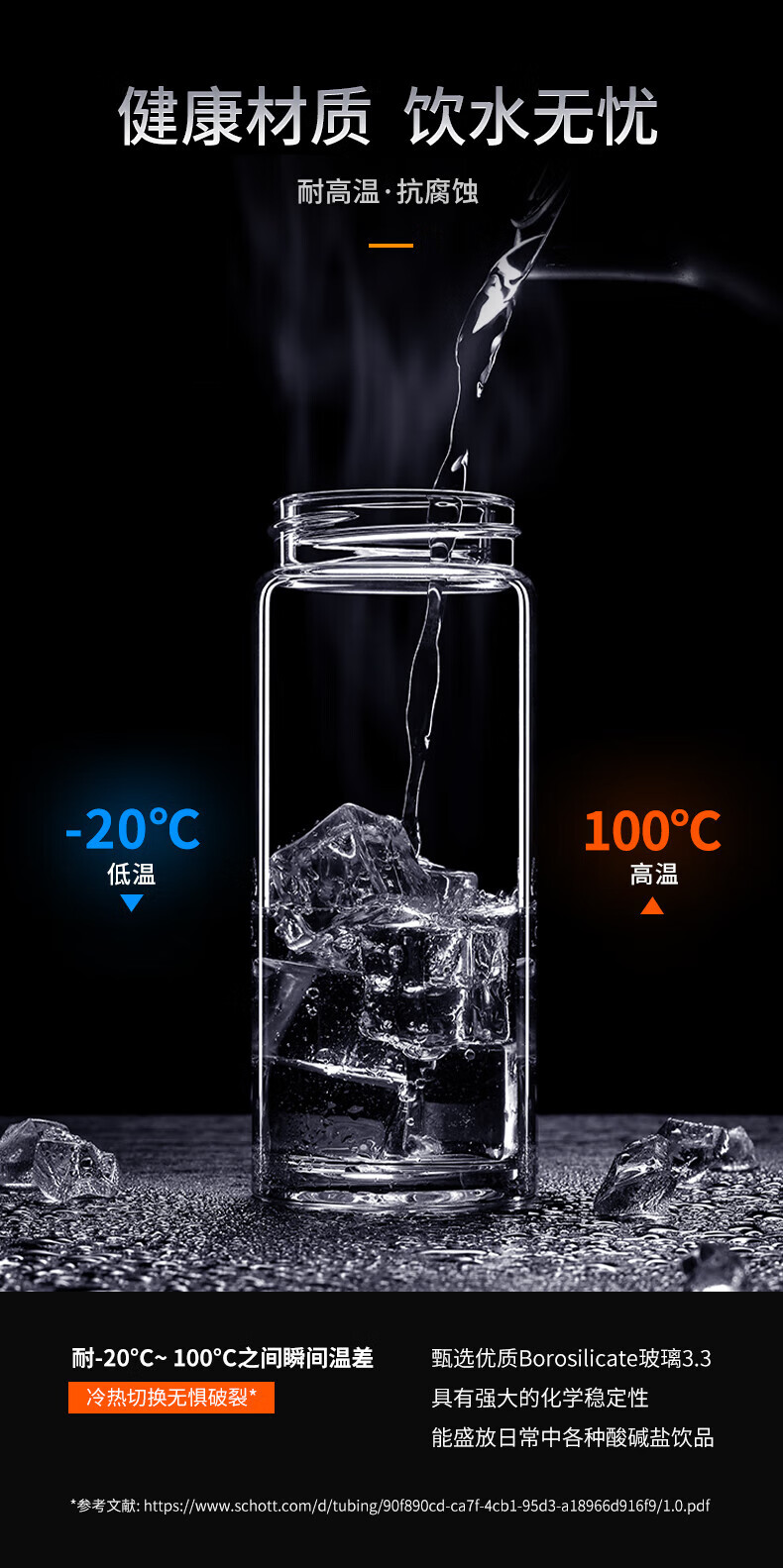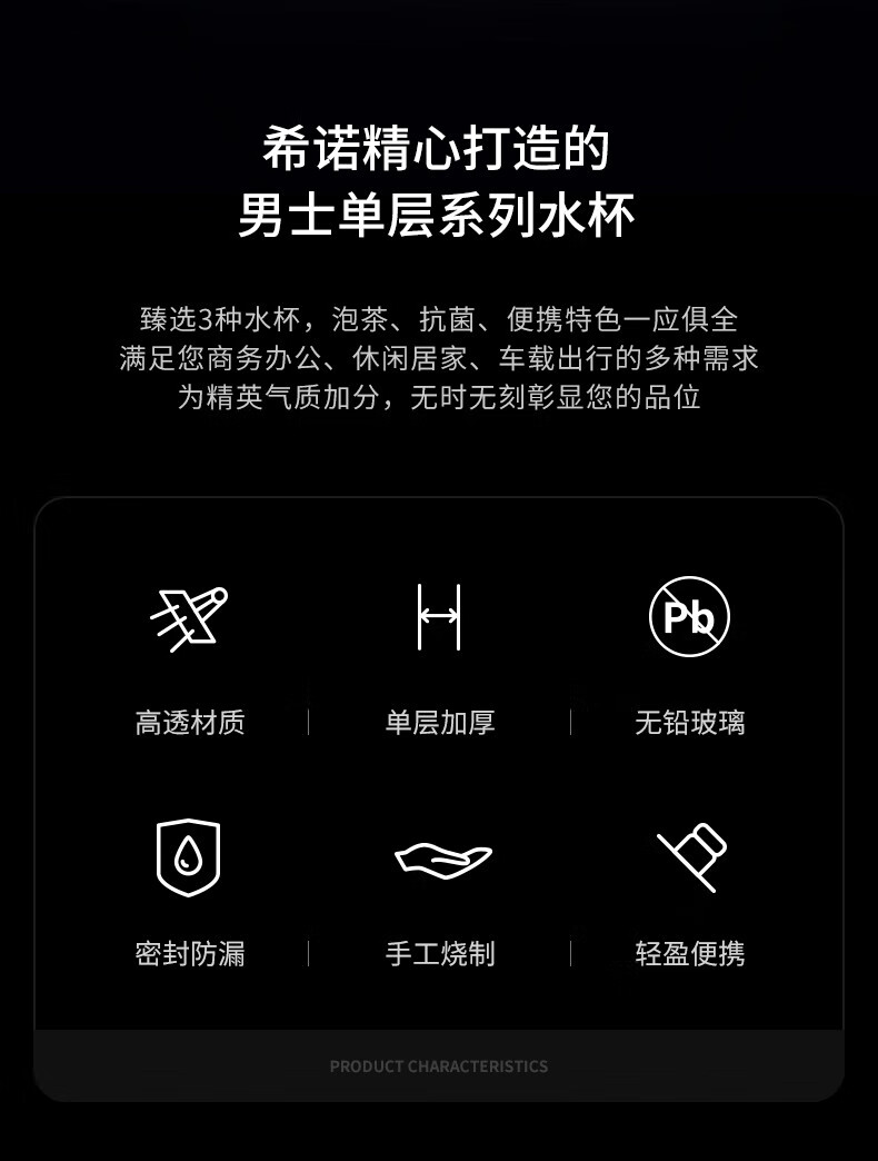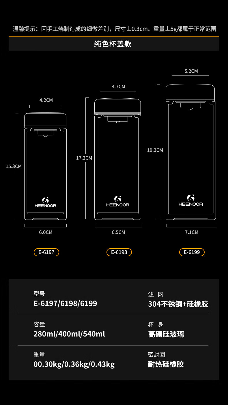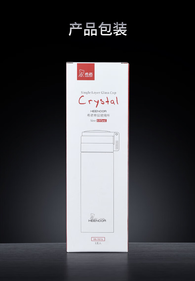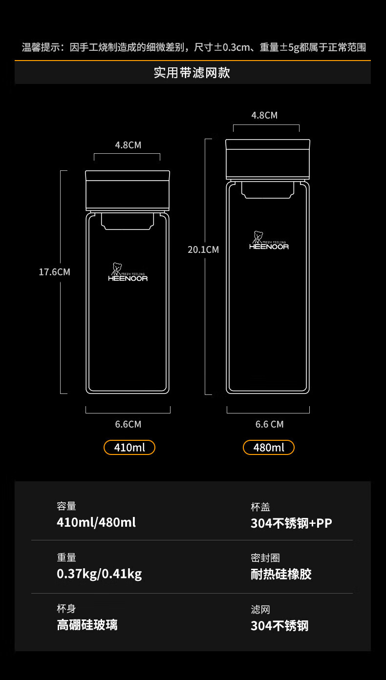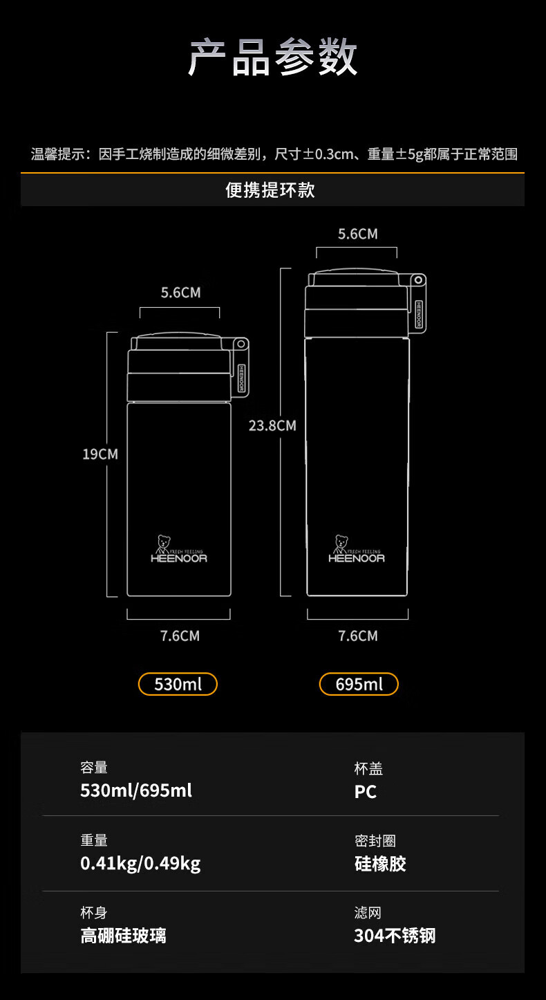 Taza portátil de gran capacidad para exteriores para hombres, de vidrio Heenoor, de una sola capa, engrosada, taza de té filtrada, estilo de anillo portátil, gran capacidad con filtro 695 ml