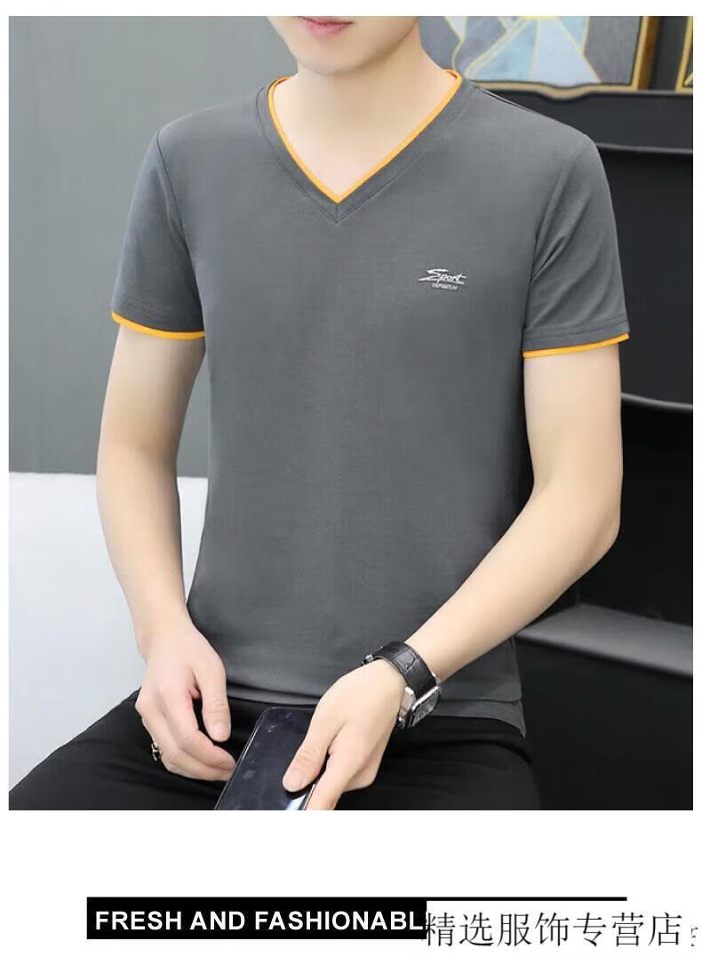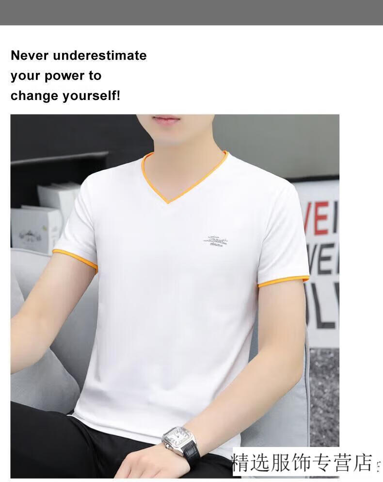 Woodpecker O'Dell camiseta de manga corta con cuello en V de algodón de verano camisa de fondo de moda para hombres camisa de cuerpo delgado de media manga ropa casual de algodón q691 blanco M recomendado 90-110Jin Jin equivale a 0,5 kg