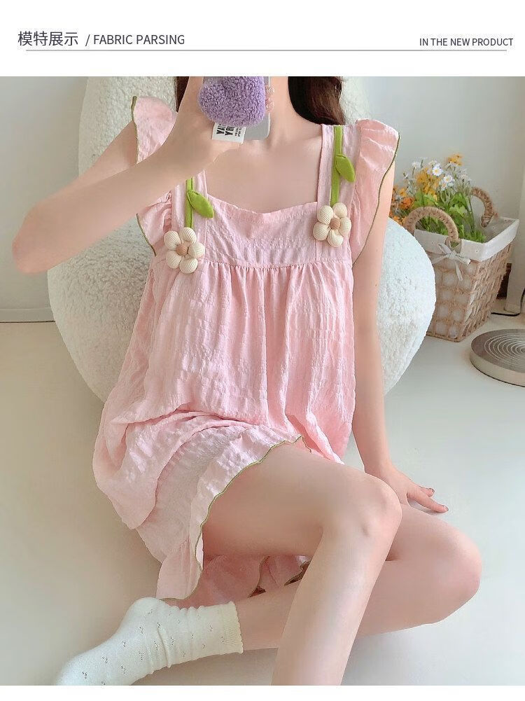 Pushui Fangfang Conjunto de pijamas estilo princesa de verano con almohadillas para el pecho Ropa para el hogar para niñas dulces y lindas hds-9930 # Púrpura 180 XL