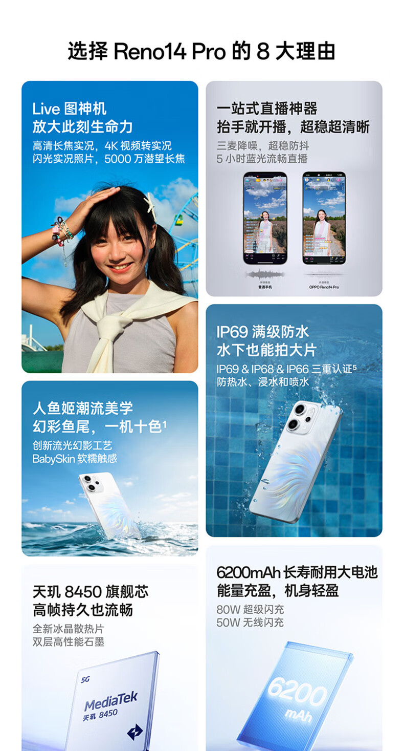OPPO nationaler Zuschuss 15 % Reno14Pro neues Oppo-Handy opporeno14pro Vollnetzwerk 5G-Kamera Smartphone Student Reno14 Pro Meerjungfrau 12 GB + 512 GB offizieller Standard | Bluetooth-Headset + Telefonuhr