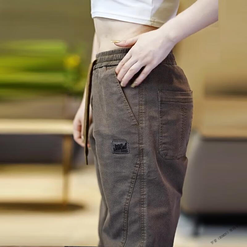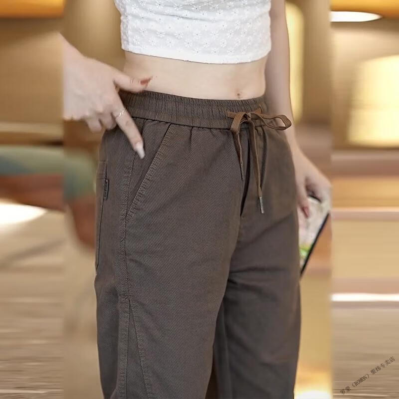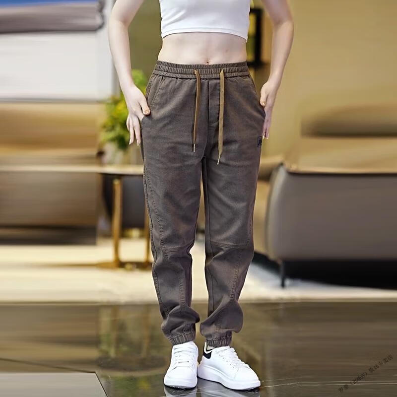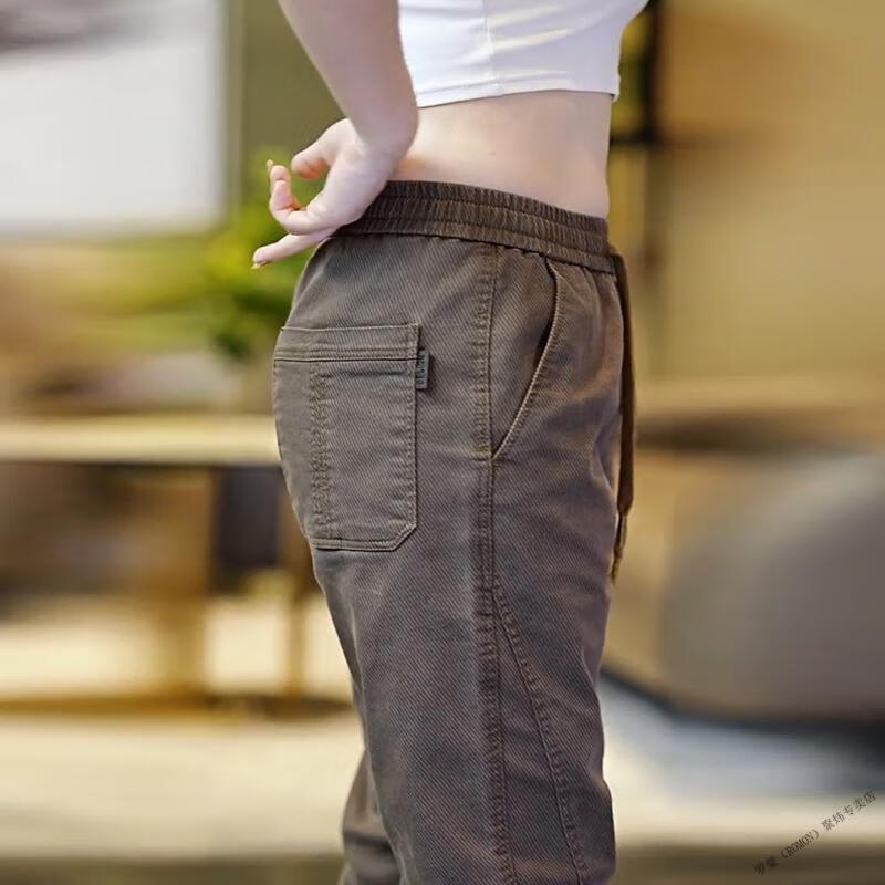 ROMON casual pants men's loose legged summer thin middle-aged denim long pants harem 2025 new fashion dad YN-689 black M